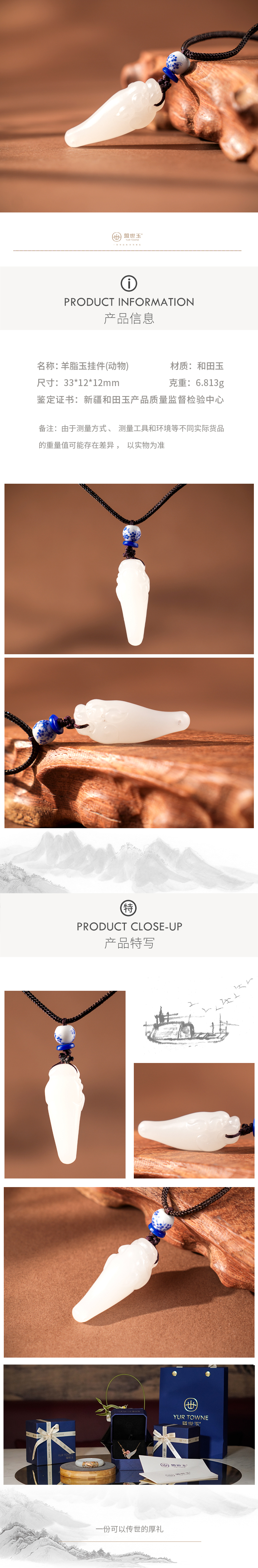 【娇兰】金镶羊脂白玉吊坠