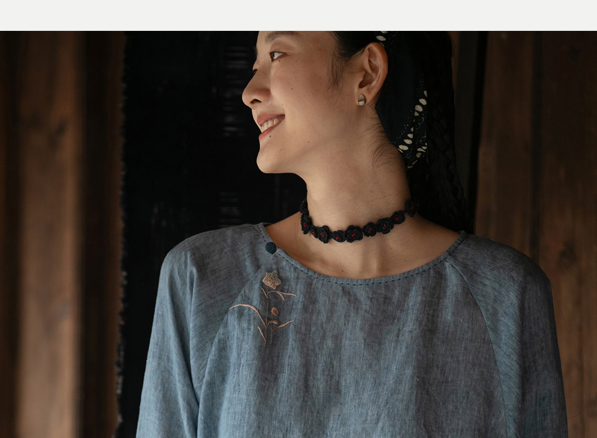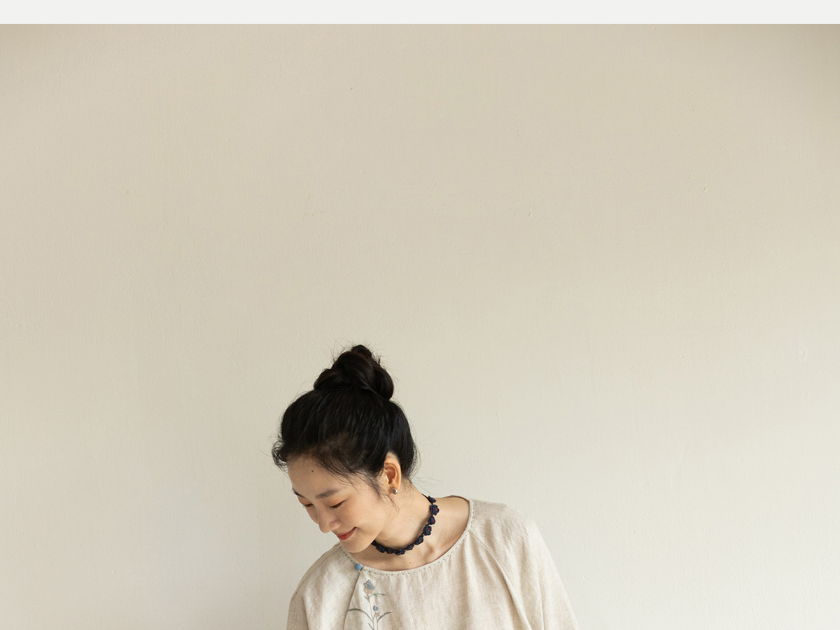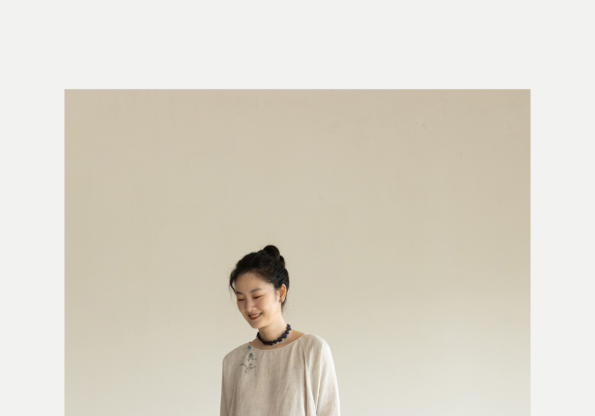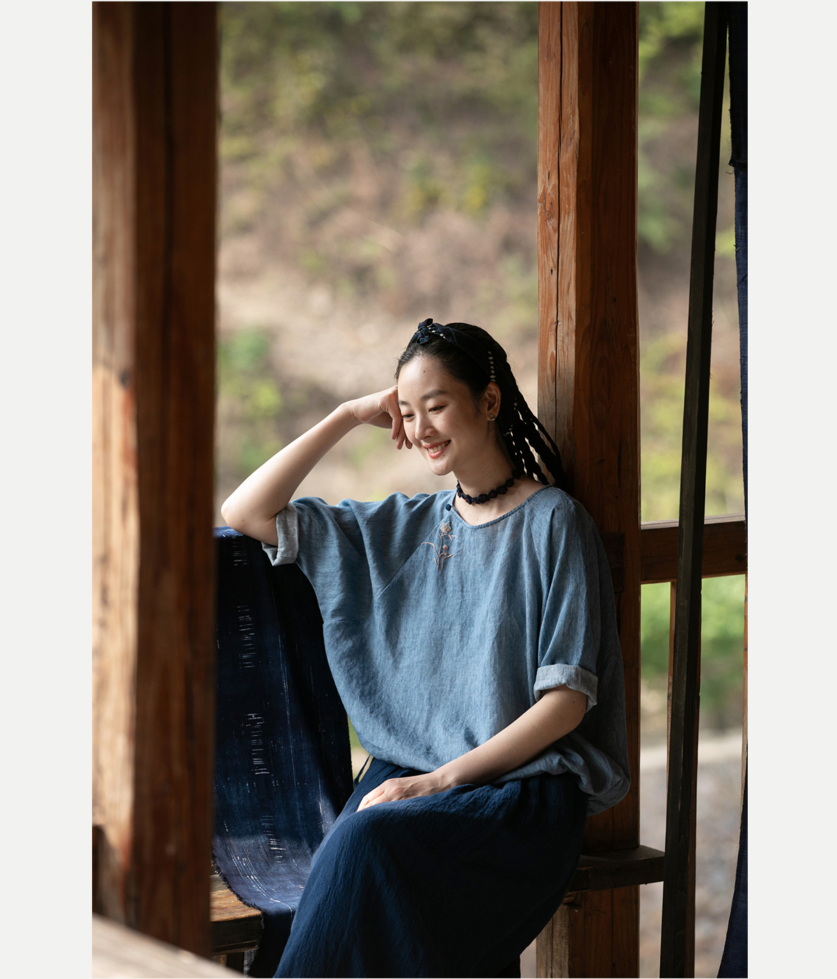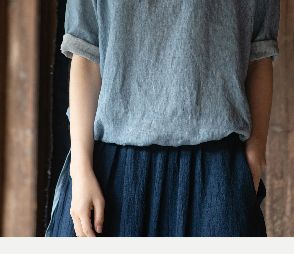 牧衣游原创 进口亚麻手工刺绣炒色套头衫轻薄抽绳七分袖上衣 境禾