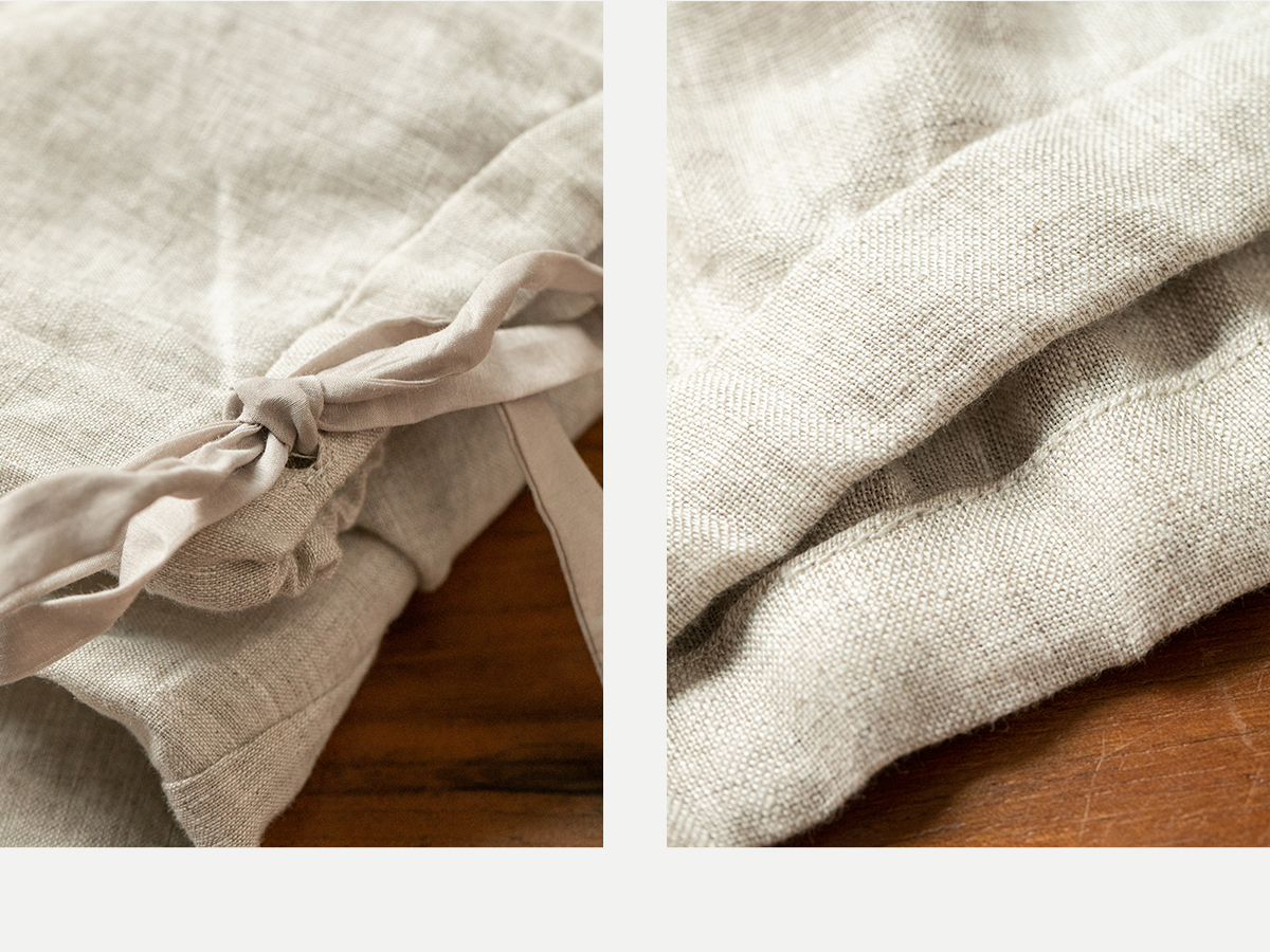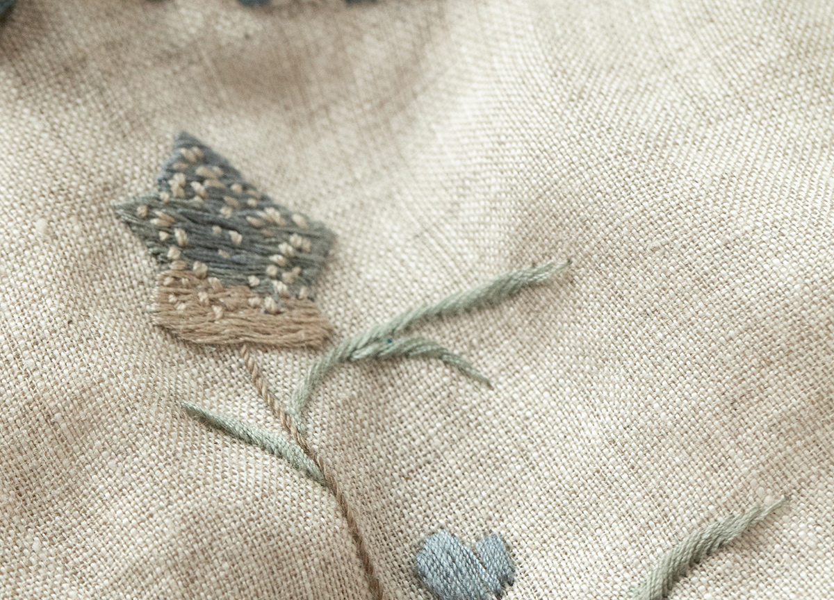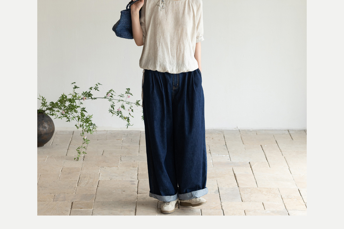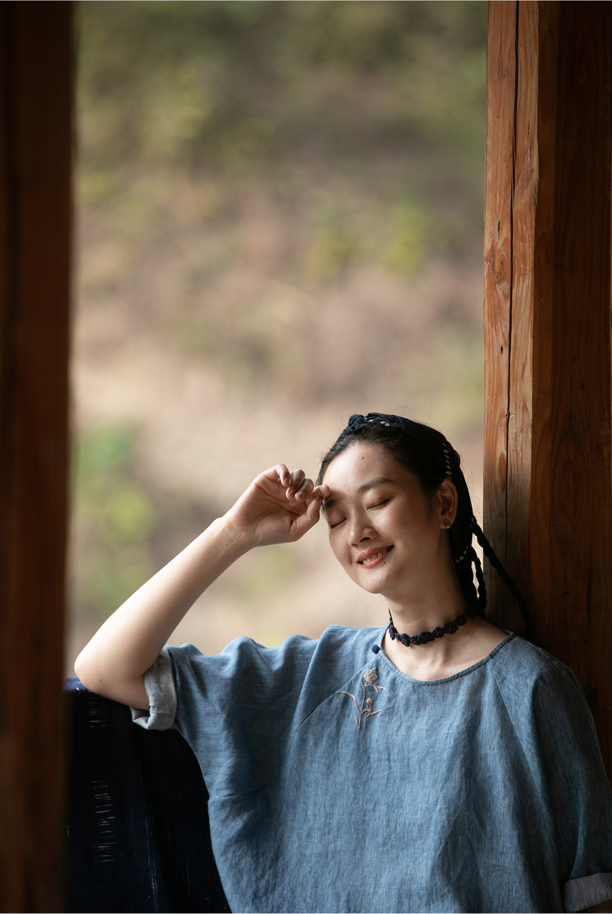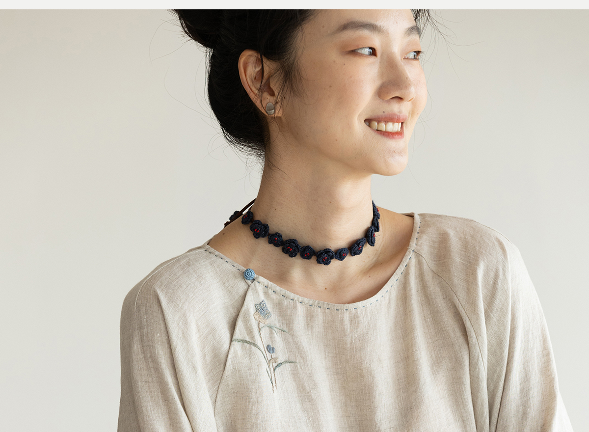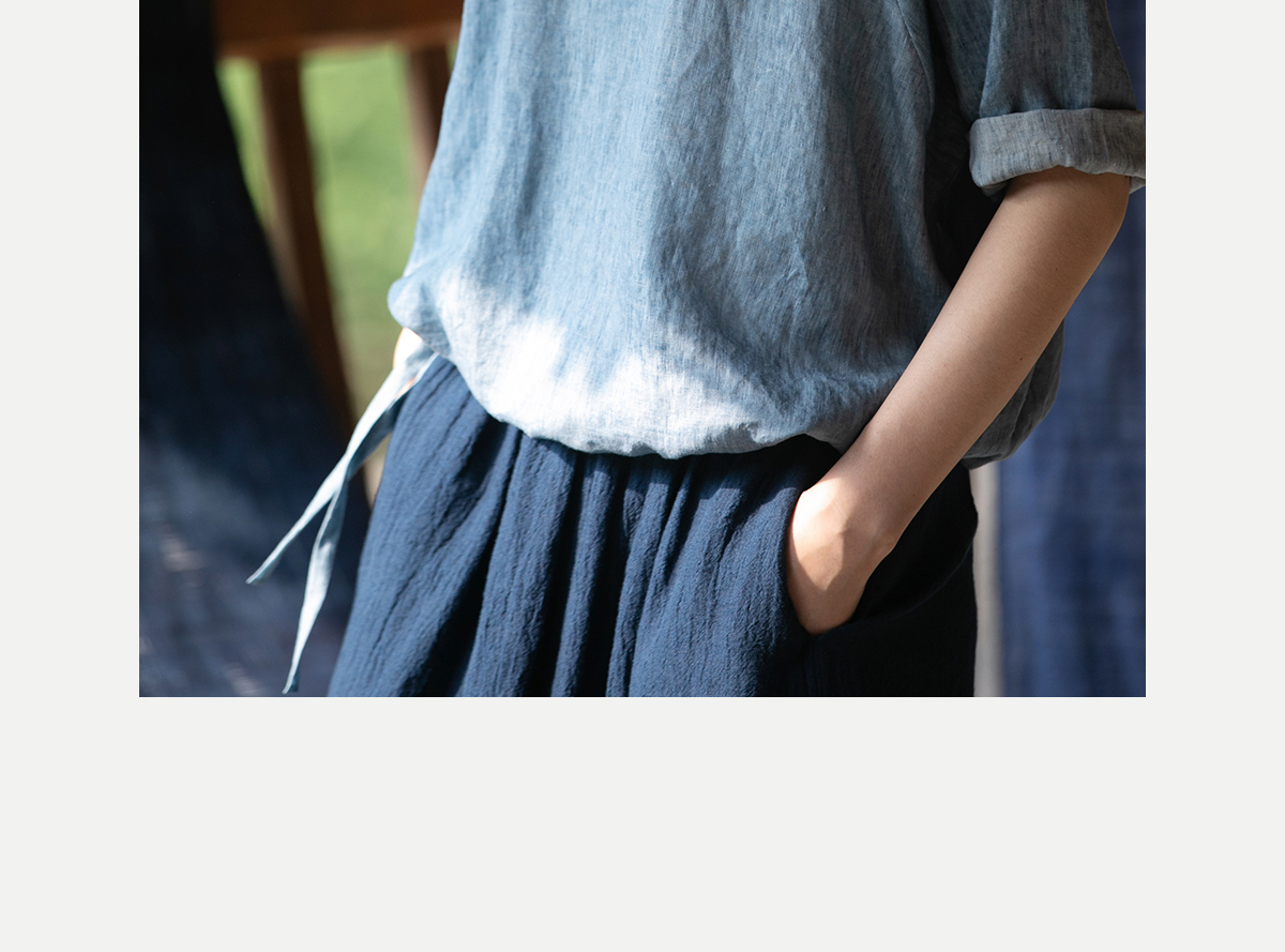牧衣游原创 进口亚麻手工刺绣炒色套头衫轻薄抽绳七分袖上衣 境禾