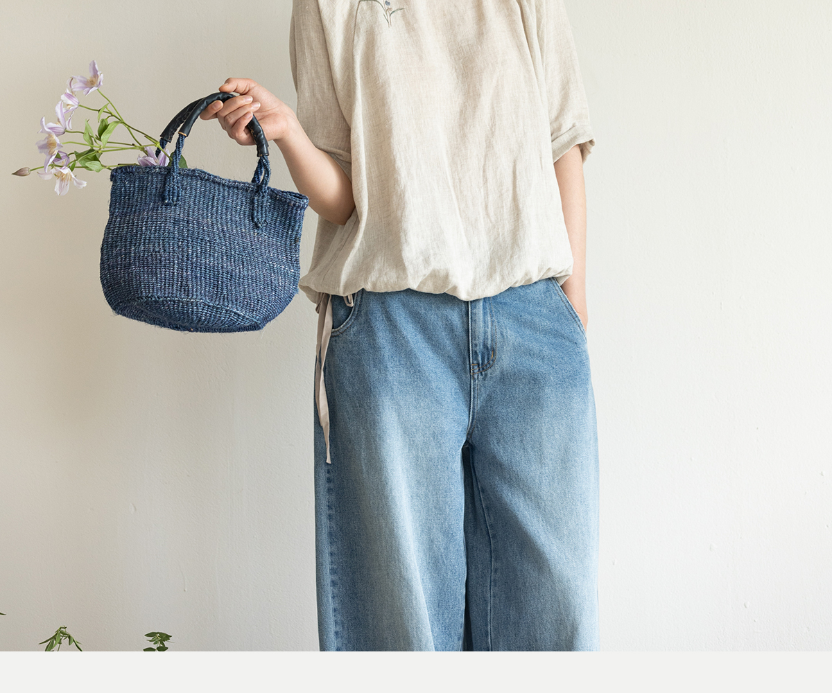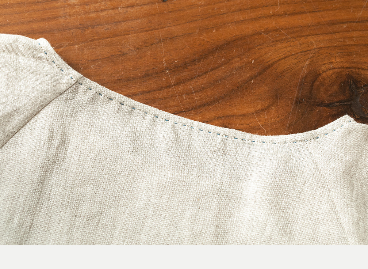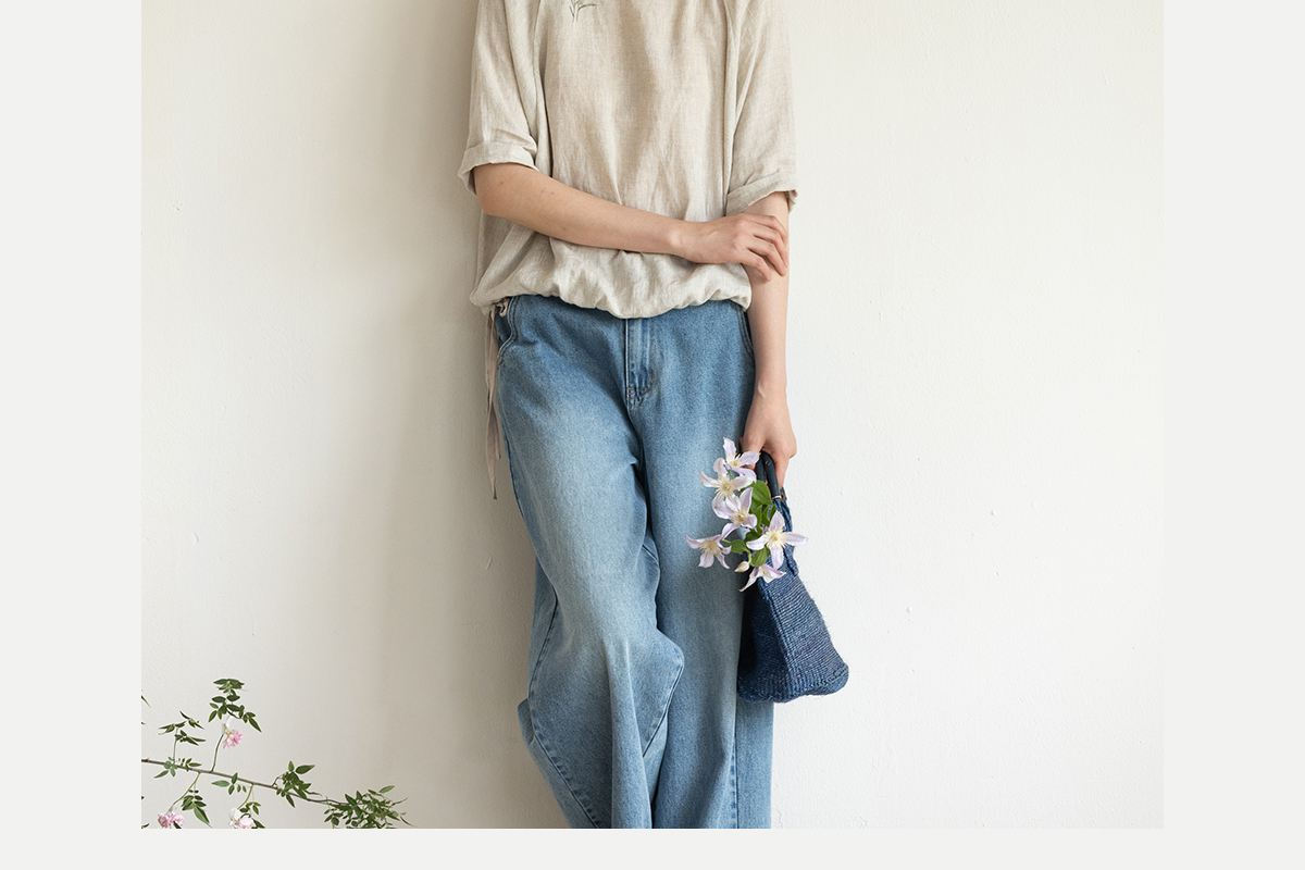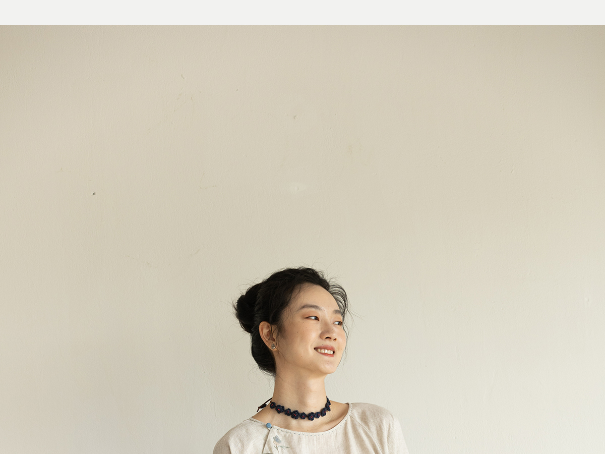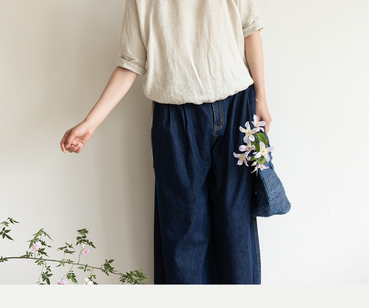 牧衣游原创 进口亚麻手工刺绣炒色套头衫轻薄抽绳七分袖上衣 境禾