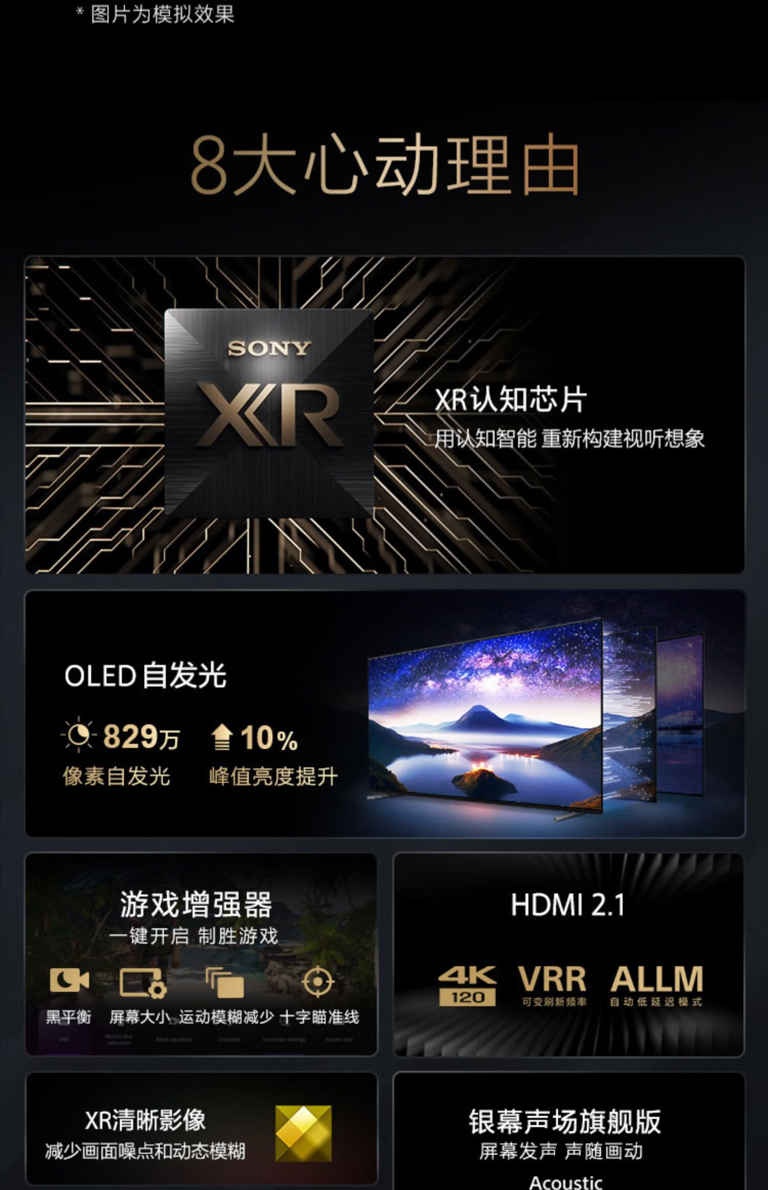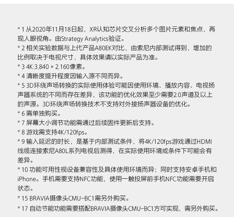 索尼(SONY) XR-77A80L 77英寸 OLED全面屏电视 XR认知芯片 AI智能语音