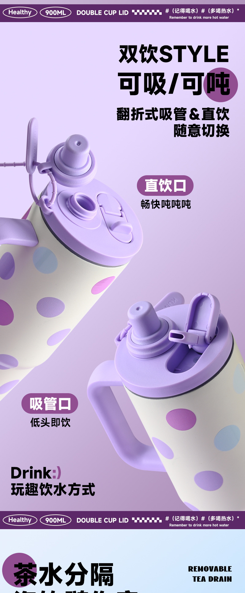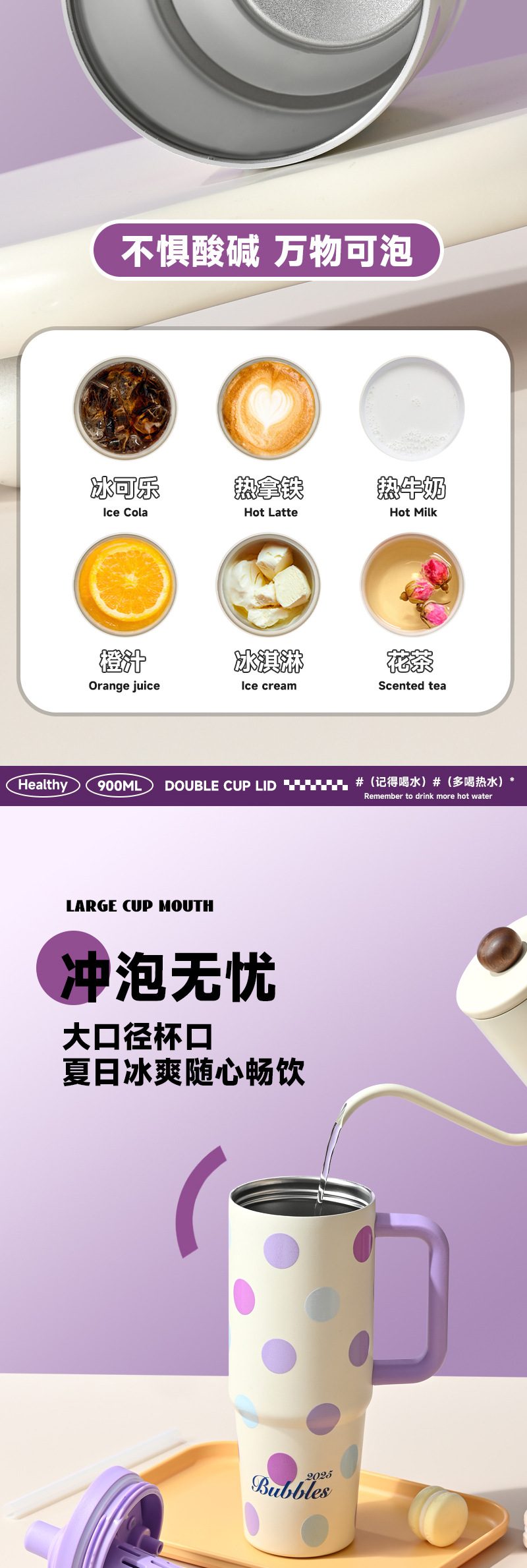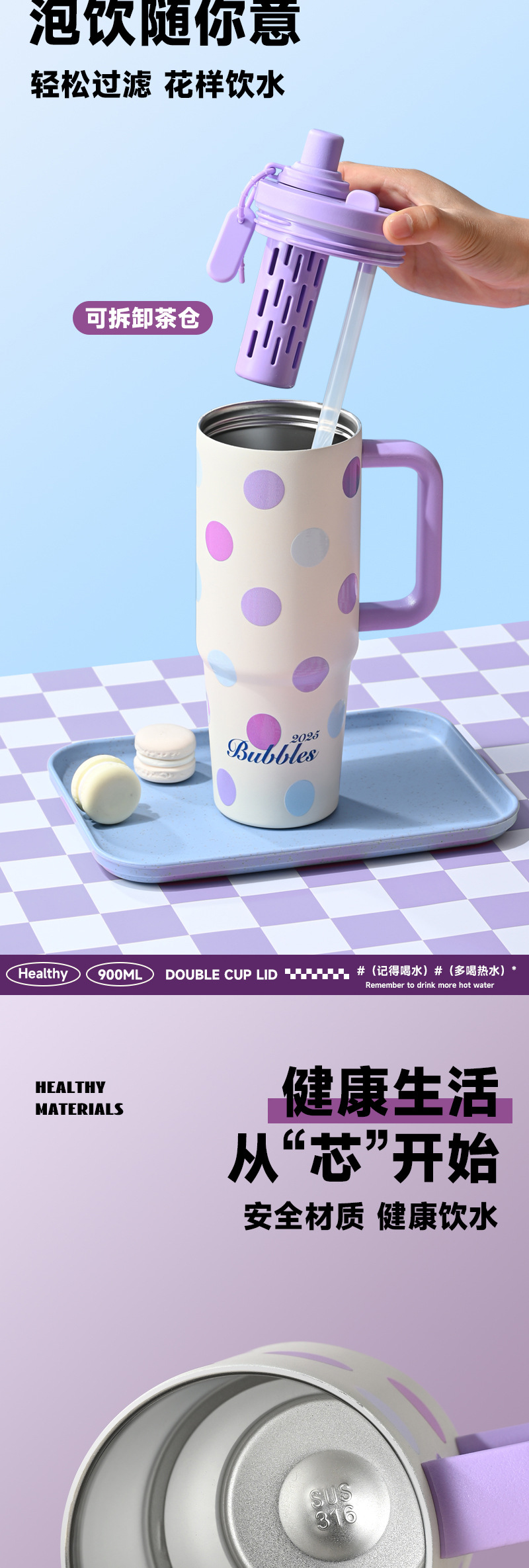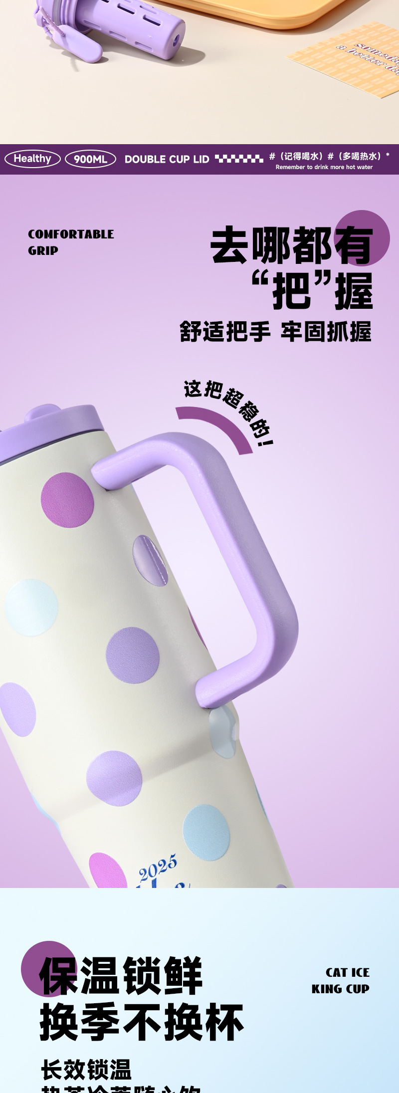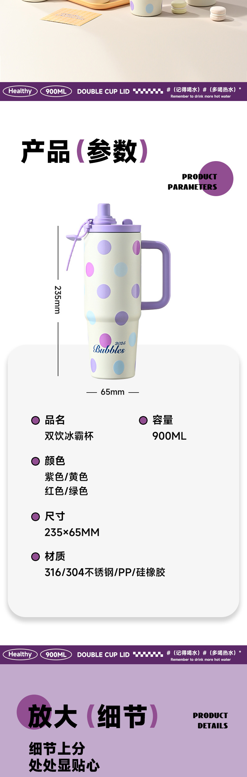 新款保冷杯冷水杯轻奢保温杯大容量简约冰霸杯户外便携双饮吸管水杯学生手柄杯