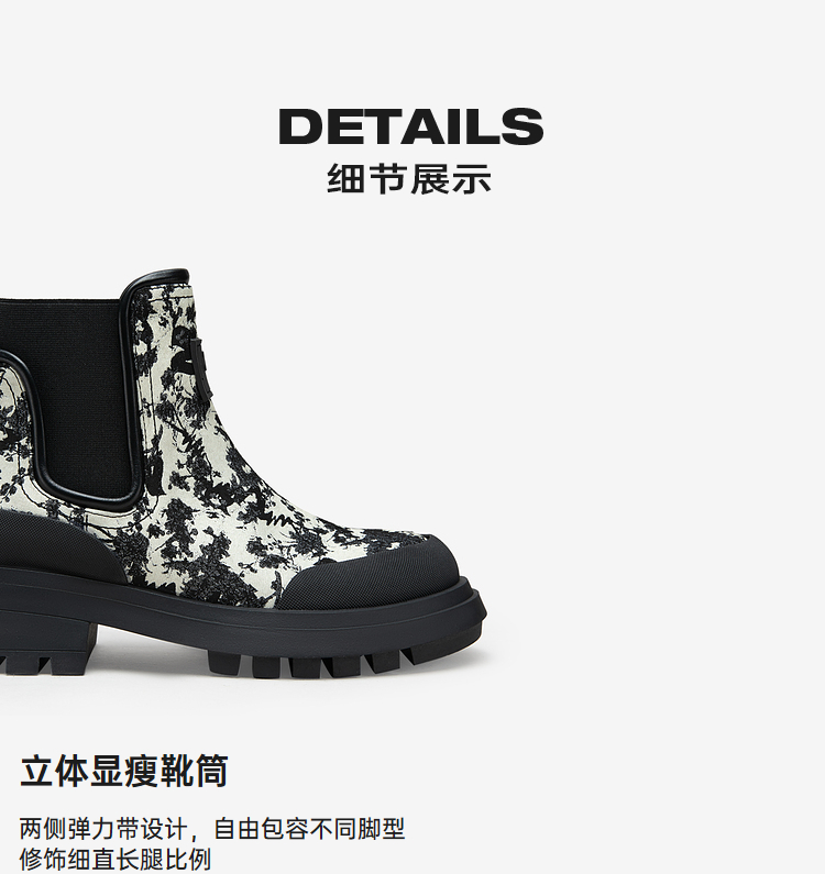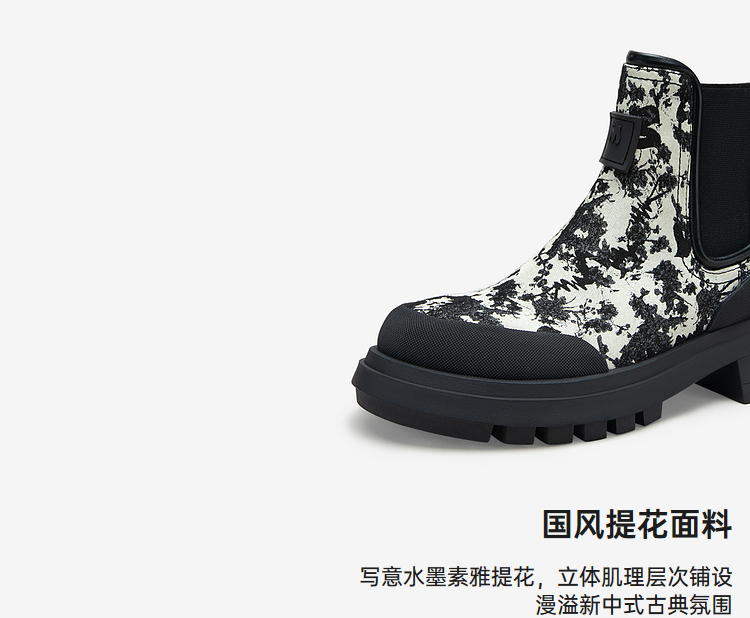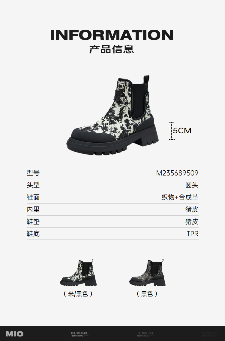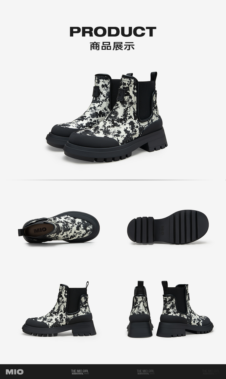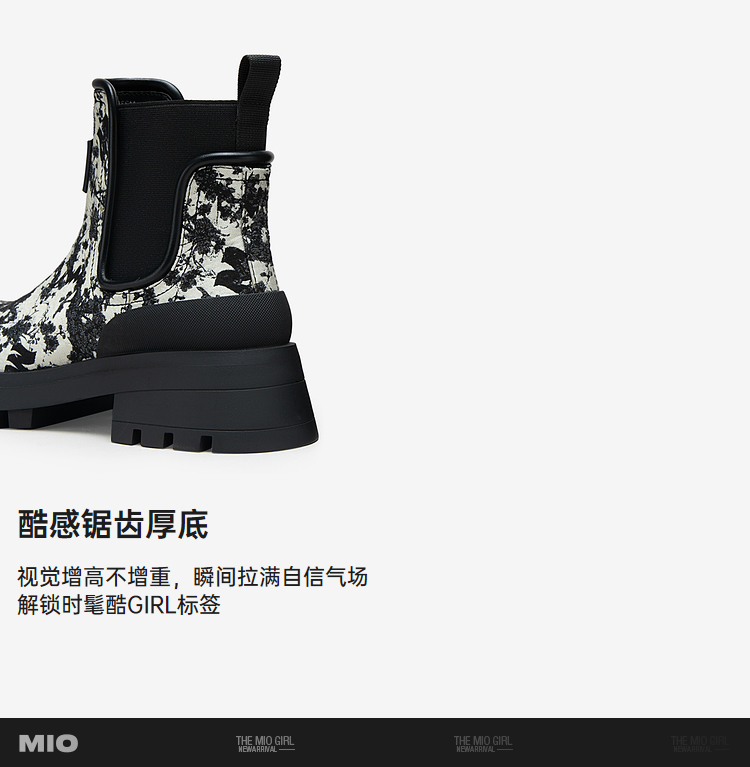MIO米奥冬季新款靴子圆头中跟酷感厚底新中式切尔西靴女靴M235689509