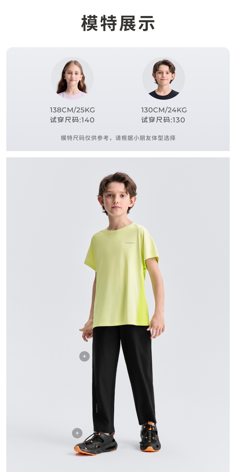 moodytiger女童短袖T恤2022夏季新款轻薄纯色速干短袖上衣| 深海 M22210103