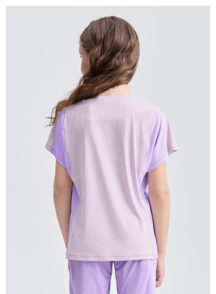 【专属】moodytiger24年夏新女童Lattice短袖夏季休闲圆领透气宽松T恤42210110