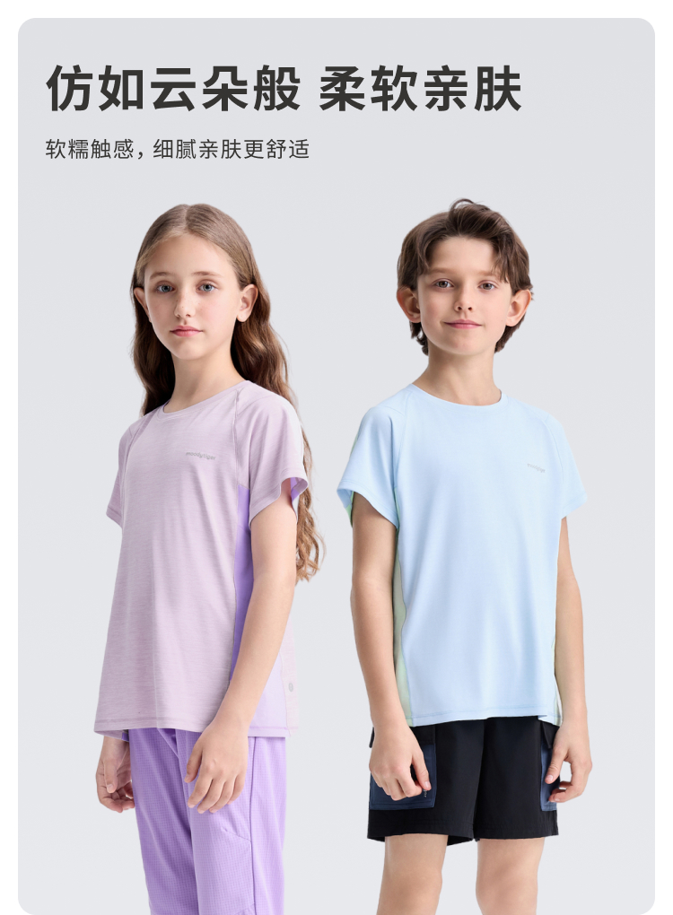 【DR暑假】moodytiger儿童25夏新软糯亲肤防勾丝撞色T恤52510112