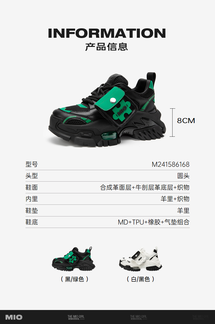 MIO米奥春季圆头高跟时尚休闲鞋撞色潮流运动老爹鞋女鞋M241586168