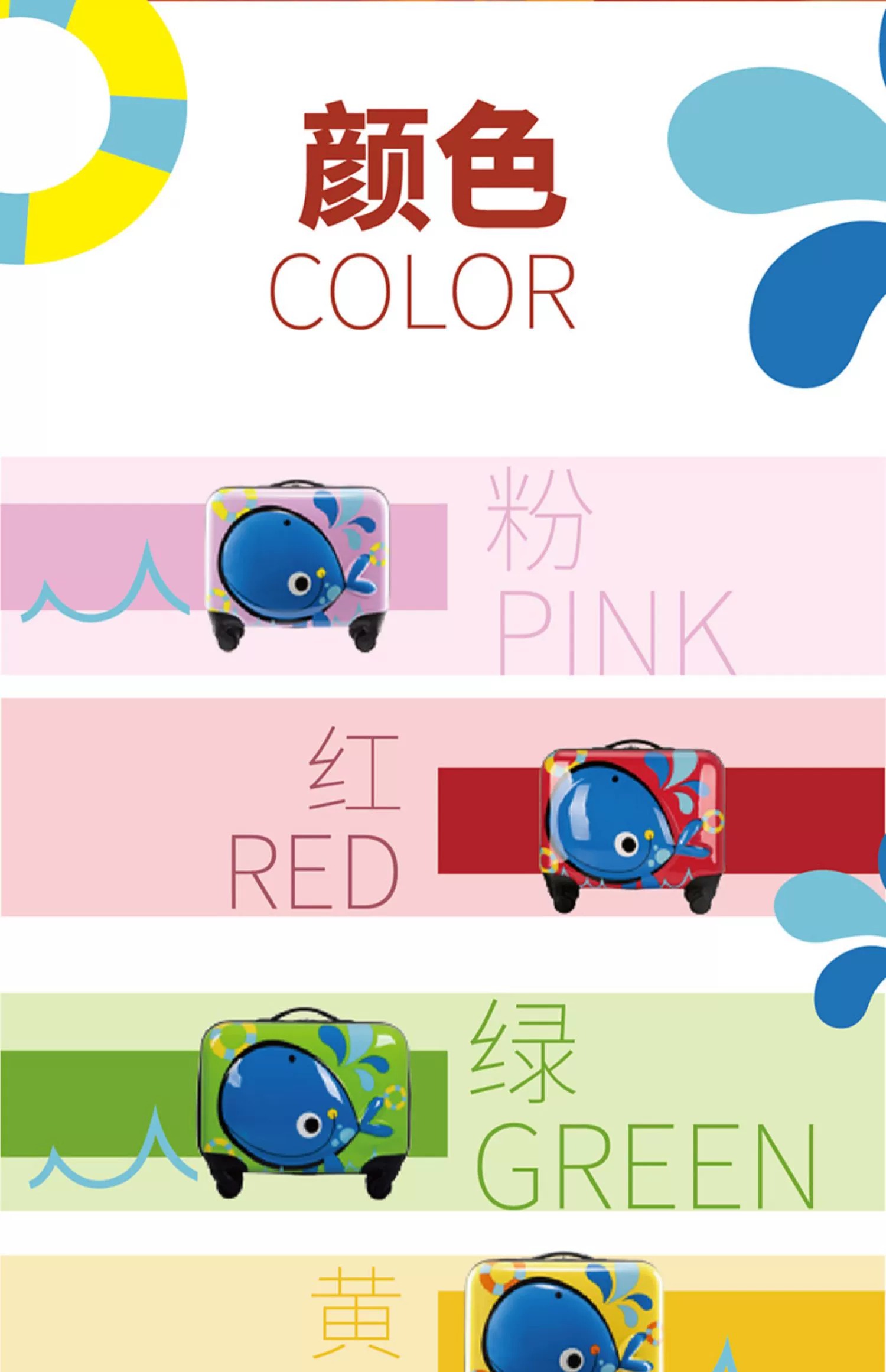 【专柜多样屋】银座金鱼儿童拉杆箱行李箱/黄18英寸