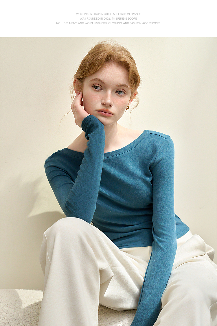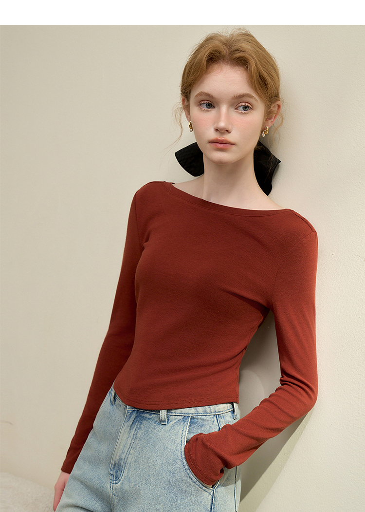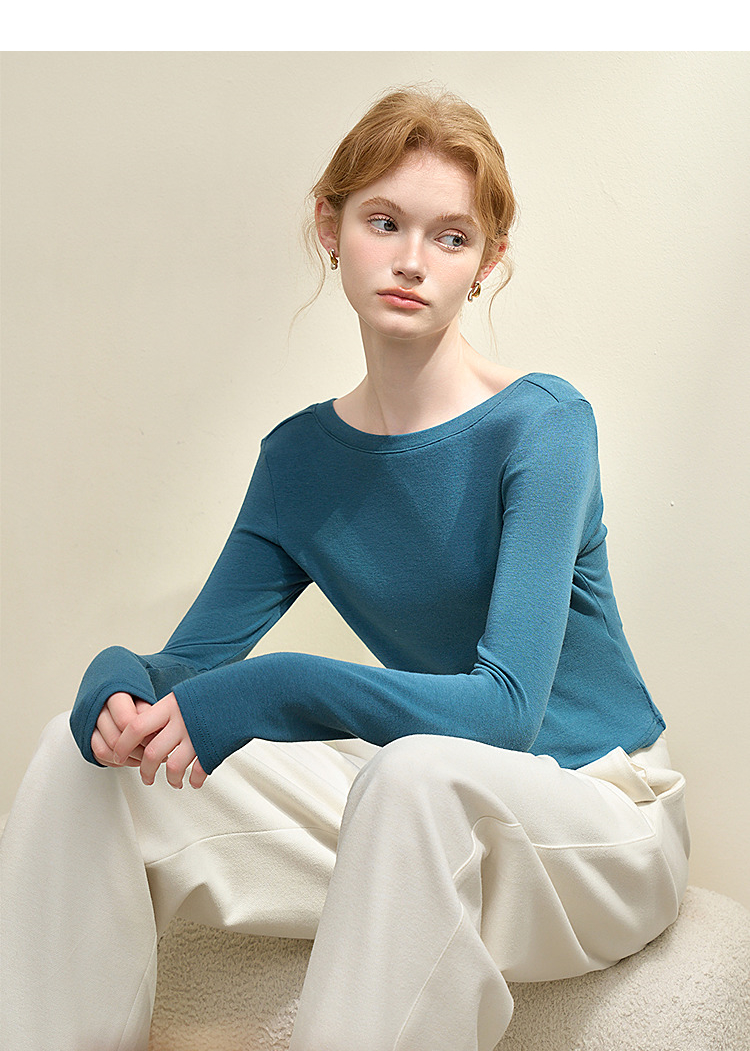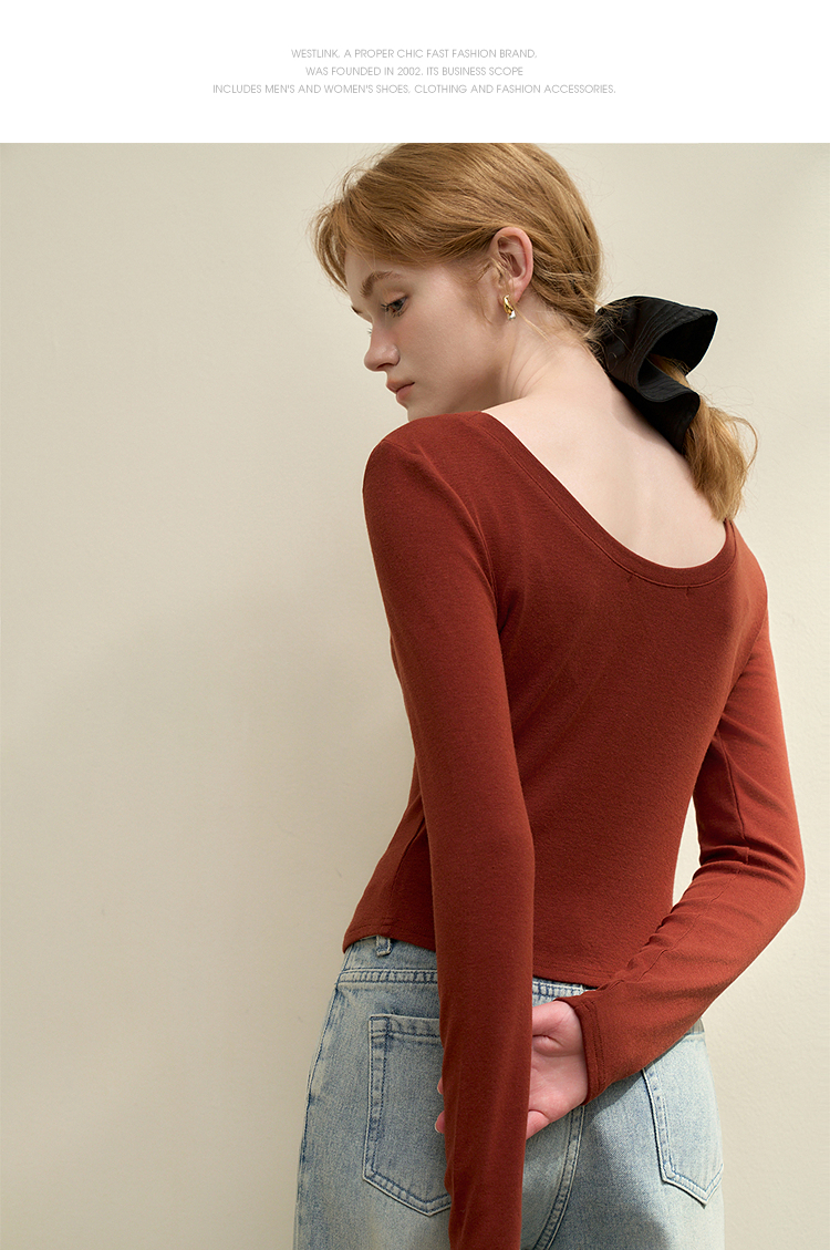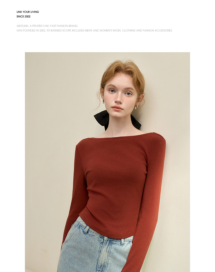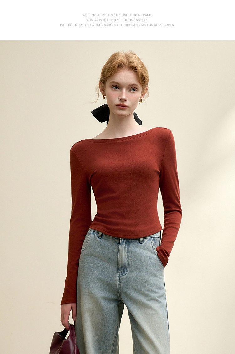 西遇圆领长袖T恤女新款百搭修身显瘦短款内搭打底衫D3742627