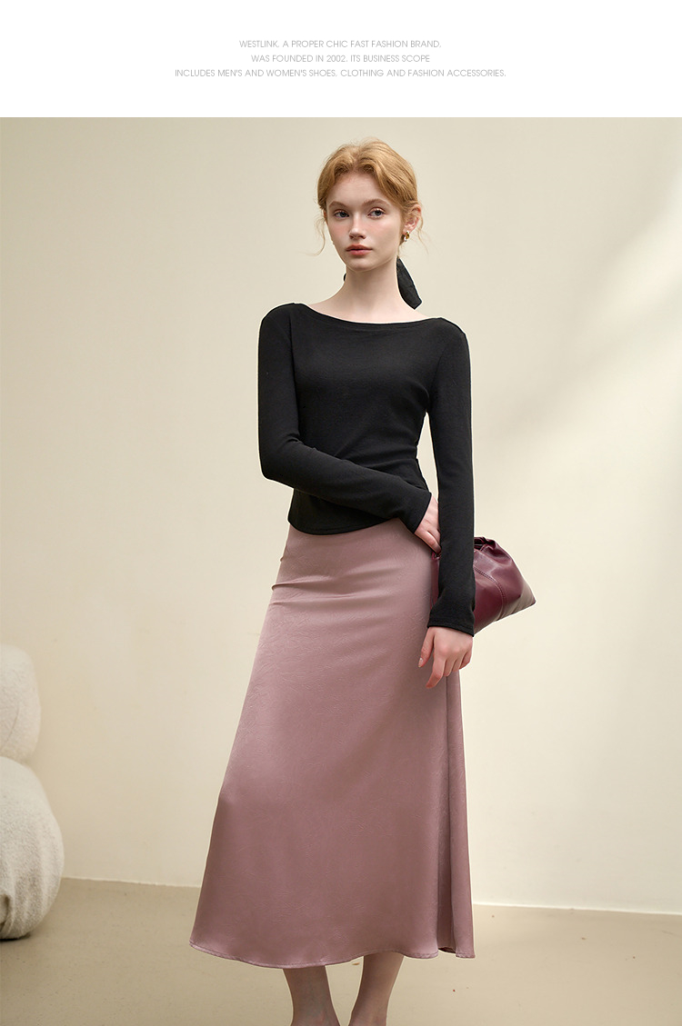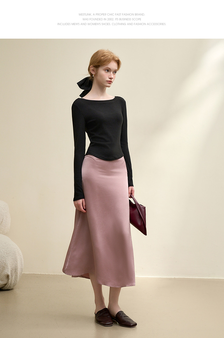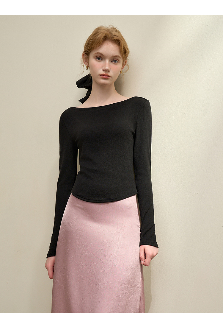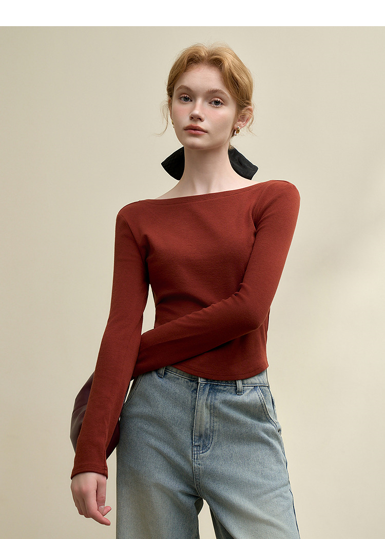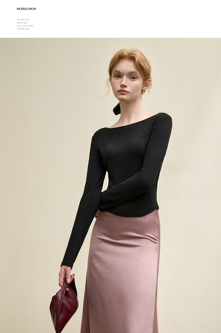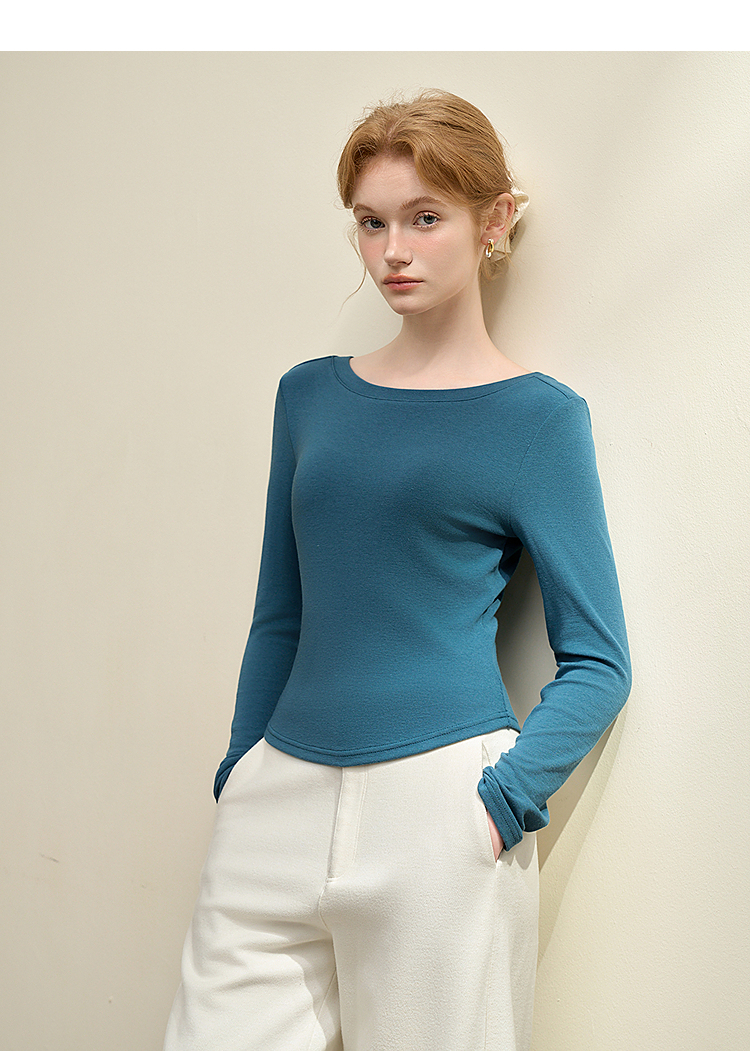西遇圆领长袖T恤女新款百搭修身显瘦短款内搭打底衫D3742627