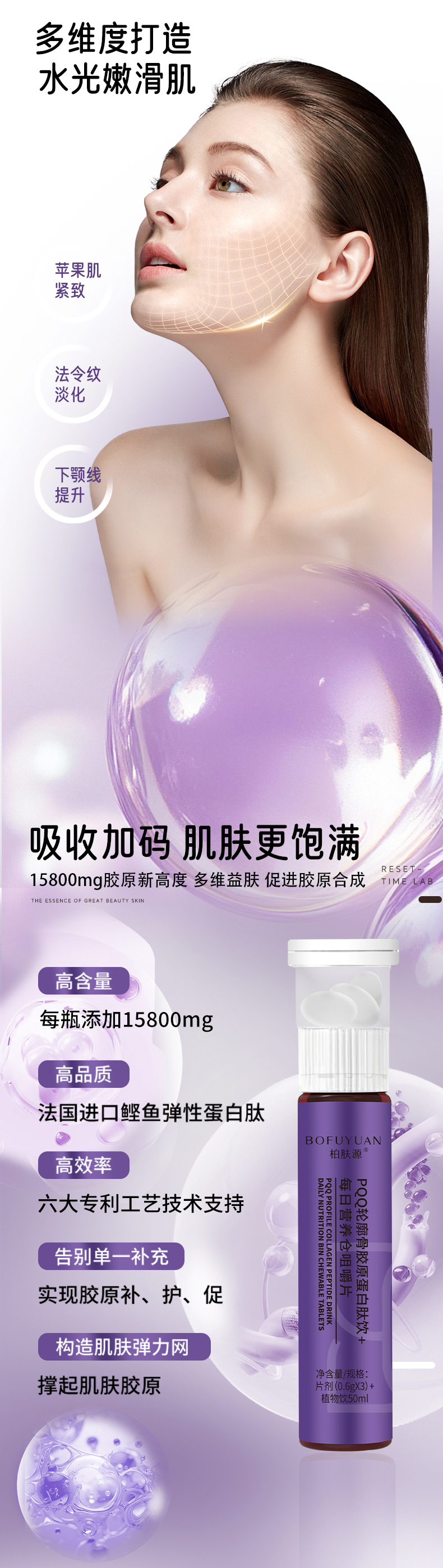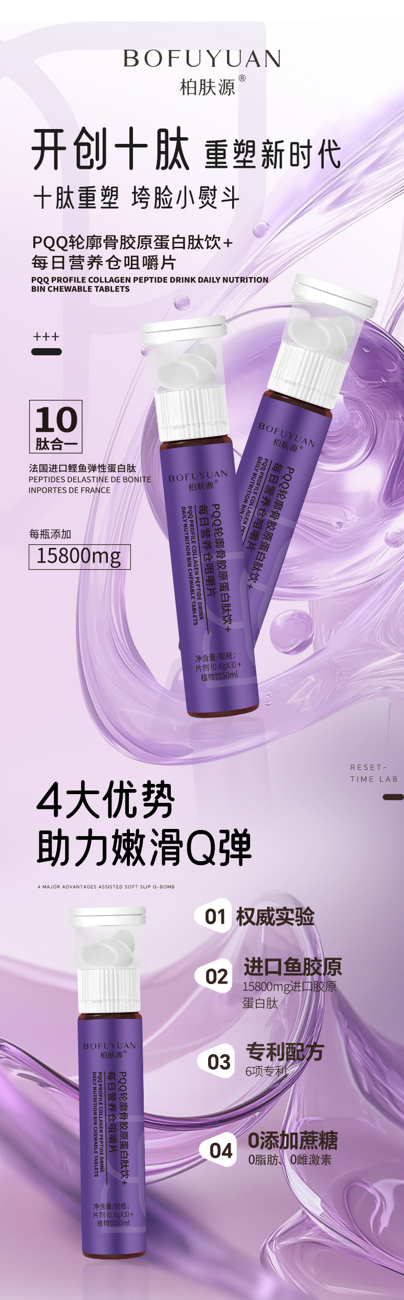 【行业首创奇迹双仓】柏肤源 PQQ轮廓骨胶原蛋白肽饮+ 每日营养仓咀嚼片QP