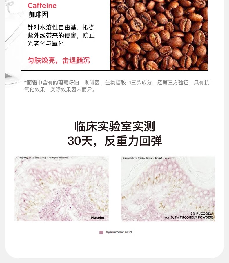 咖啡因:针对水溶性自由基,抵御紫外线带来的侵害,防止光老化和氧化