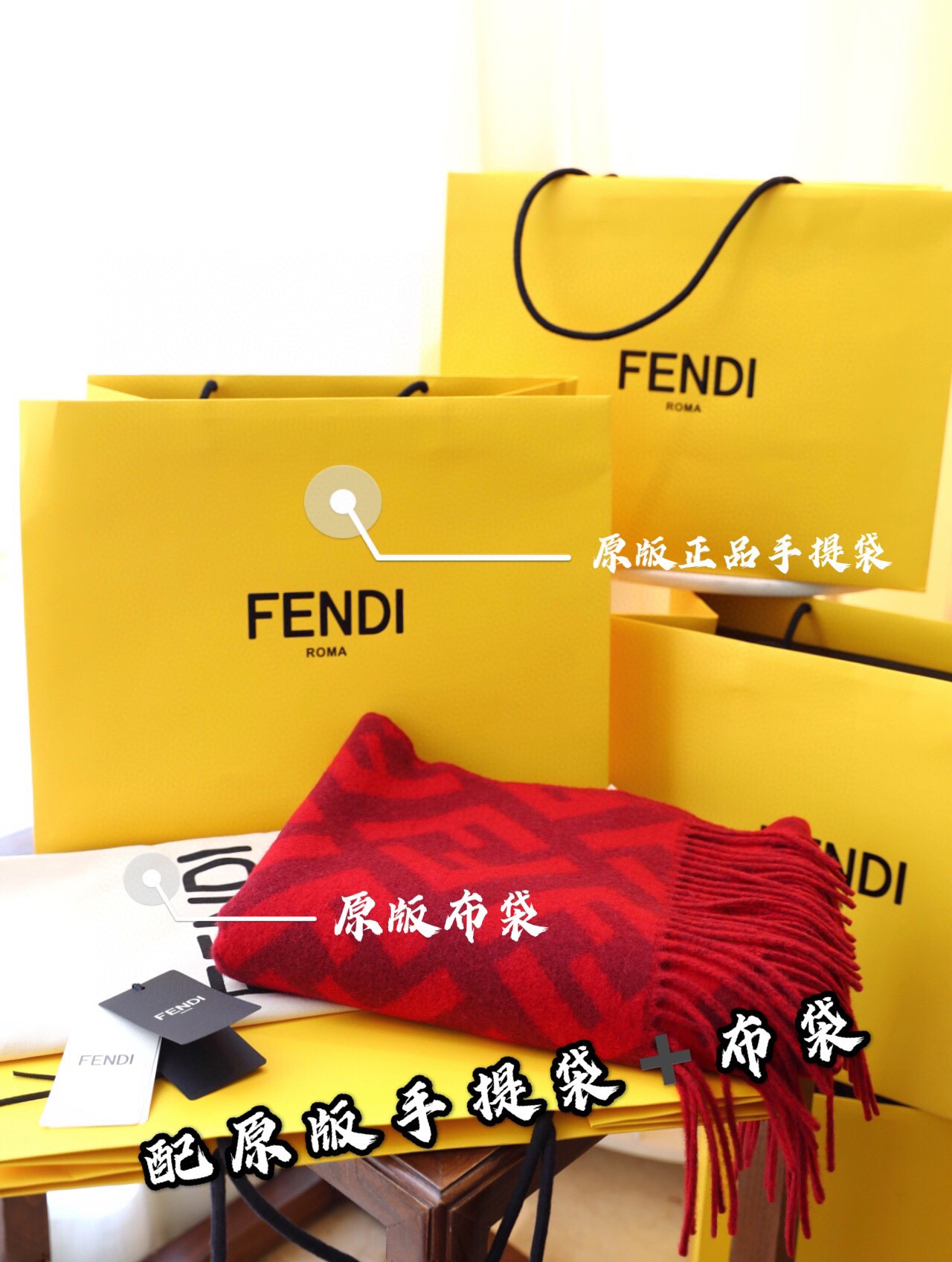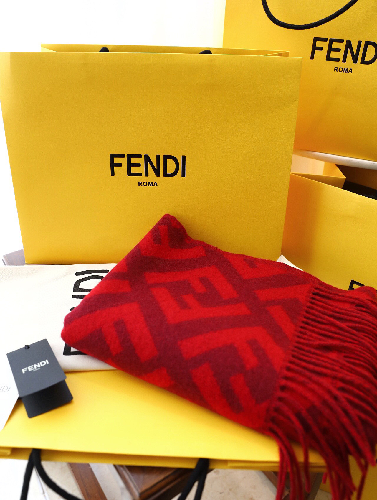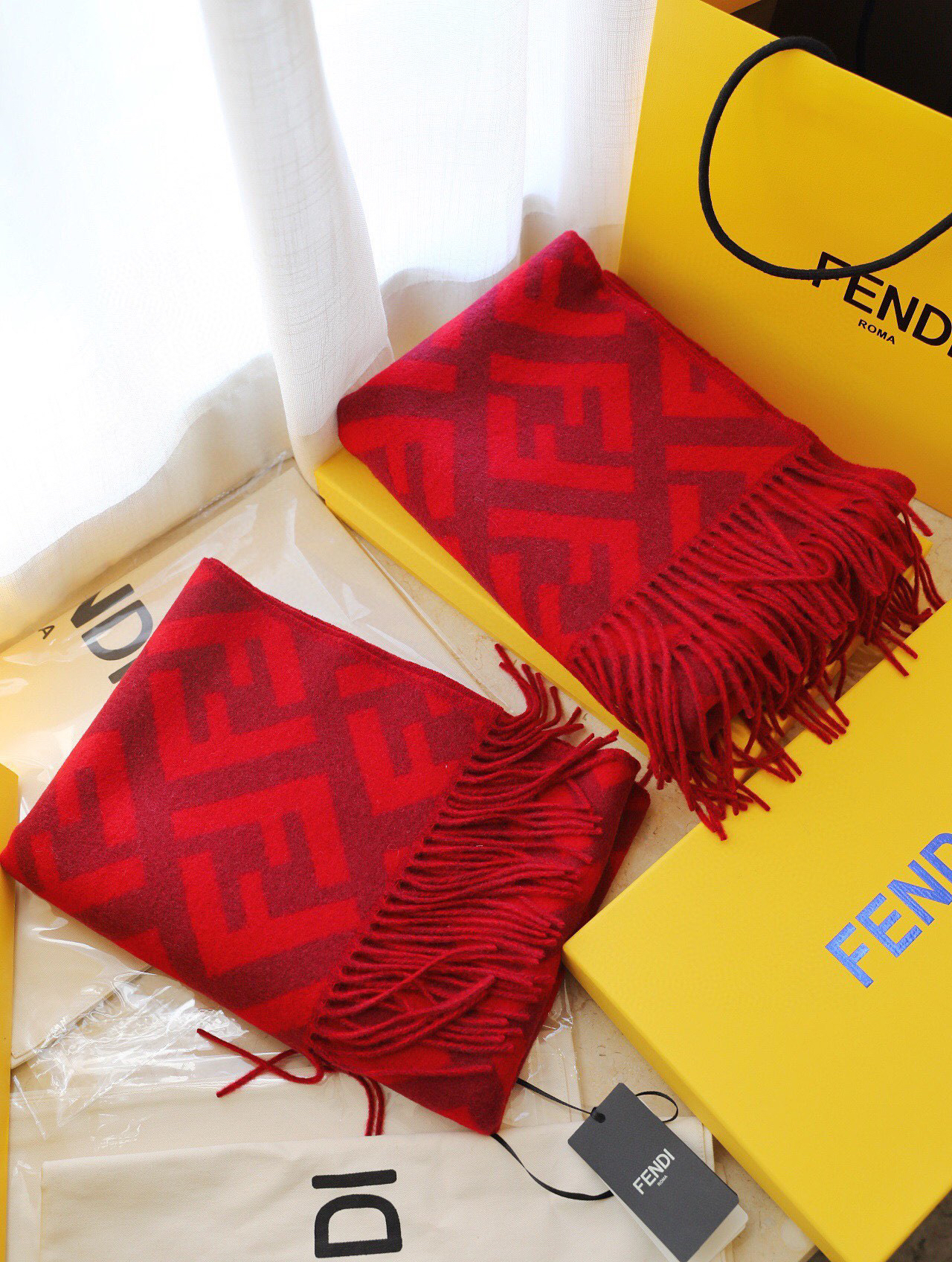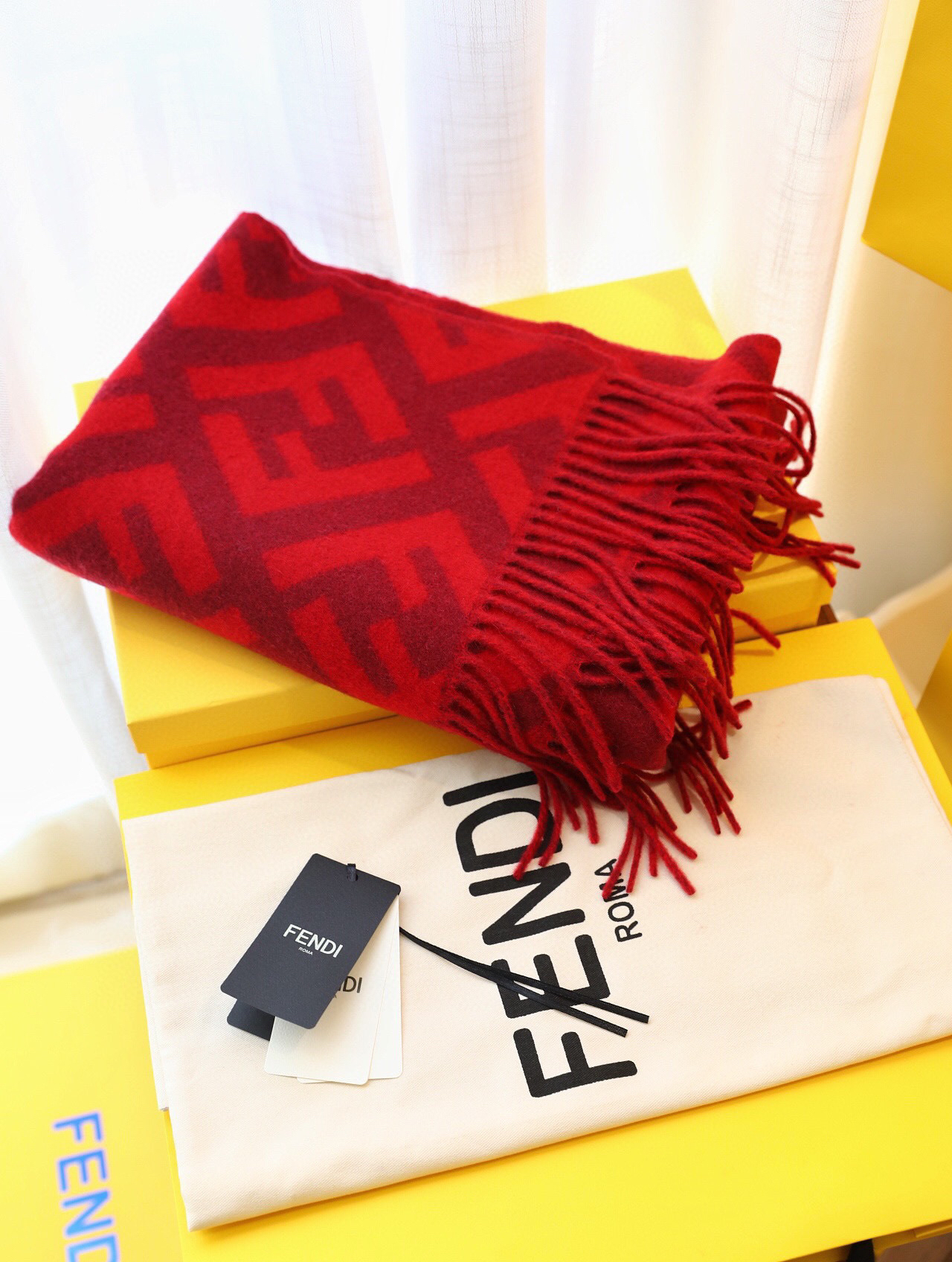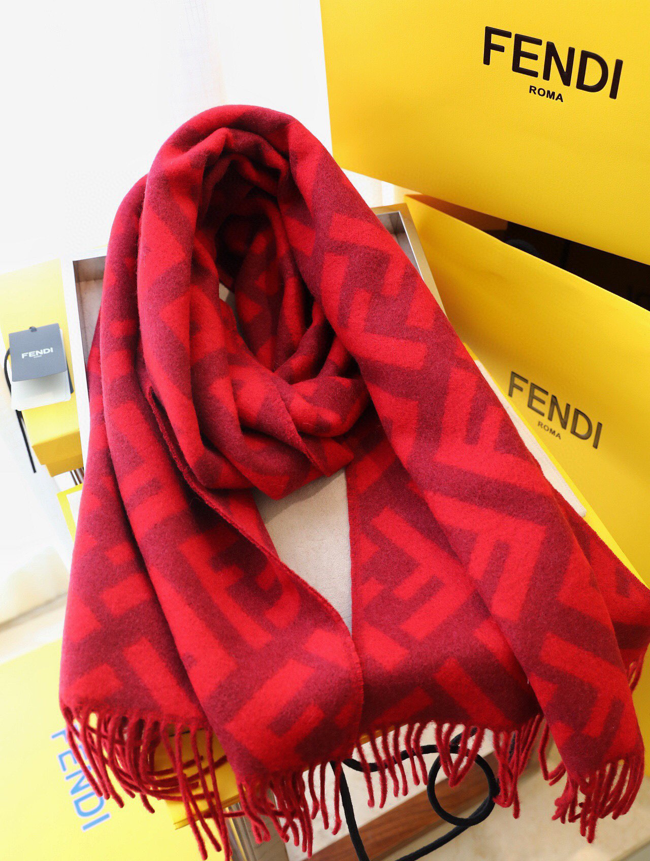 Fendi羊绒围巾-红色