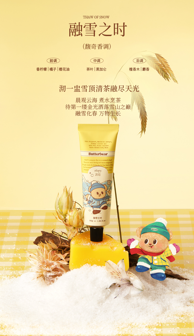 roopy润培丨黄油小熊系列馥奇香氛植物精粹护手霜55g*4支组合