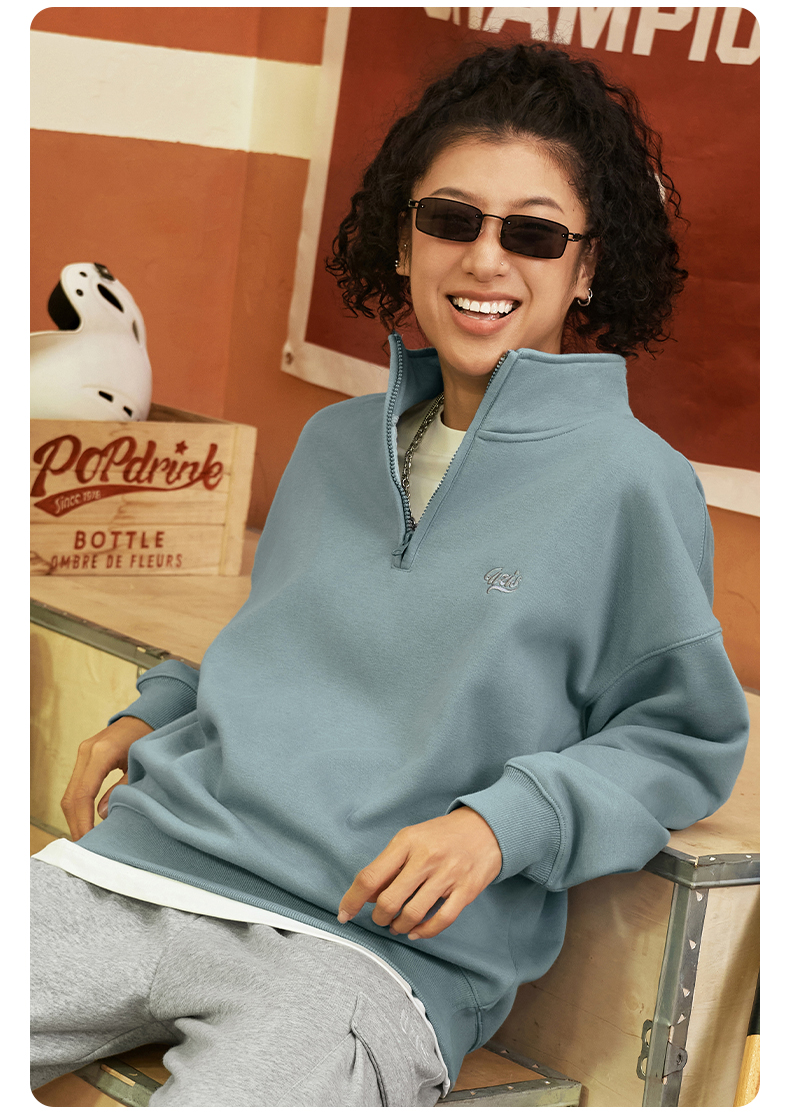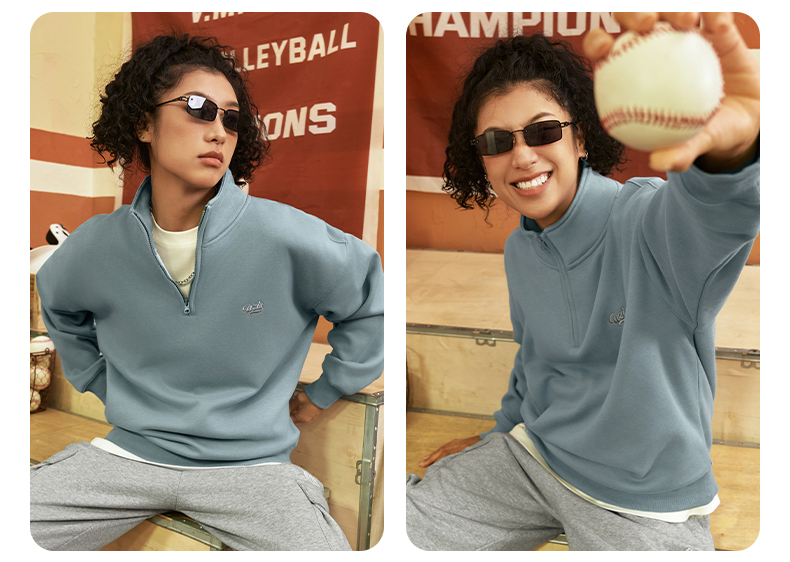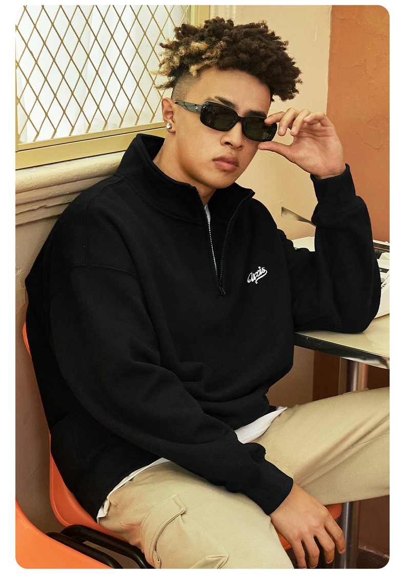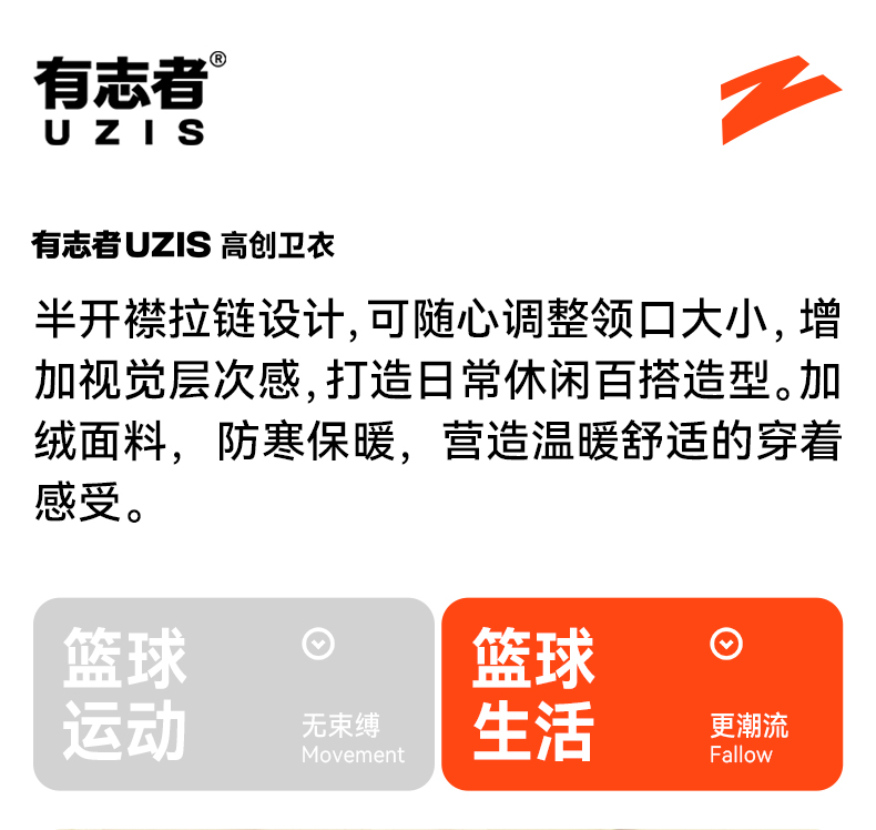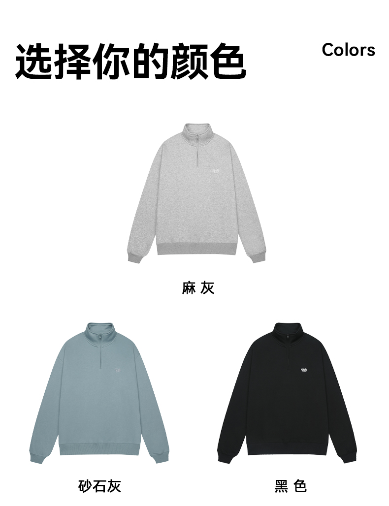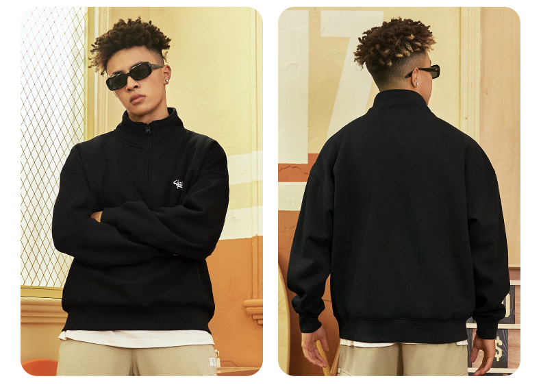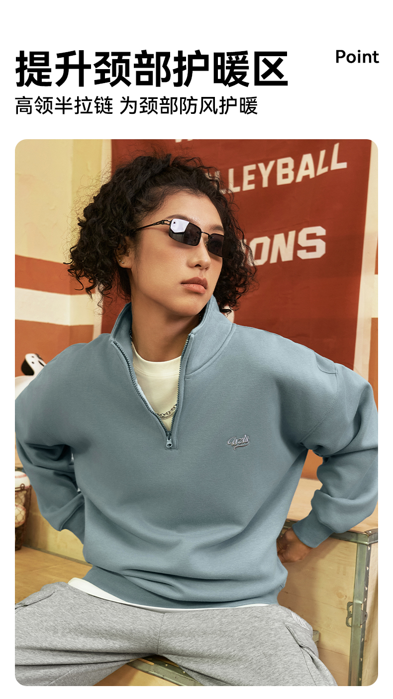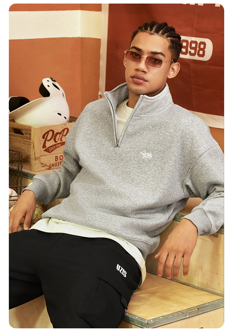 有志者UZIS美式半拉链卫衣男立领运动休闲秋冬季抓绒套头上衣高创