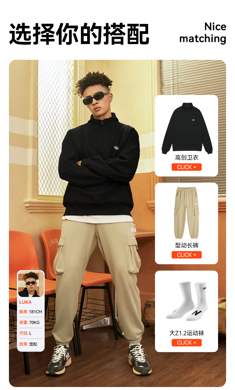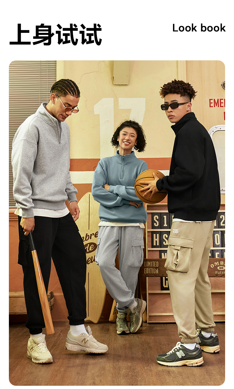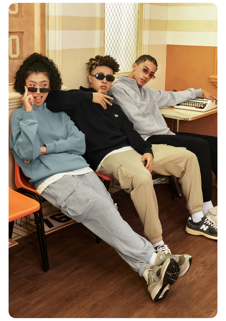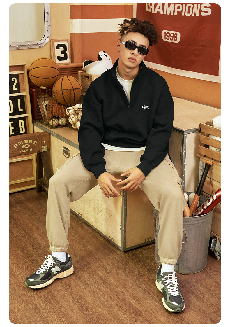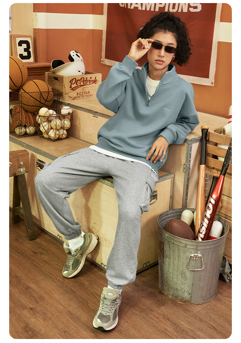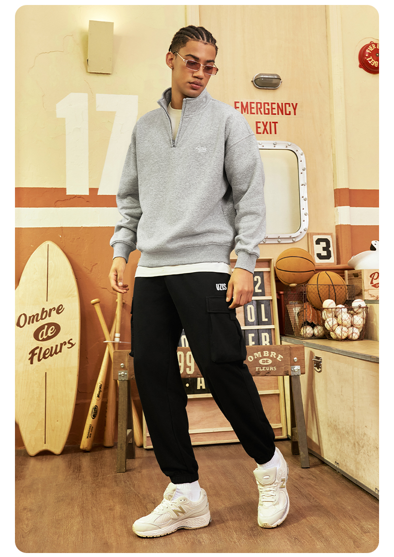 有志者UZIS美式半拉链卫衣男立领运动休闲秋冬季抓绒套头上衣高创