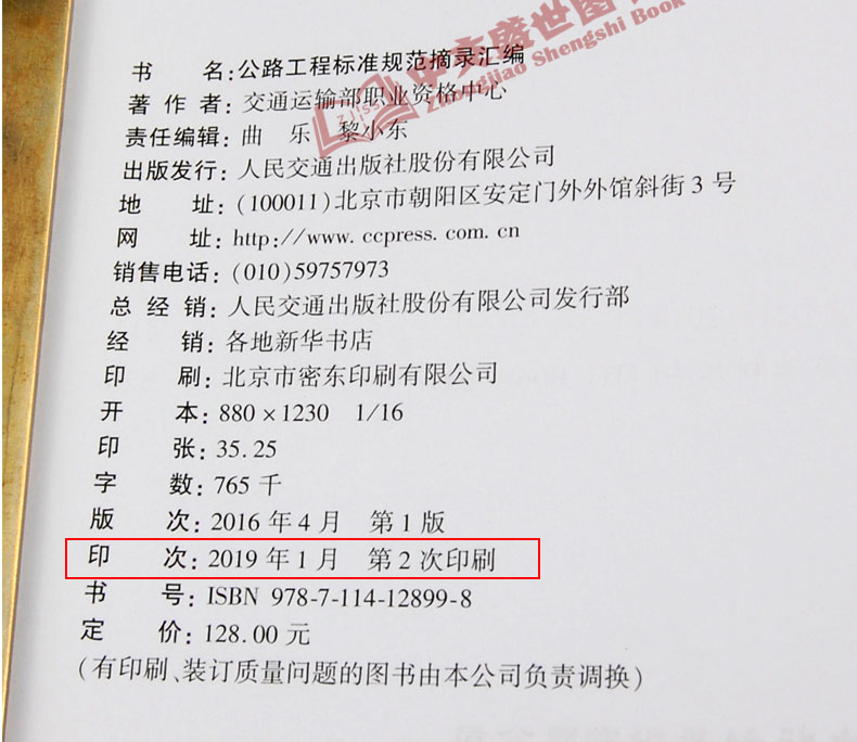 - 北京中交盛世图书专营店是人民交通出版社股份有限公司下属自营店铺,具备图书批发零售综合资质,主要经营本版及外版道路工程、桥梁隧道、铁道工程、水利电力、航运海事类专业图书及相关技术规范,竭诚为广大读者提供一站式图书采购服务。