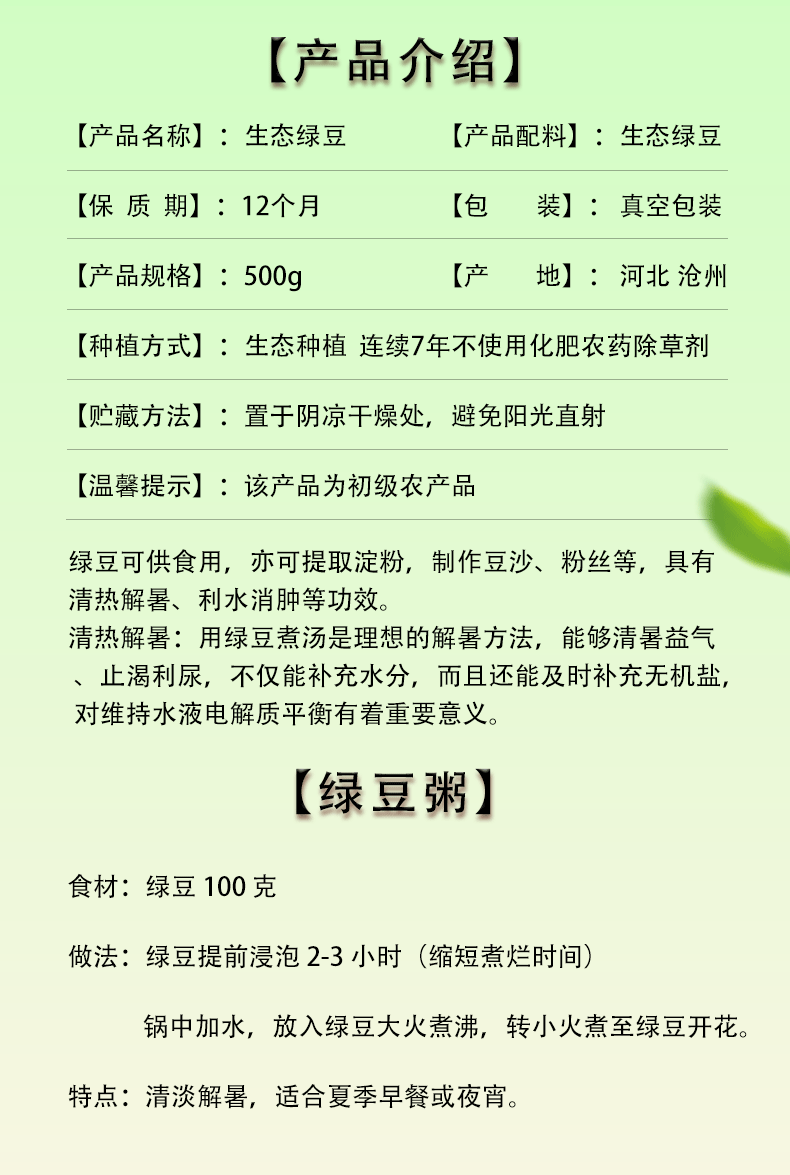 生态绿豆 酵素农耕生态种植 500g/袋【京东快递送货上门】