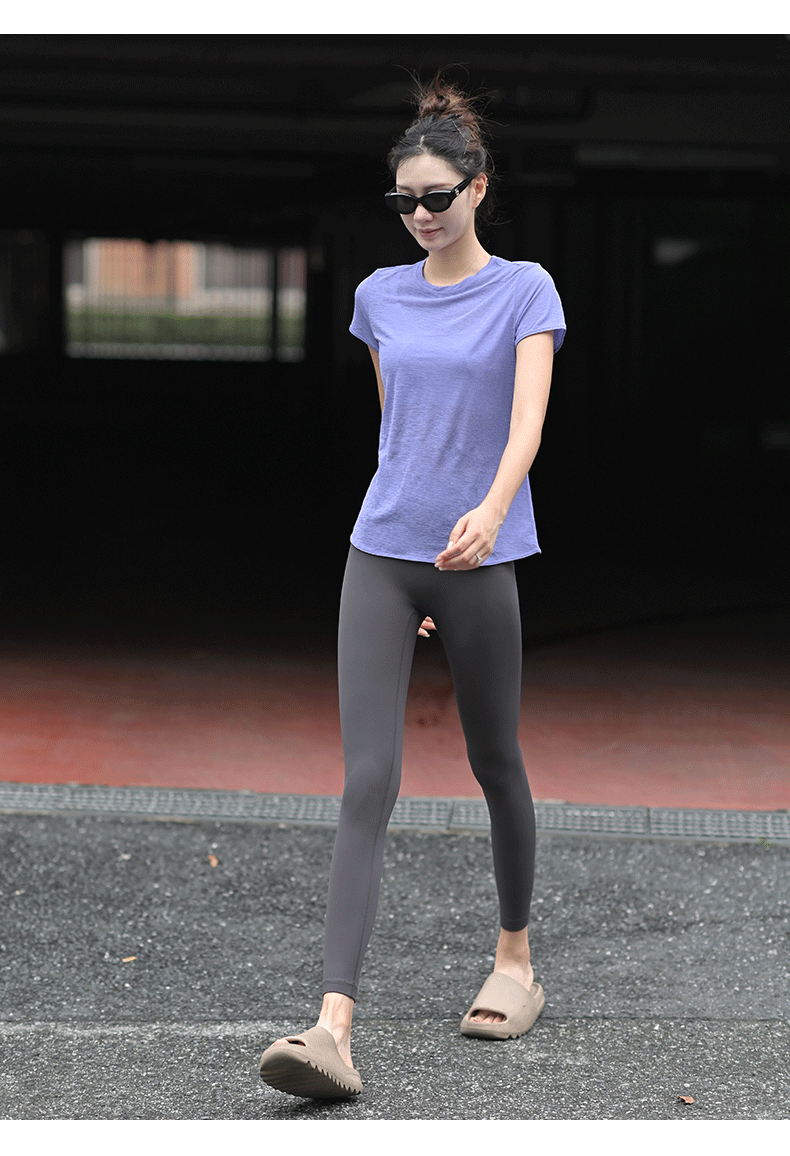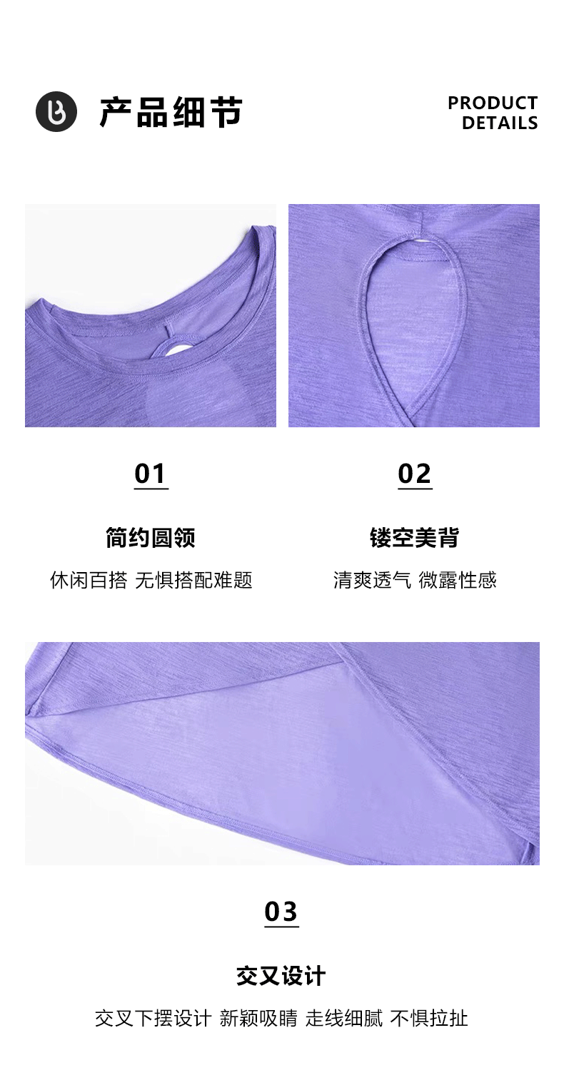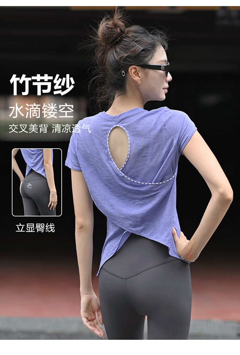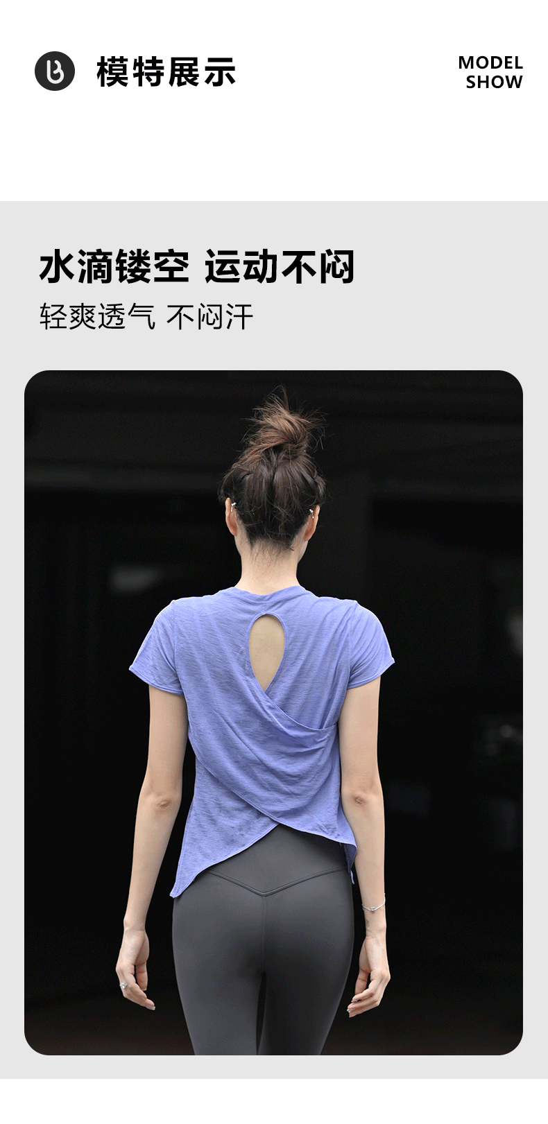beemen轻薄竹节纱 运动短袖 修身显腰瘦 修饰臀线 背后镂空清凉设计