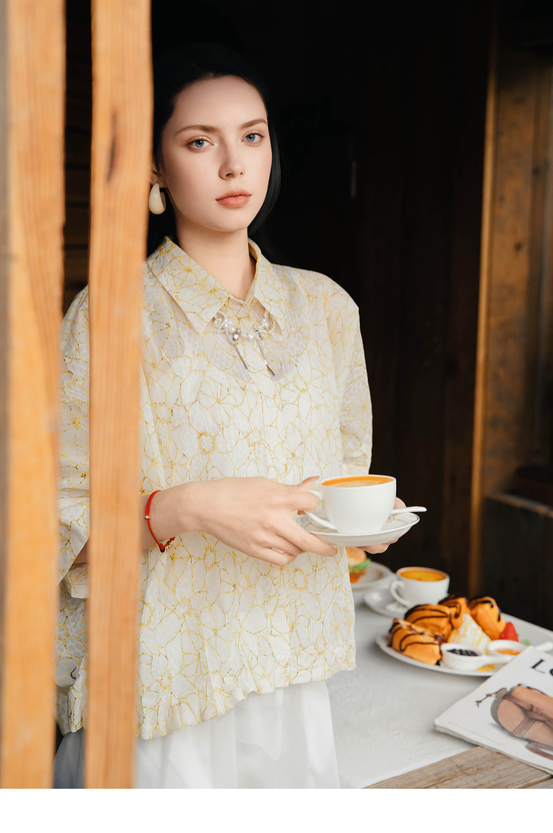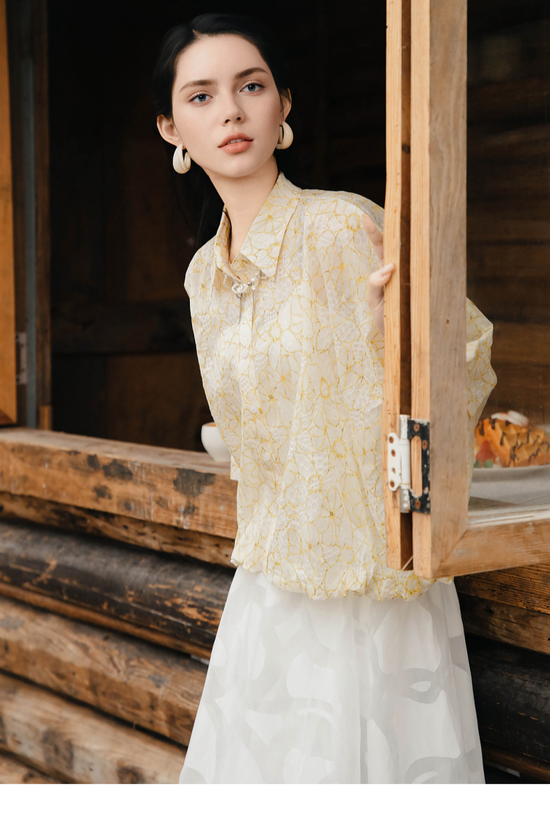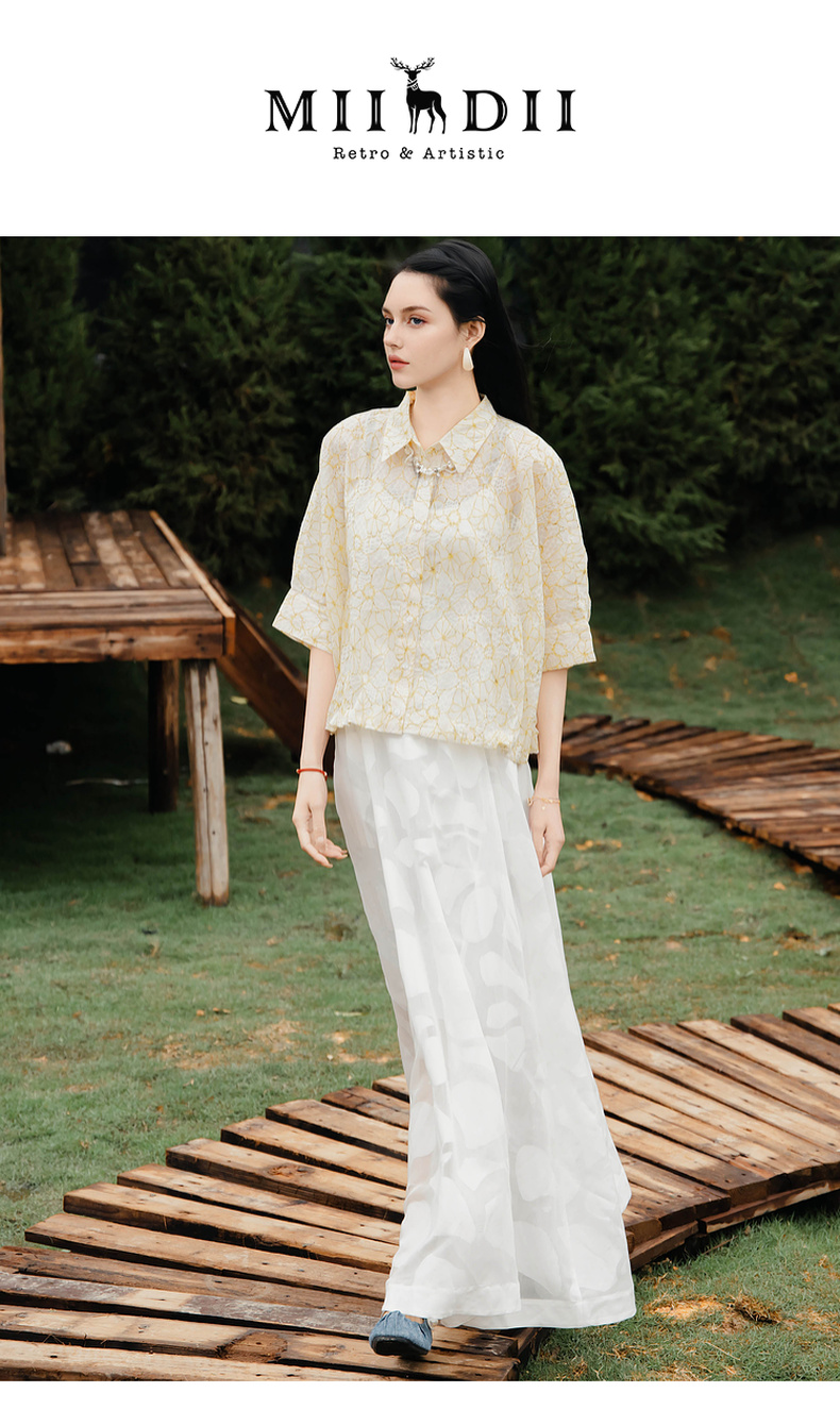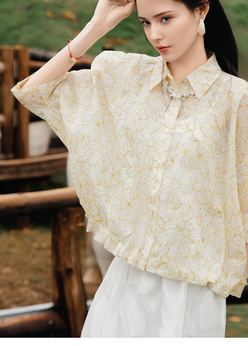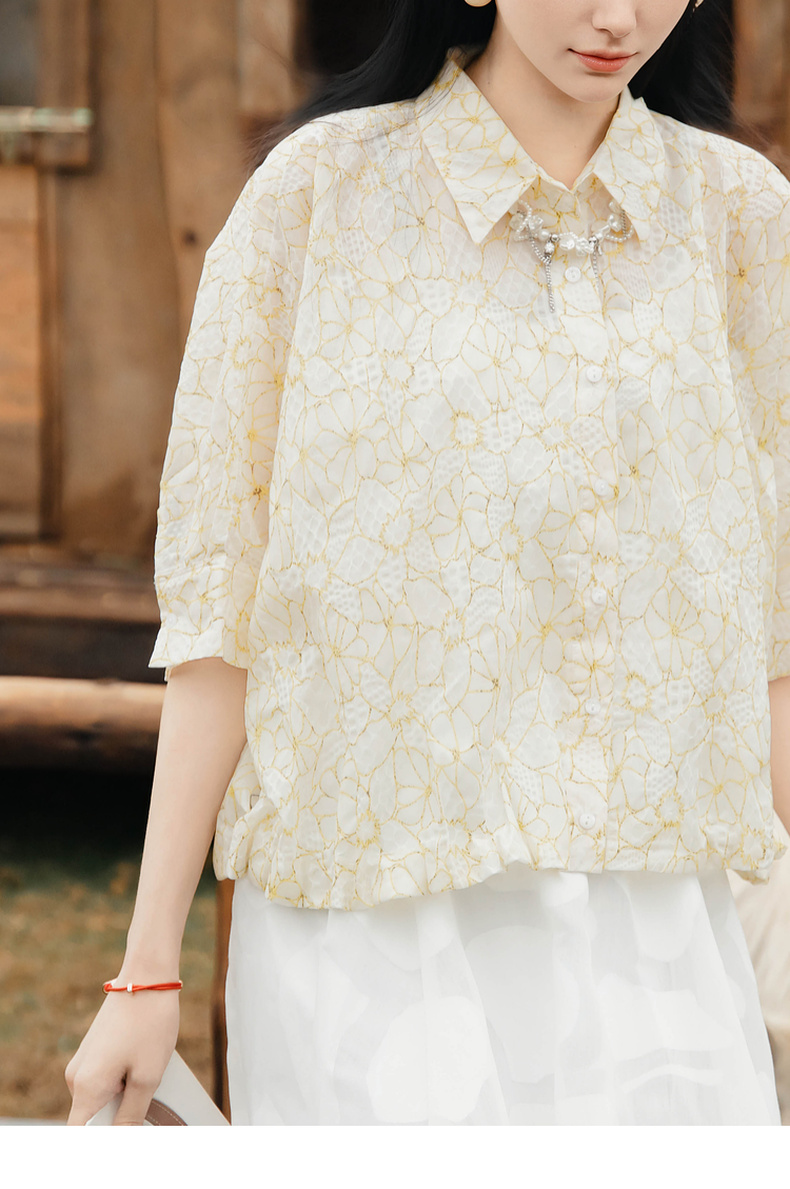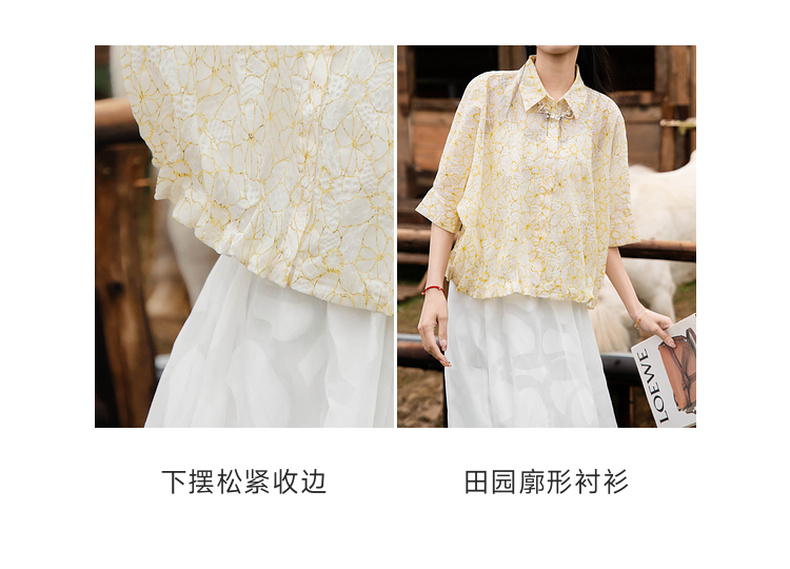 谜底衬衫五分袖女2025夏季新款小碎花清新出游宽松衬衣256MC6204