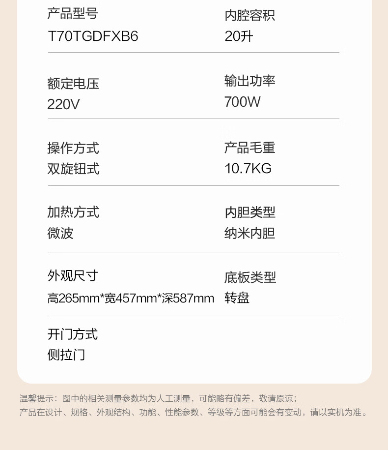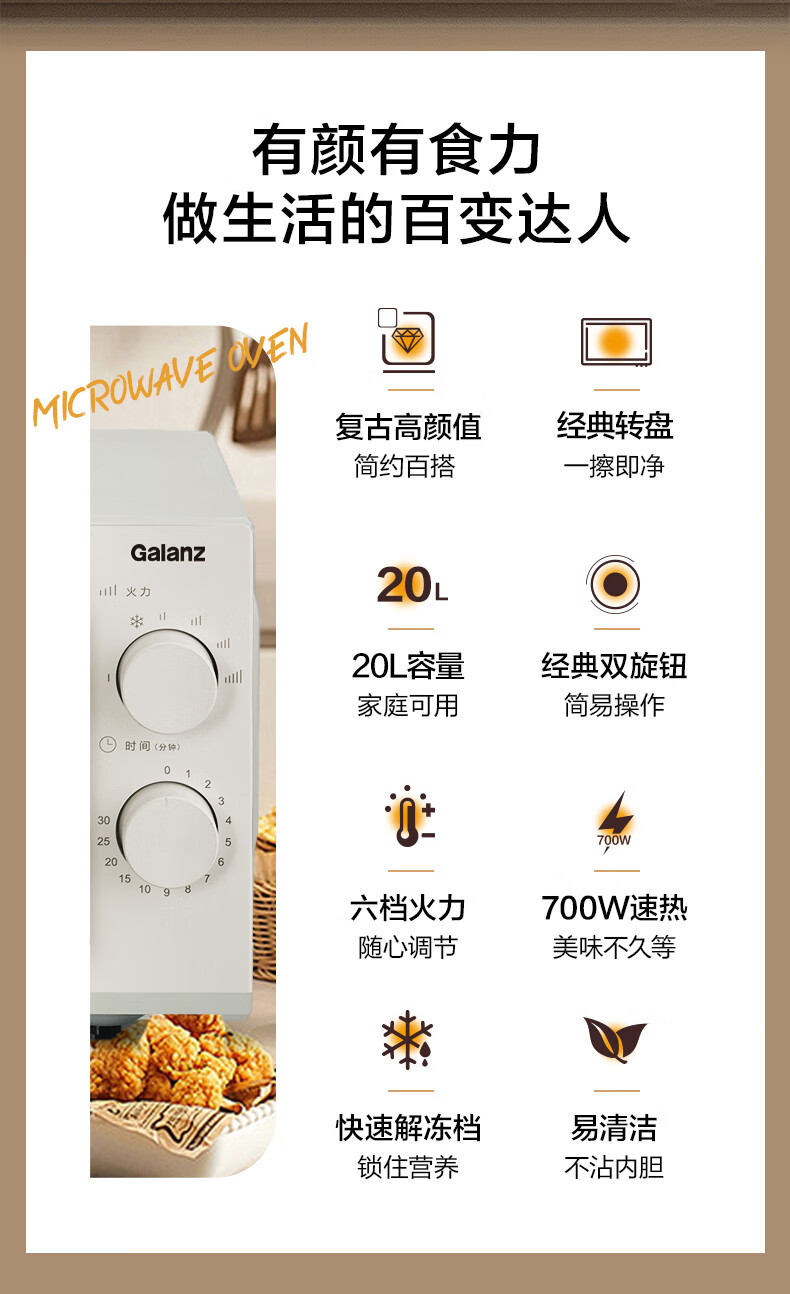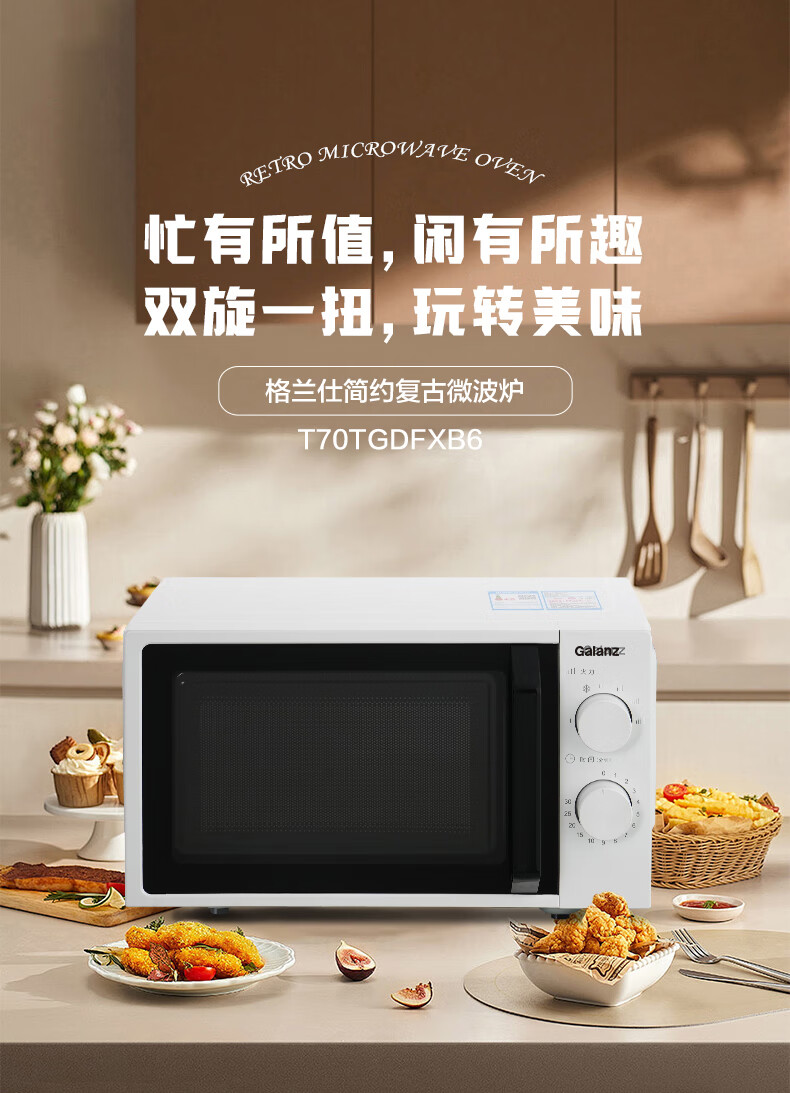 格兰仕(Galanz)经典复古微波炉-T70TGDFXB6 20L容量