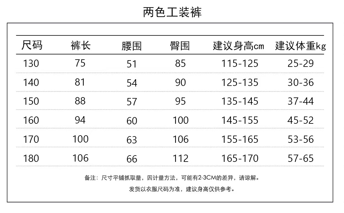 尺码表 130-180码