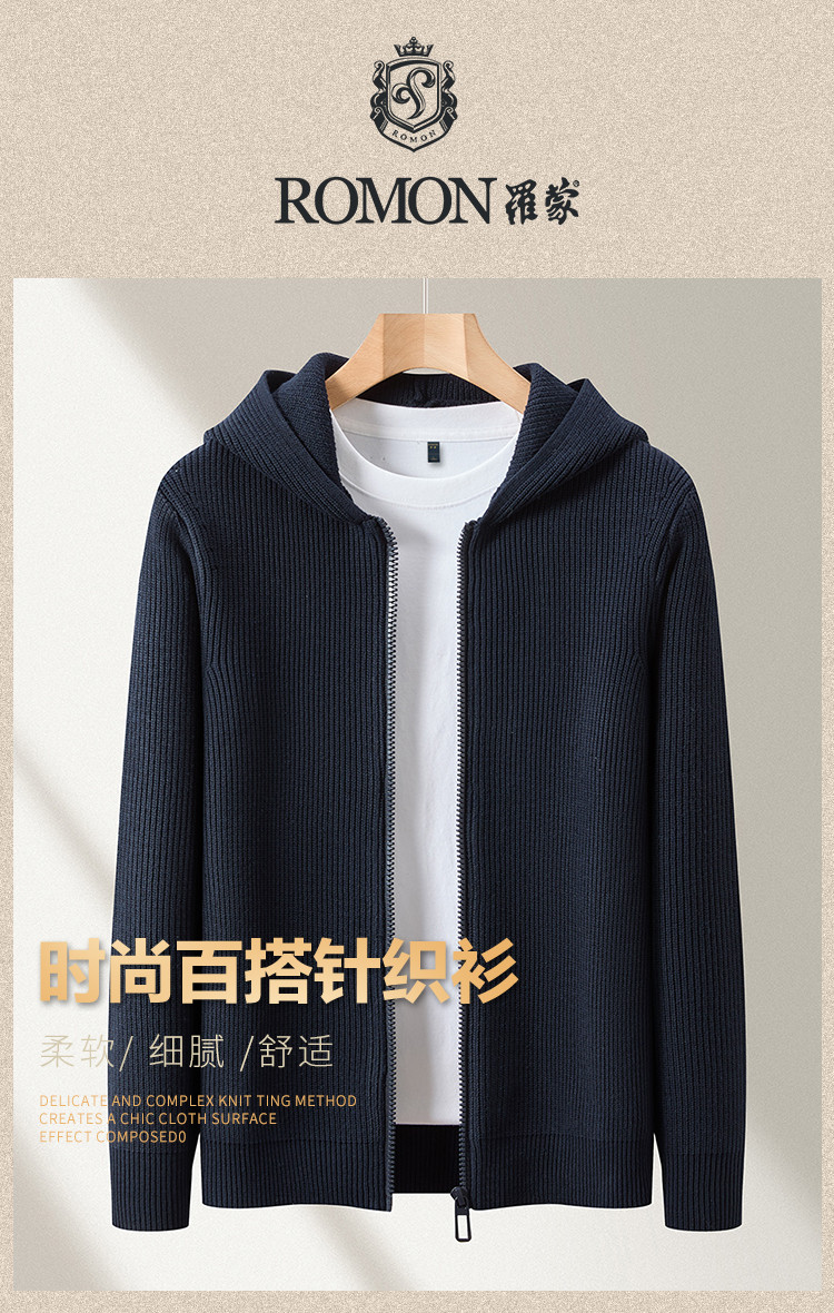 【元宝针】罗蒙经典常青款针织开衫外套毛衣秋冬加厚针织衫男外套