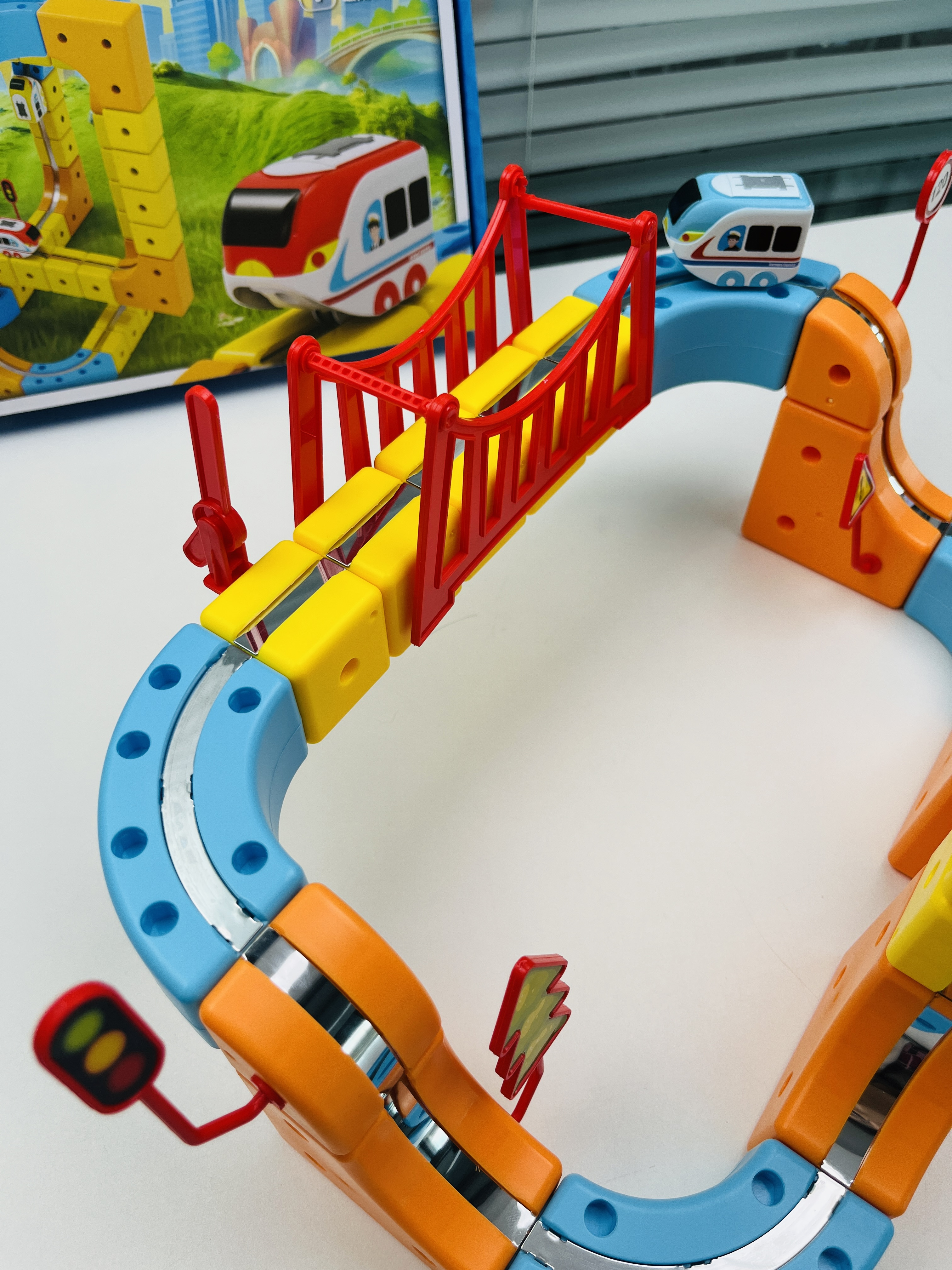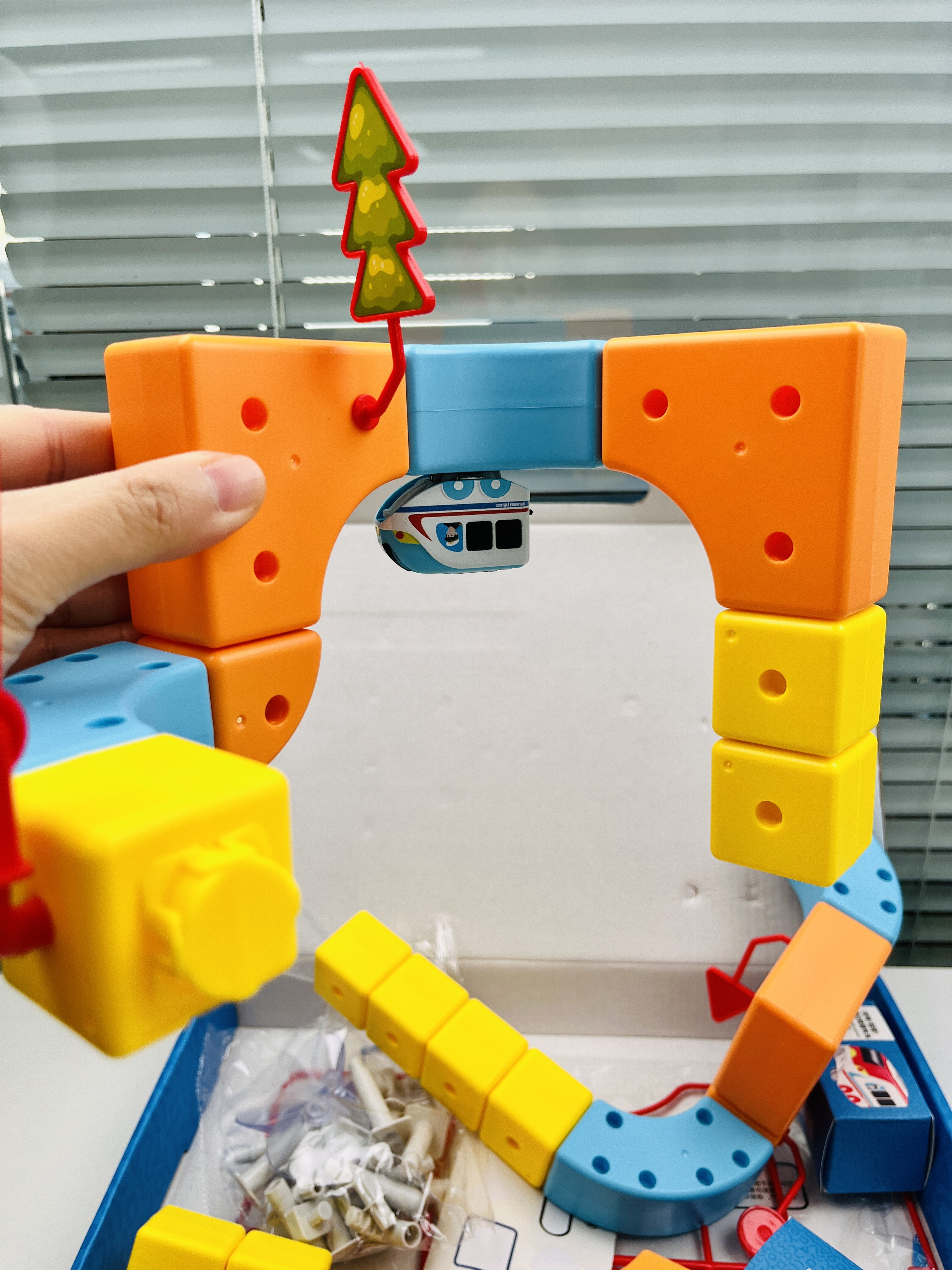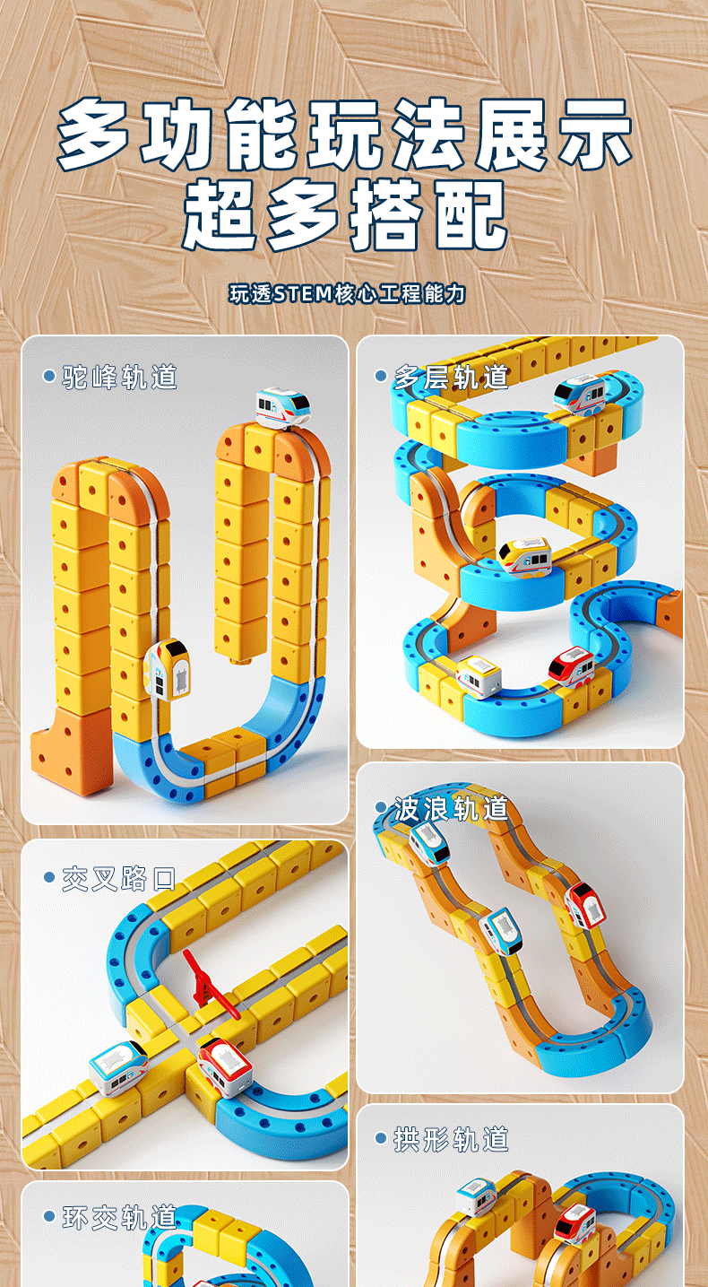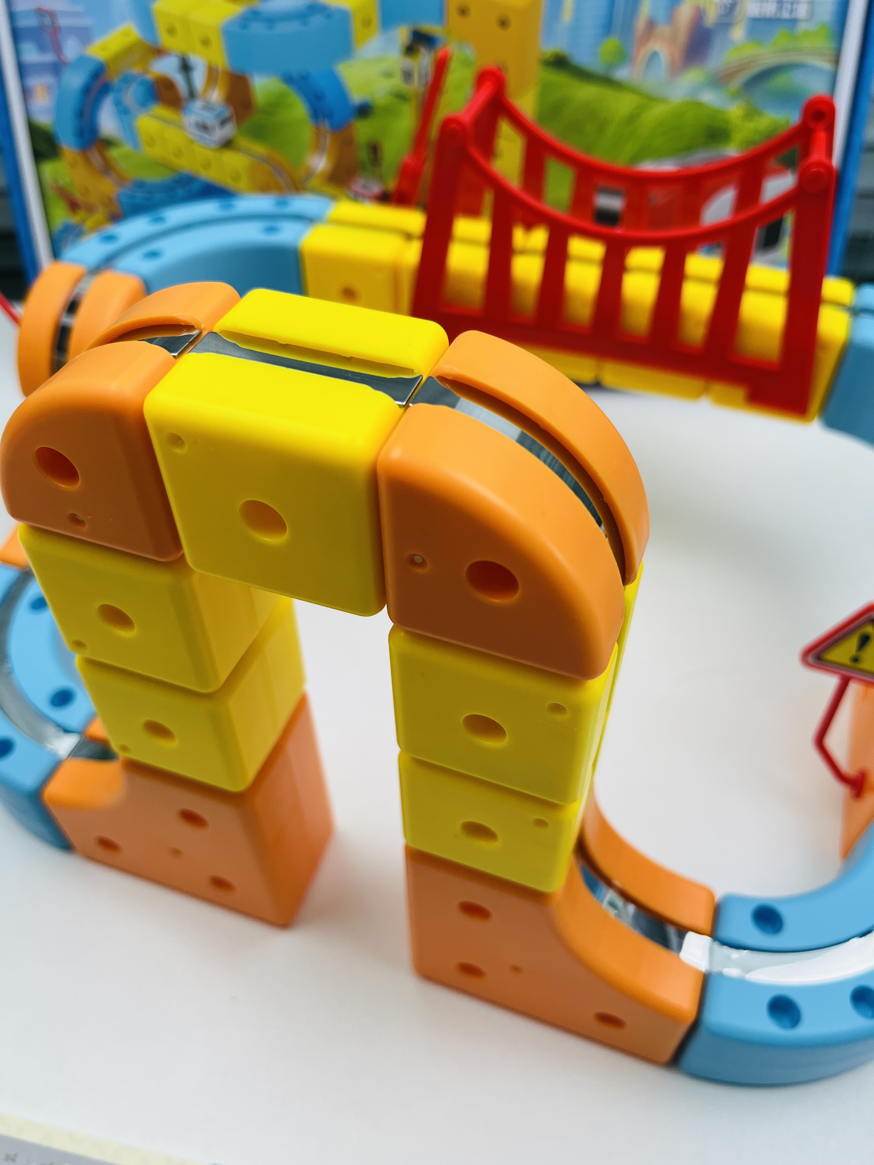 不同的积木轨道形状,🌟能搭出上百种路线,每次都能玩出新鲜感,根本不会腻,🎯不仅动手能力变强,空间思维和立体几何建构能力也有很好的提升