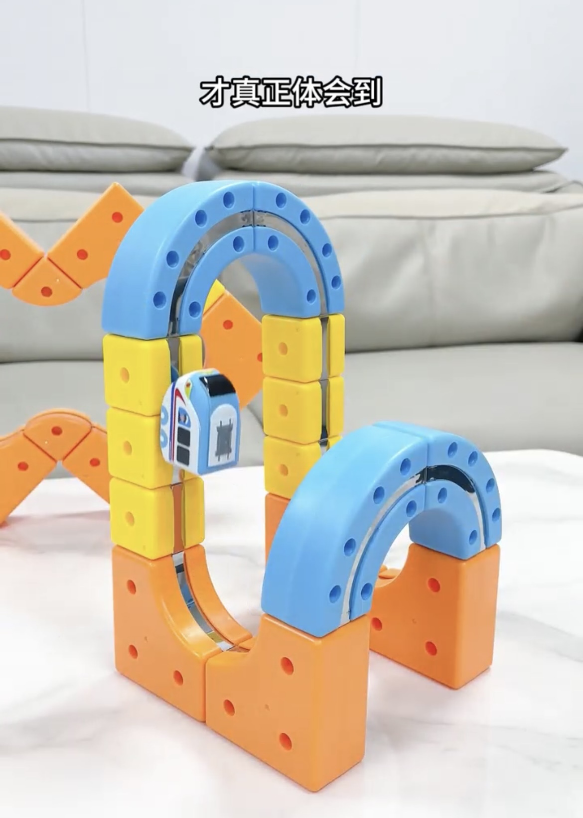 ✅轨道车和磁力积木的结合,非常能让孩子沉浸其中