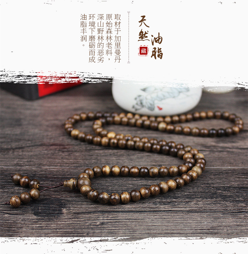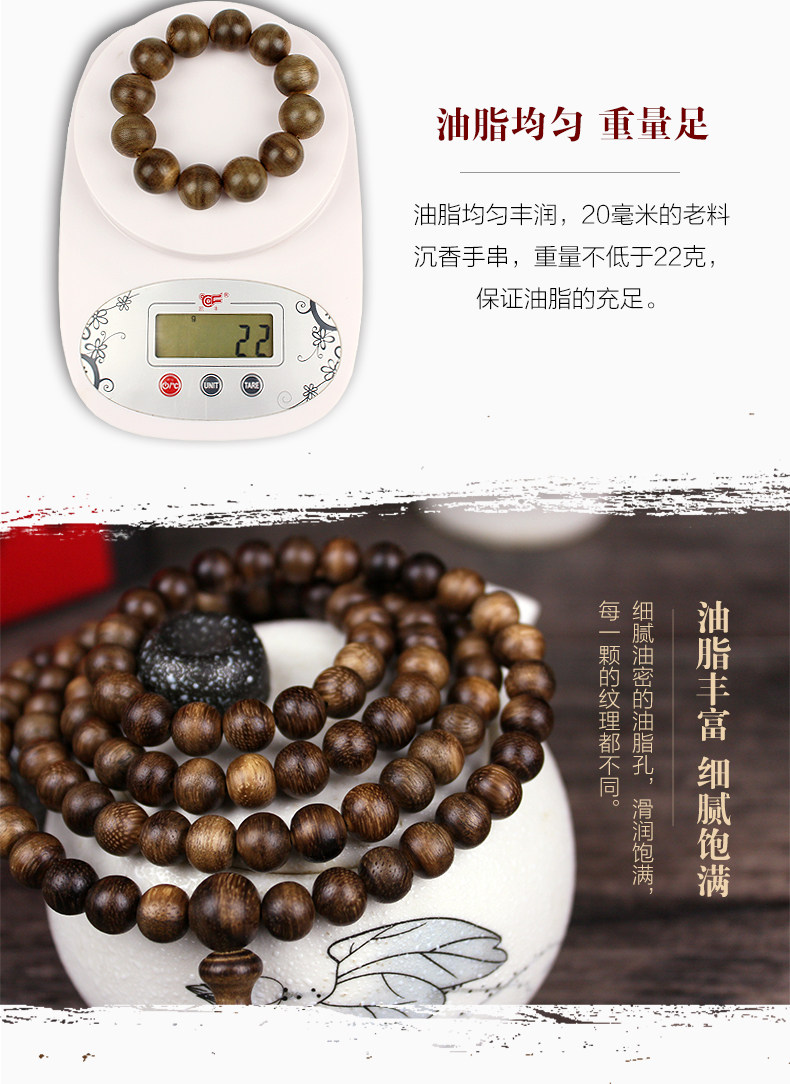 六鑫珠宝 印尼加里曼丹沉香108颗佛珠手串 天然老料 香味优雅 克数高 油脂饱满