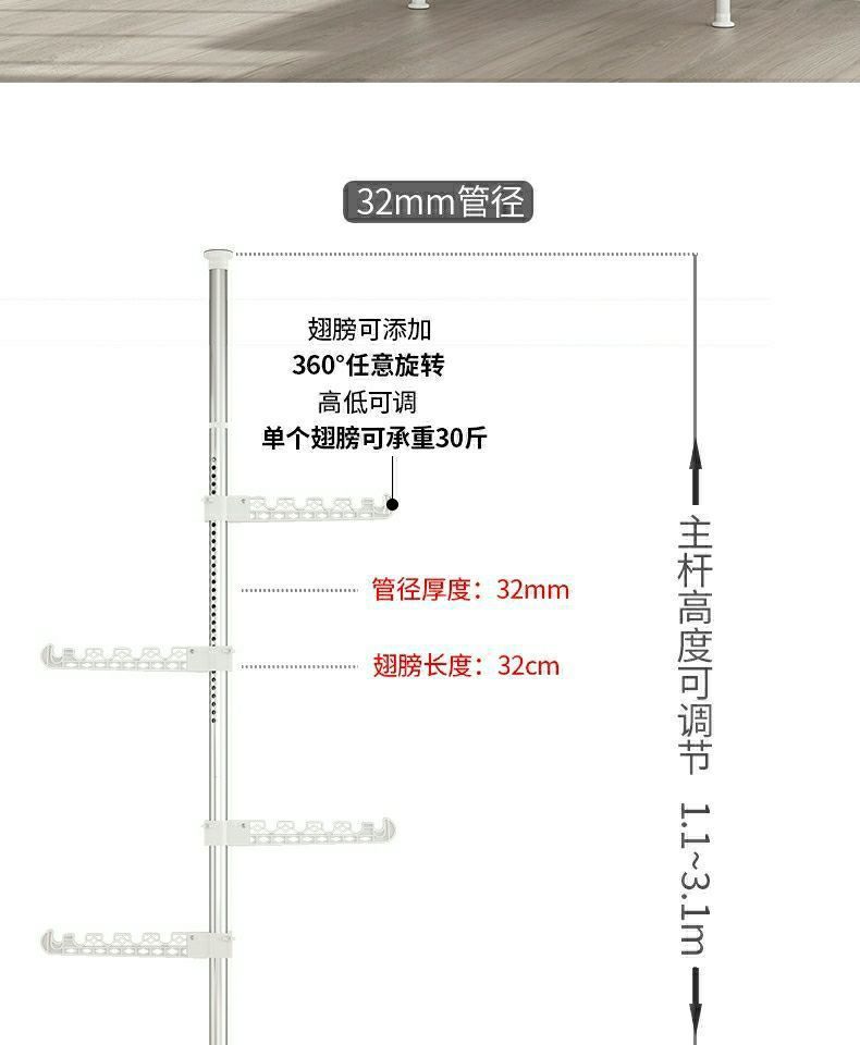 顶天立地挂衣架晾衣架衣服挂架落地卧室立式衣架挂免打孔晾衣杆