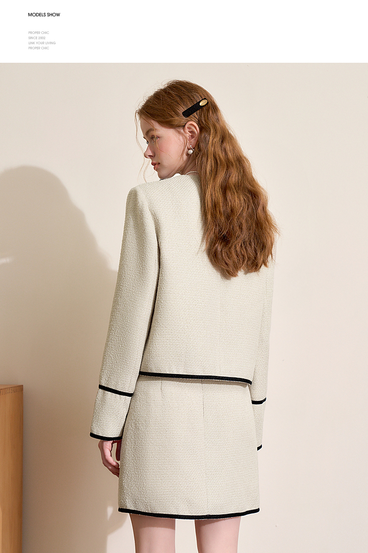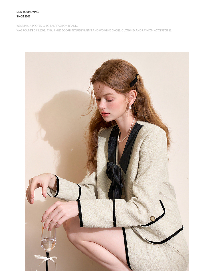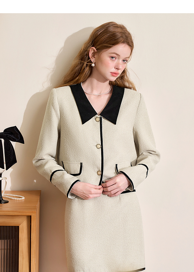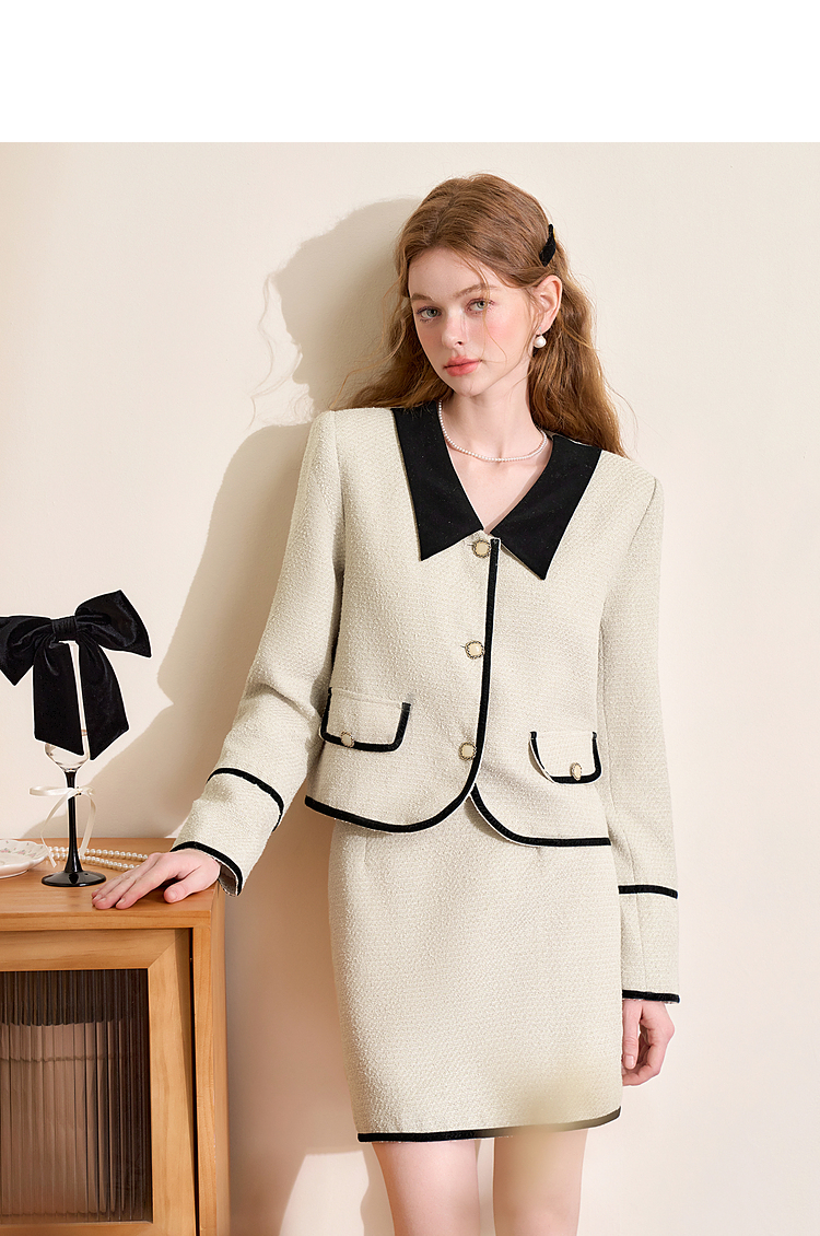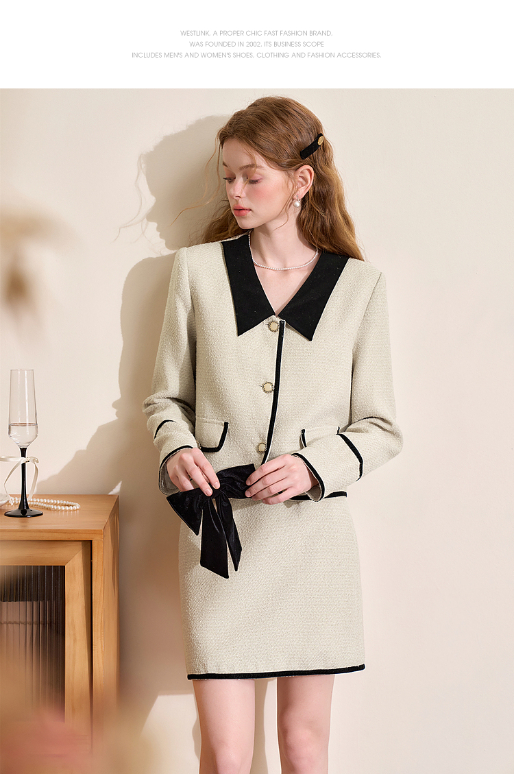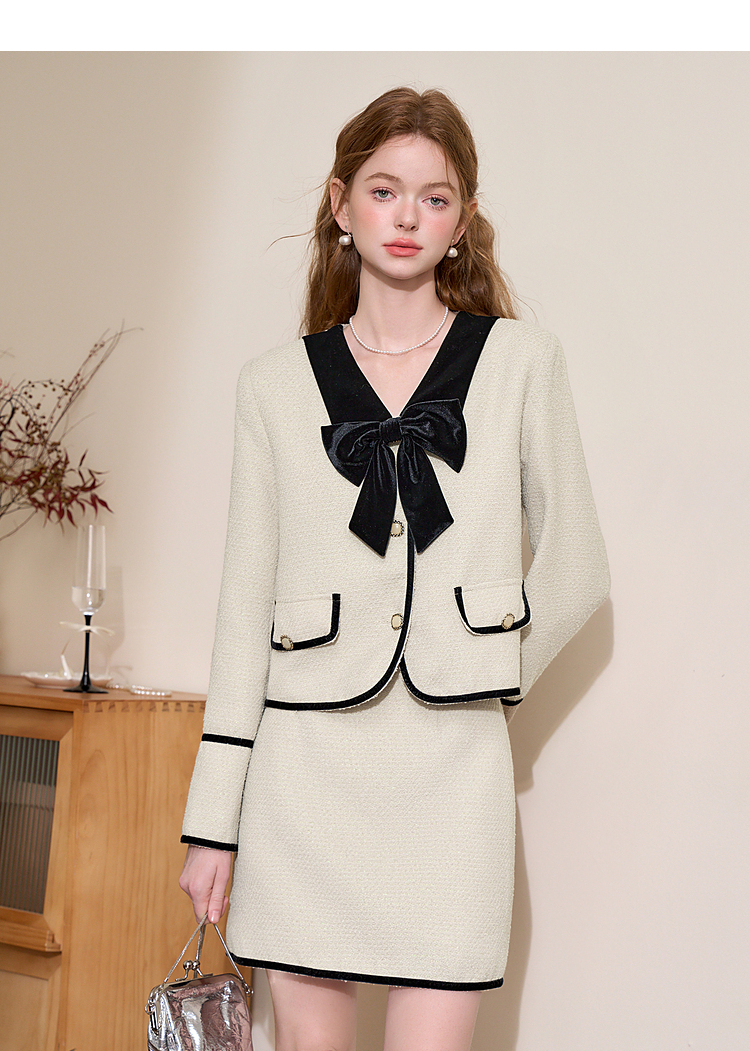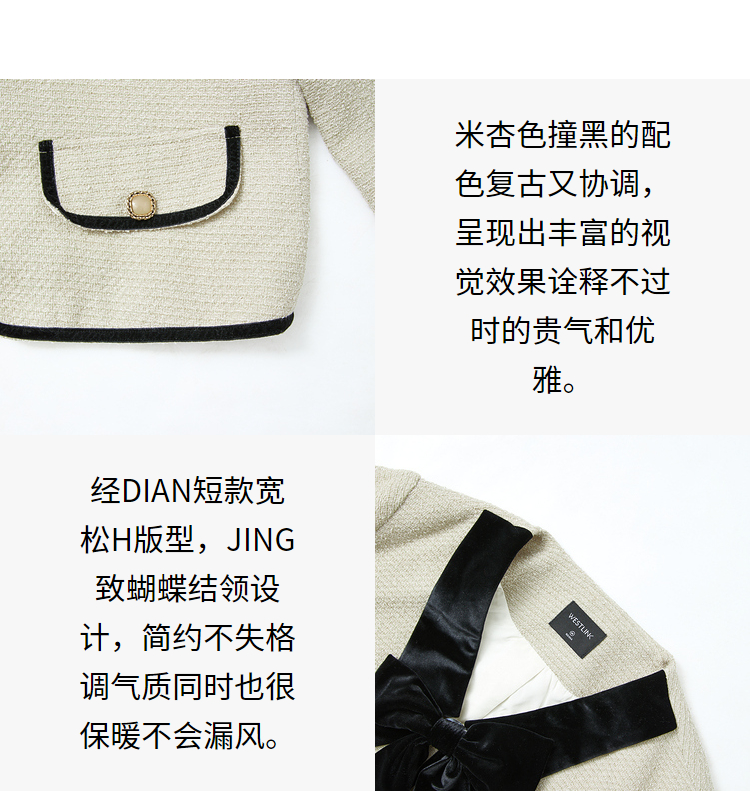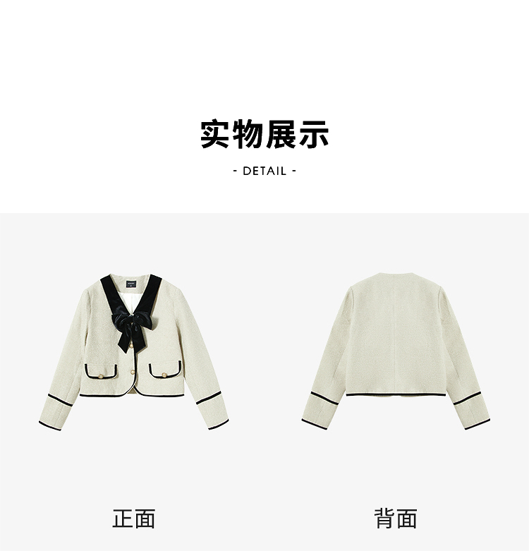 西遇短款小香风外套女新款小香风撞色蝴蝶结领上衣D3742631