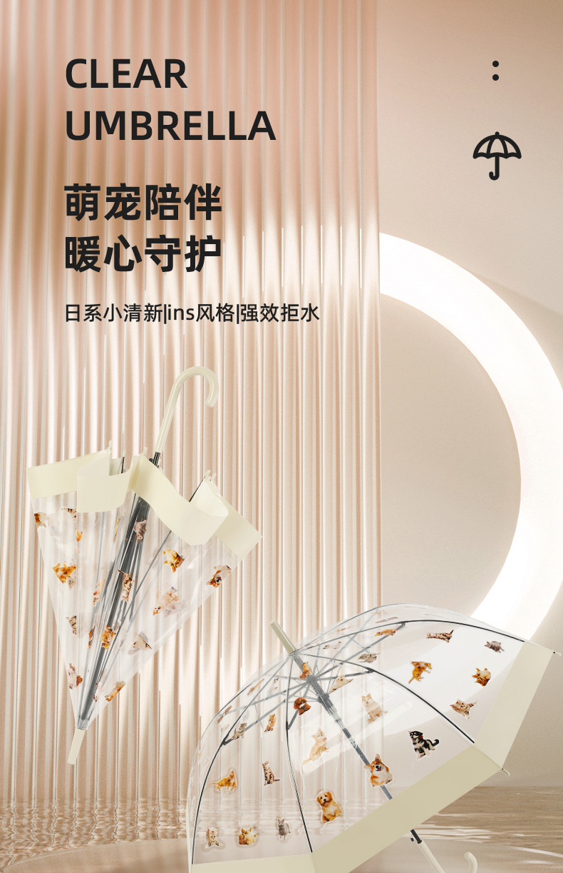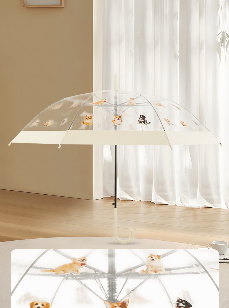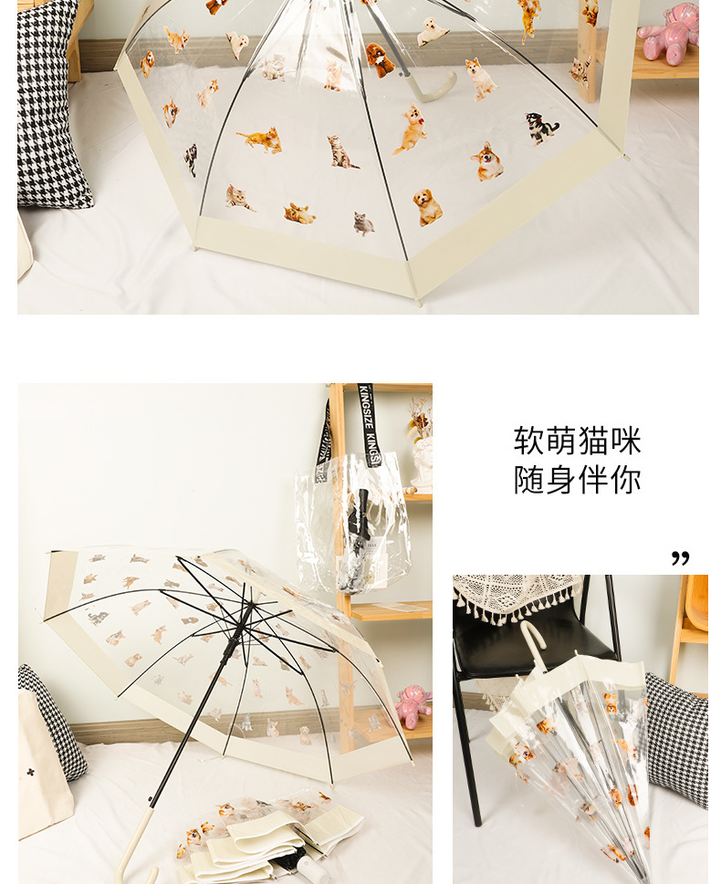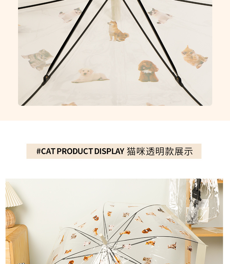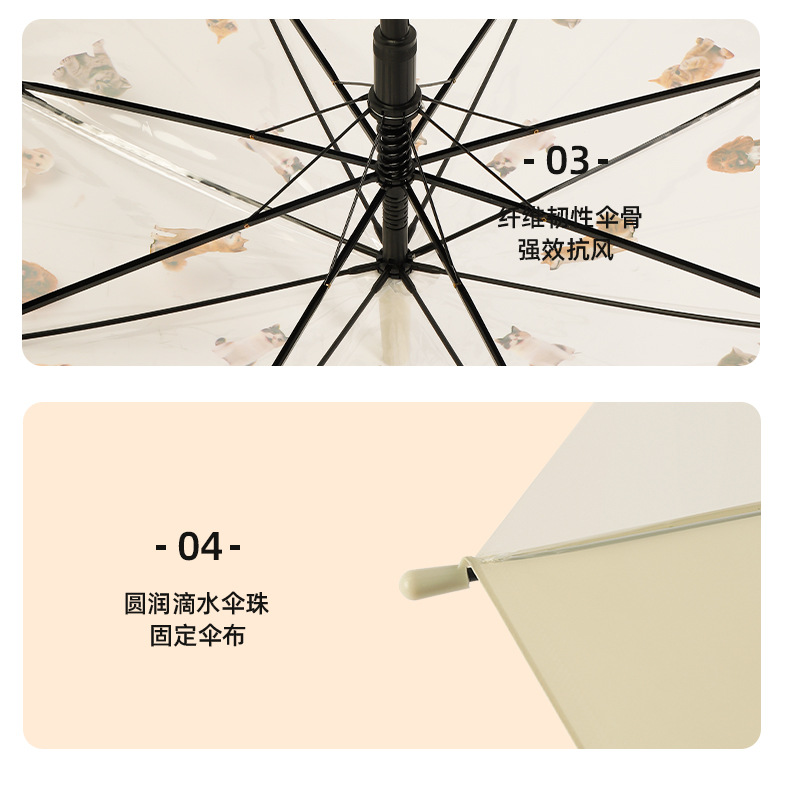 【萌宠陪伴!暖心守护】猫狗图案雨伞,强效拒水,全新视野,长久耐用。遇水360°遮挡,半自动开关,耐用双人携手、雨中便捷。现代时尚达人生活必备!