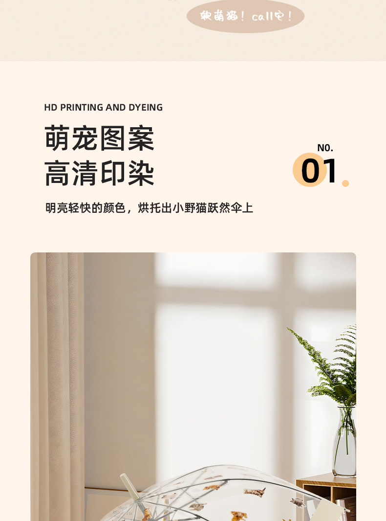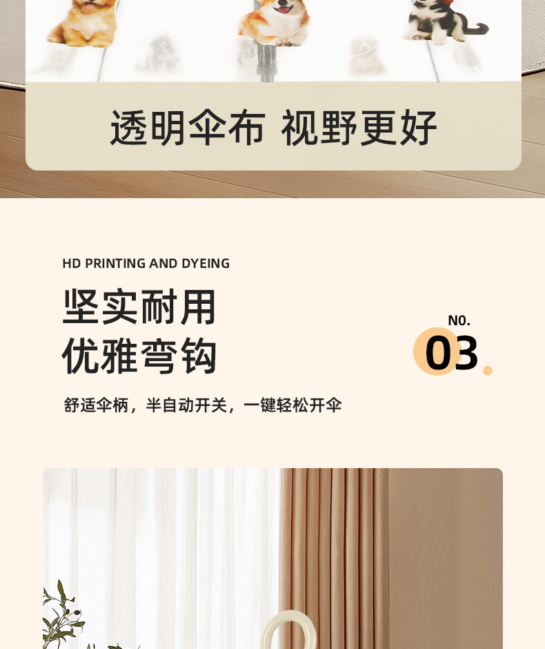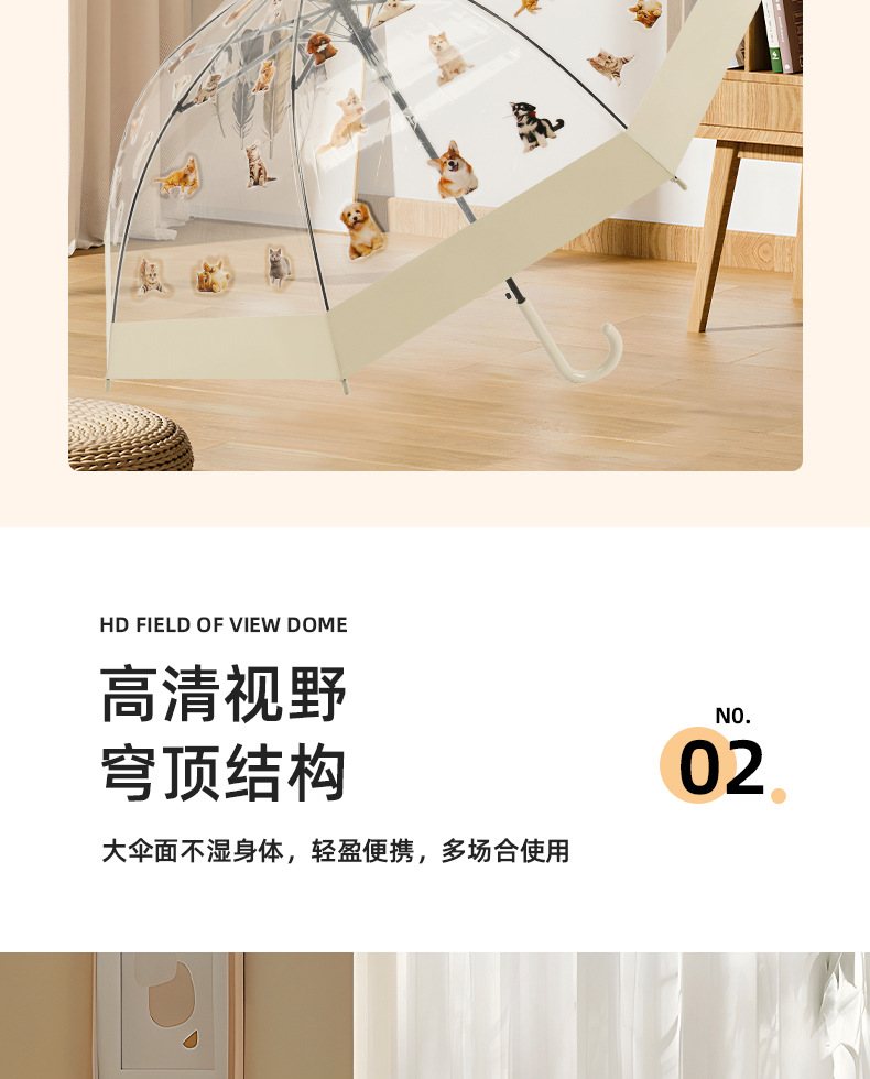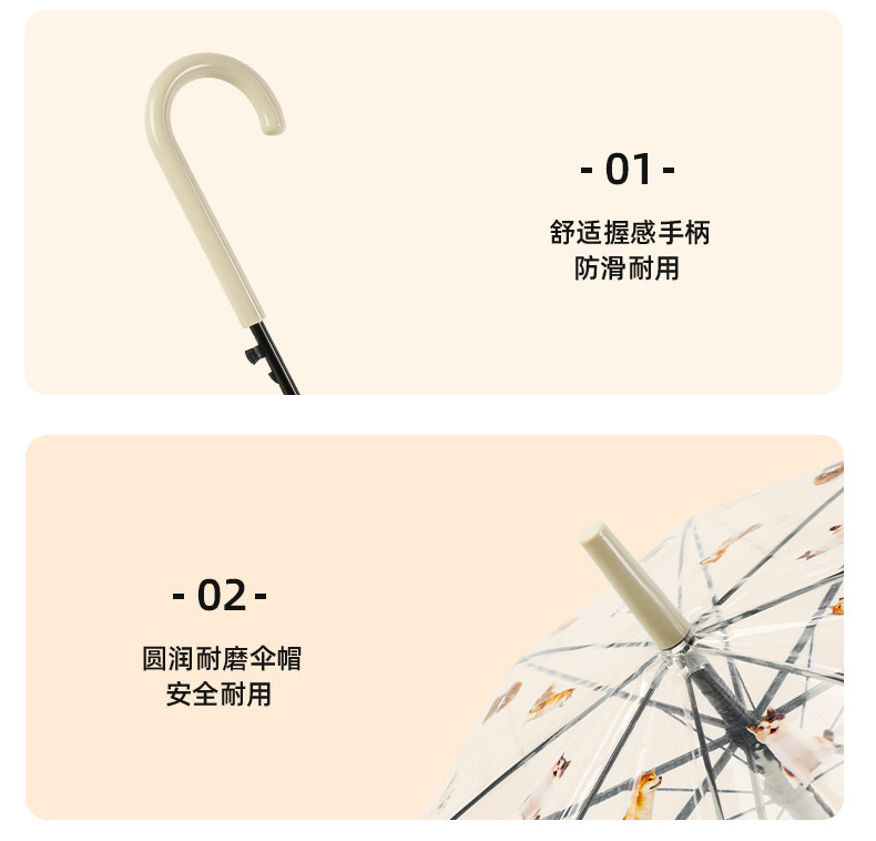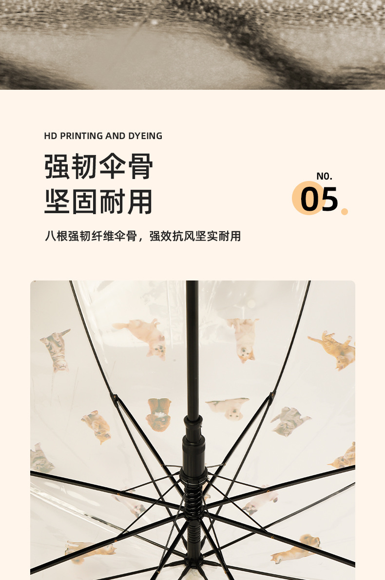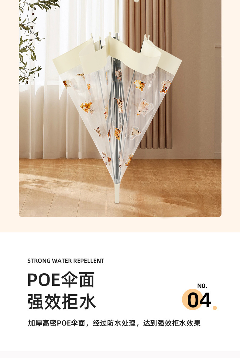 【萌宠陪伴!暖心守护】猫狗图案雨伞,强效拒水,全新视野,长久耐用。遇水360°遮挡,半自动开关,耐用双人携手、雨中便捷。现代时尚达人生活必备!