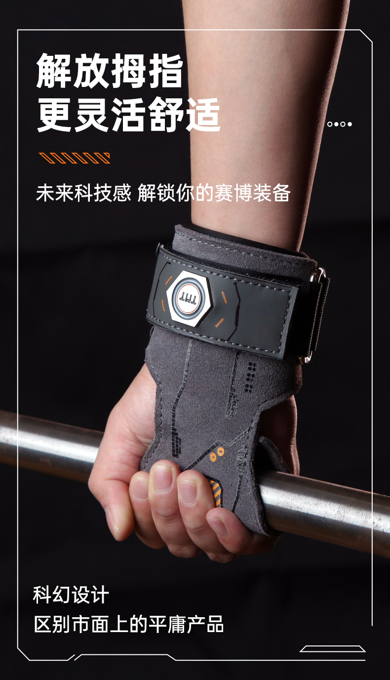 TMT机甲风助力带硬拉牛皮护掌护腕握力带