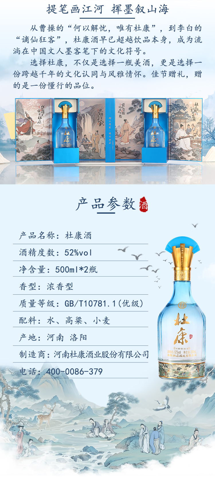 【新春礼盒】杜康文人墨客礼盒52度500ml2瓶礼盒装