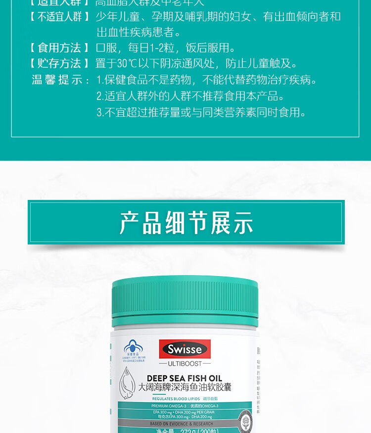 Swisse斯维诗 深海鱼油胶囊200粒
