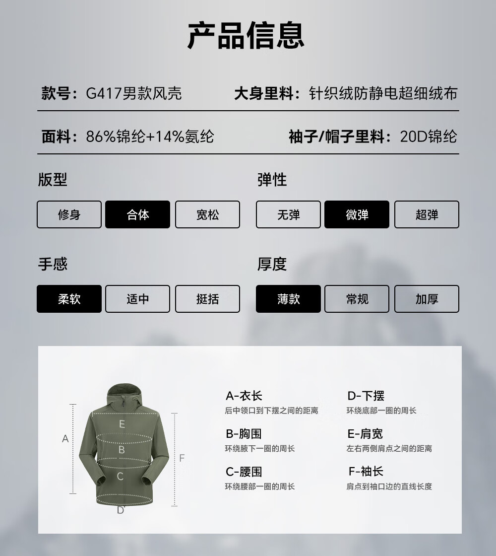 天石鹅铠甲男款连帽户外徒步防风衣运动风衣夹克G417