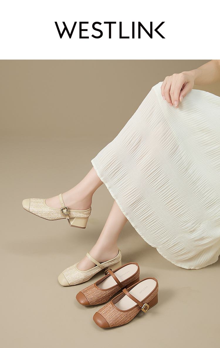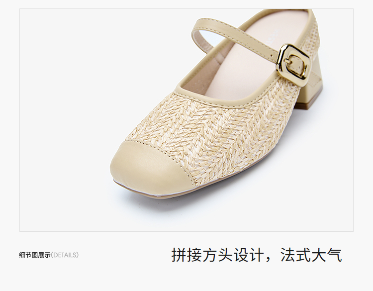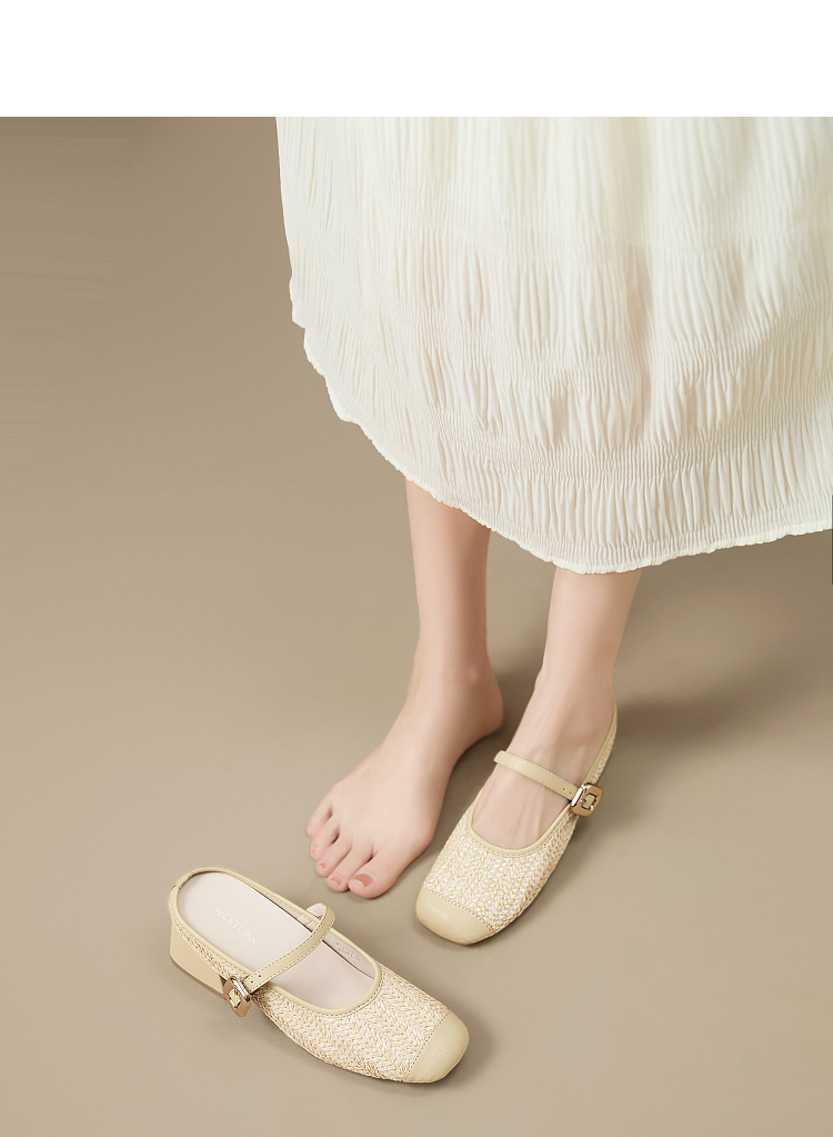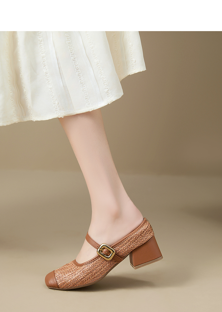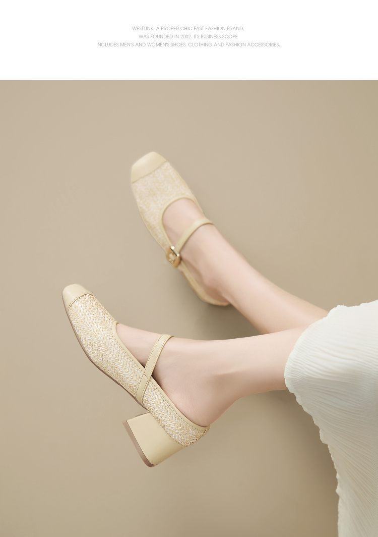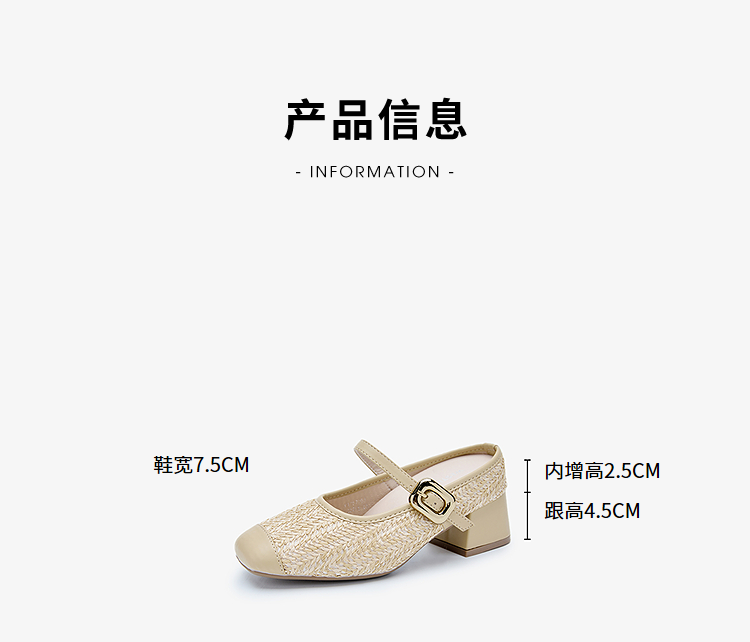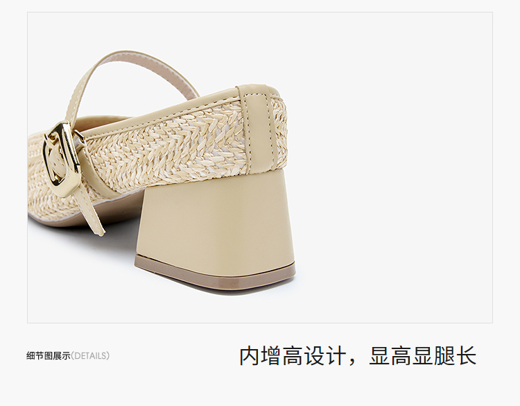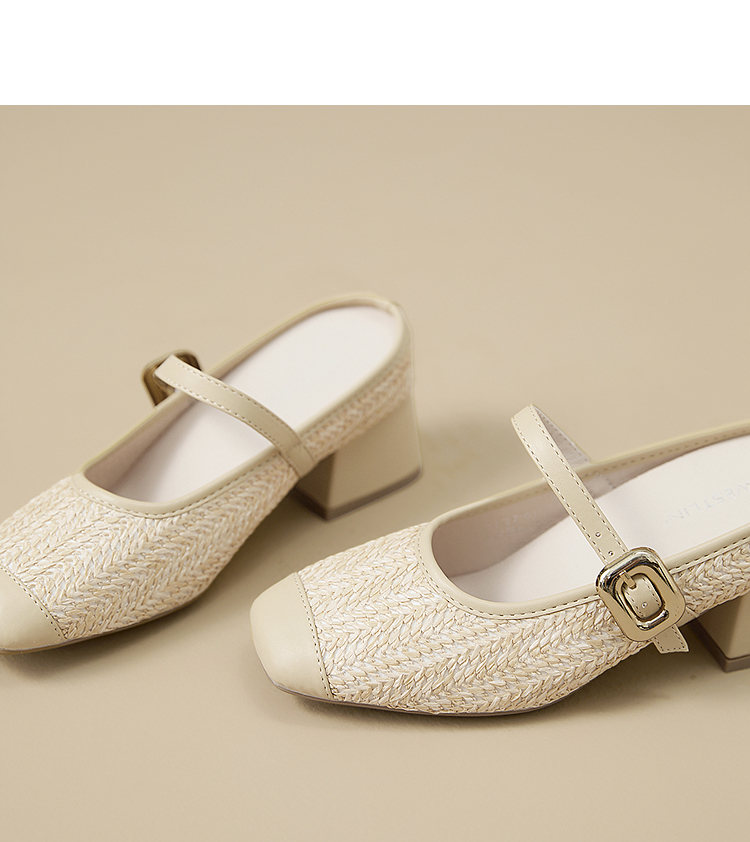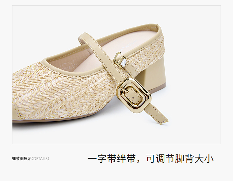 西遇半拖鞋女外穿新款秋季法式编织一字带内增高方头粗跟单鞋V1757003