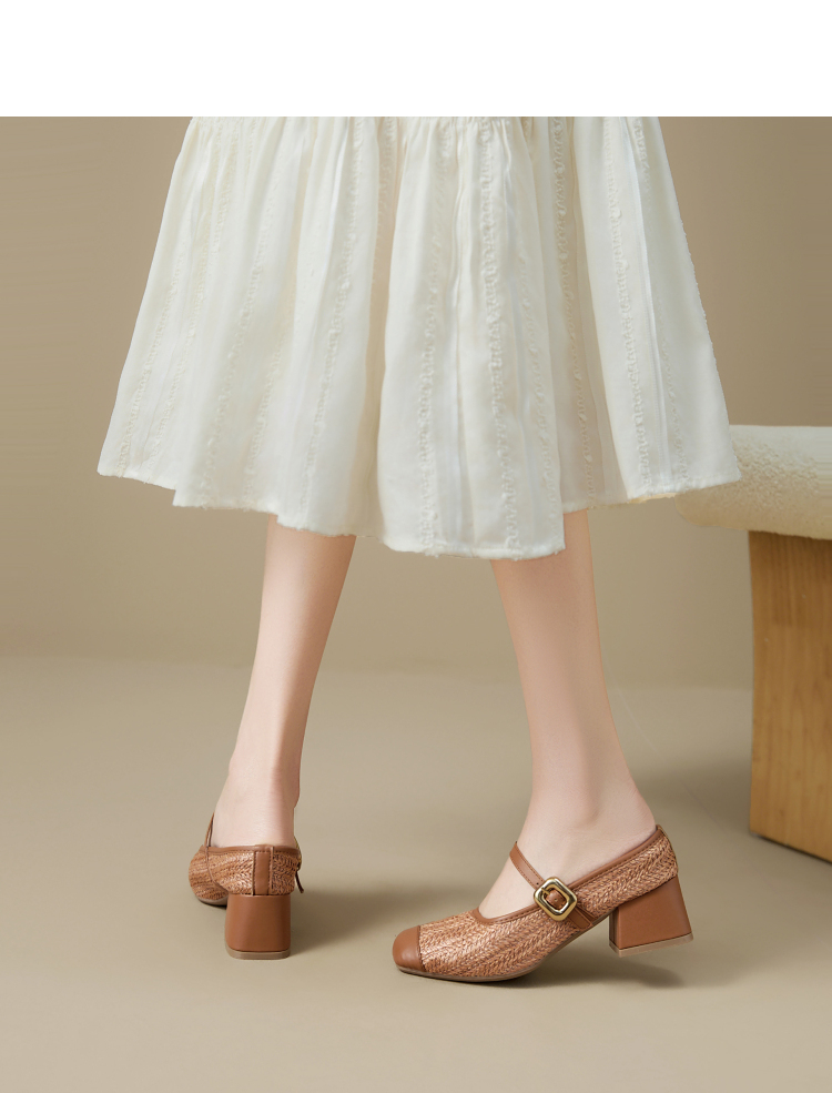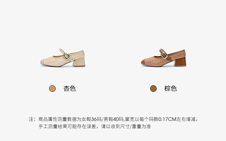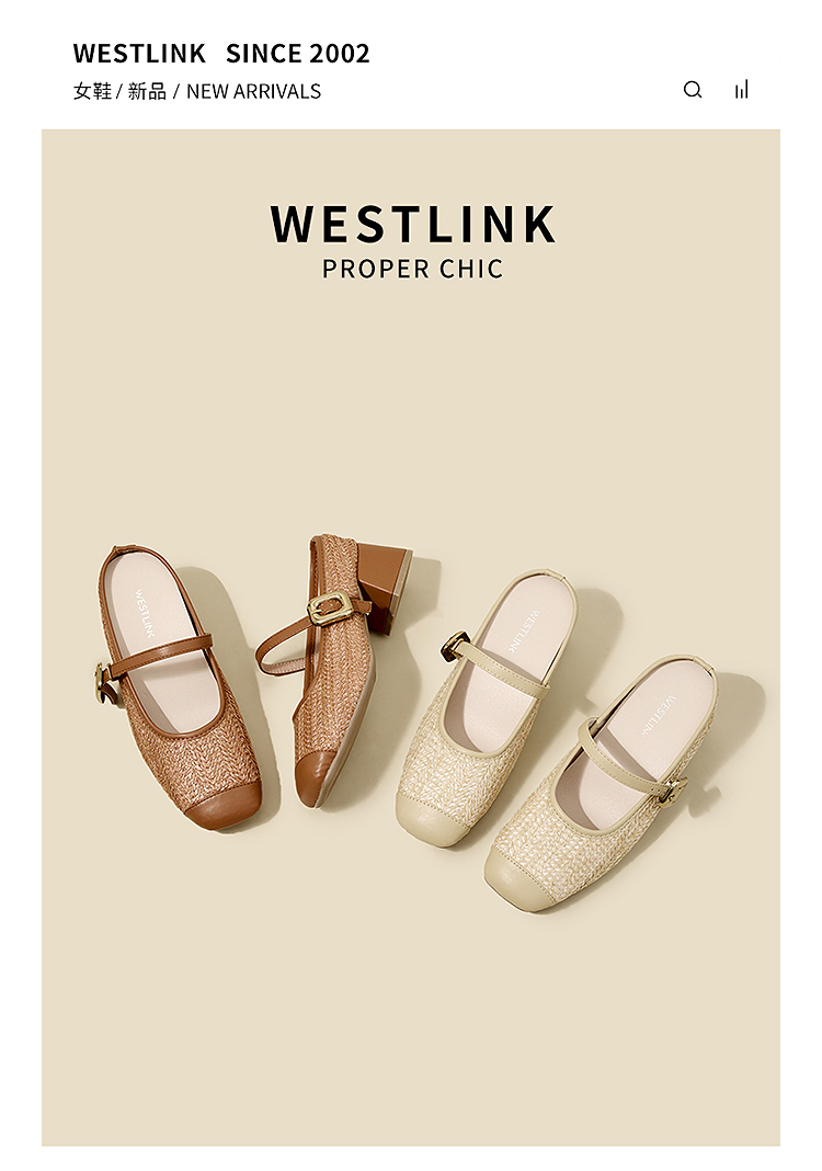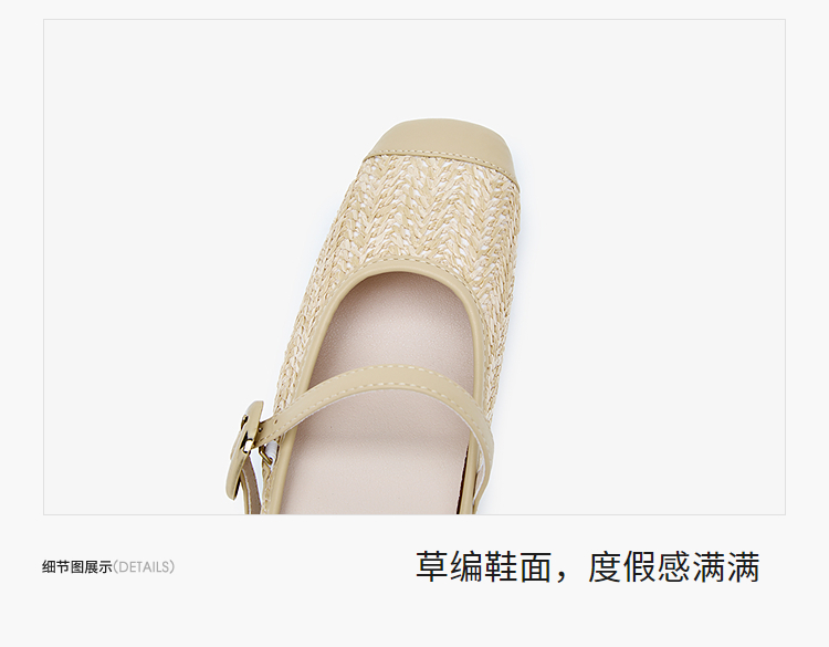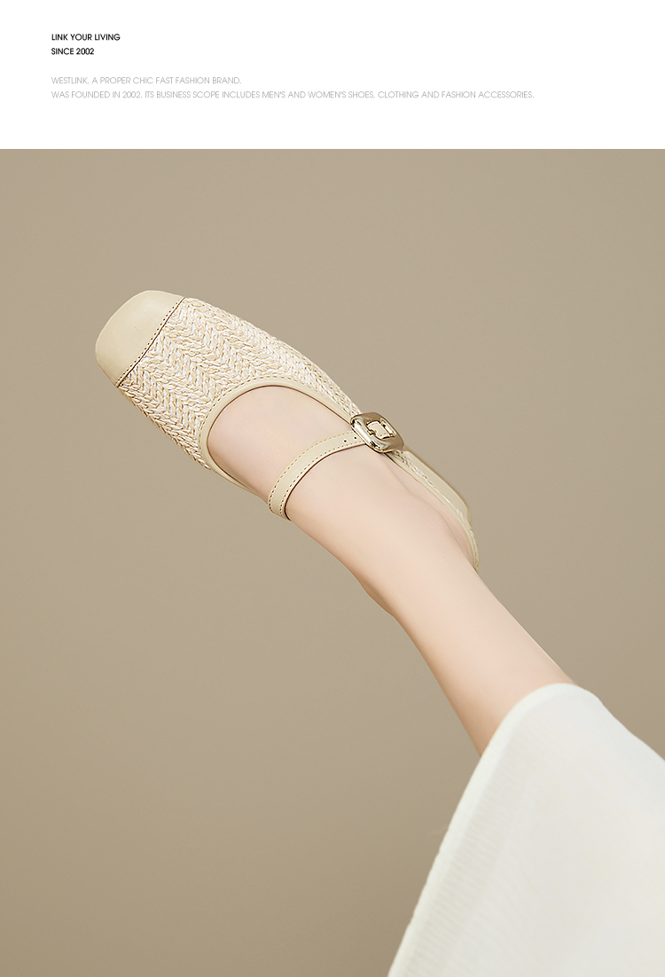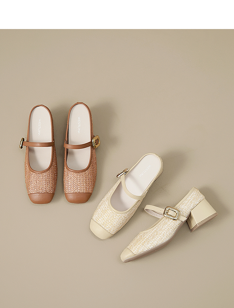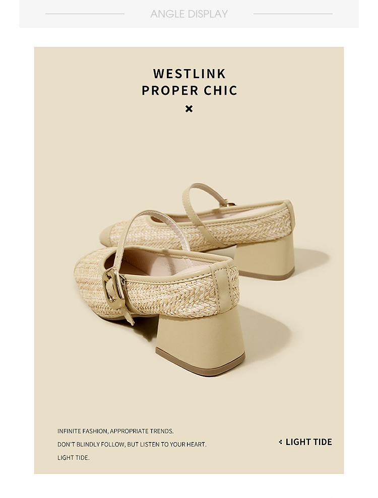 西遇半拖鞋女外穿新款秋季法式编织一字带内增高方头粗跟单鞋V1757003