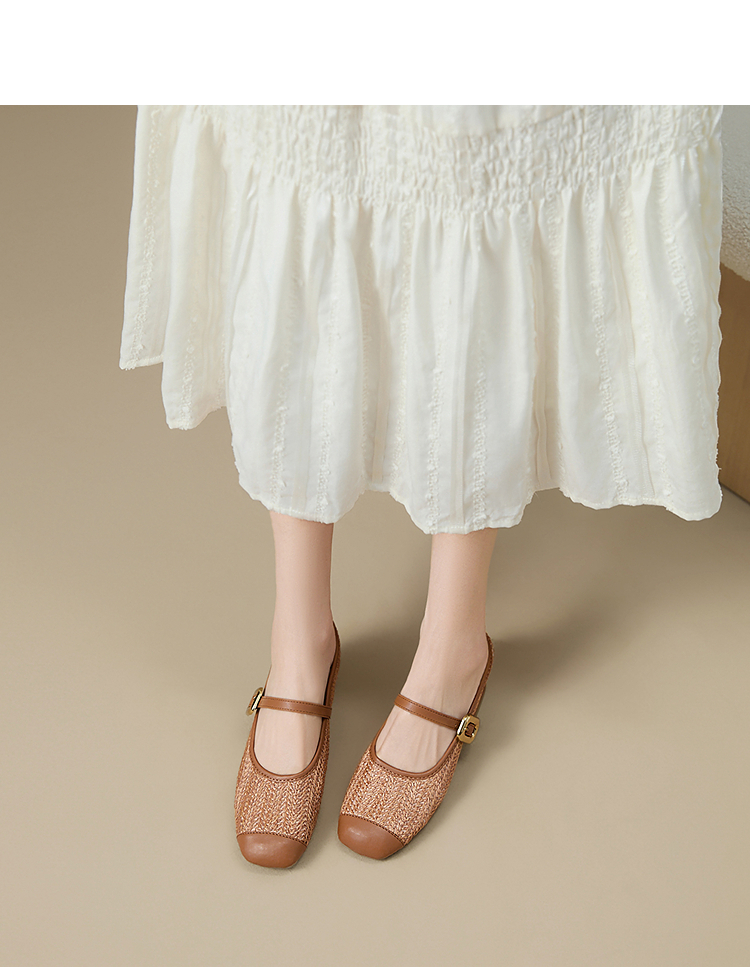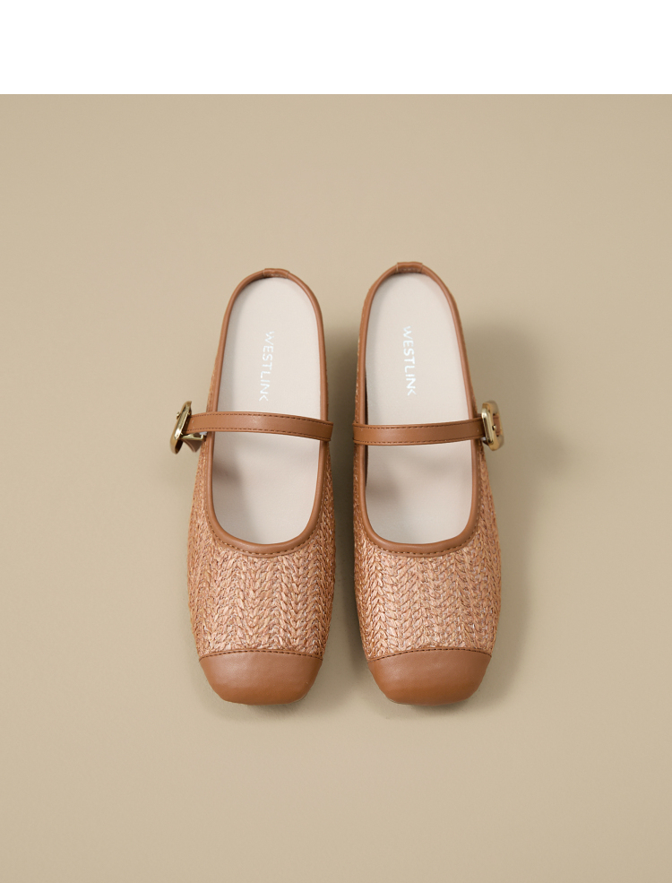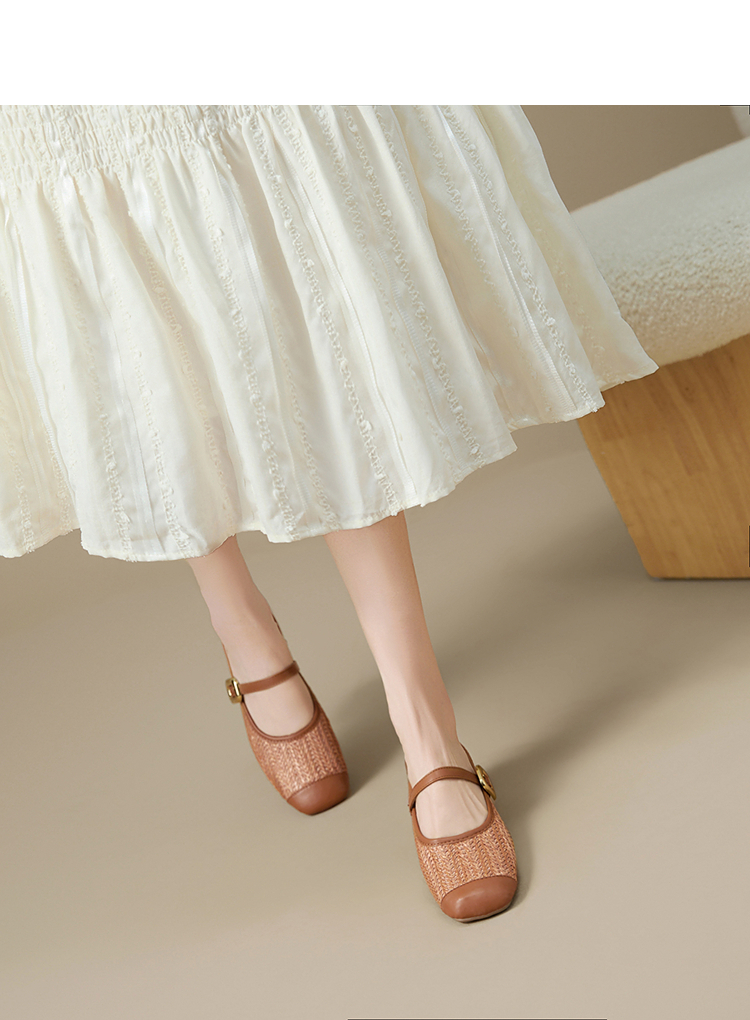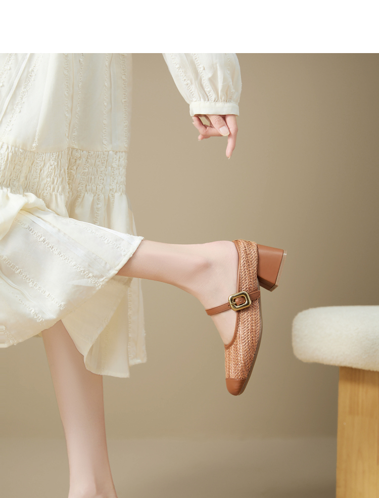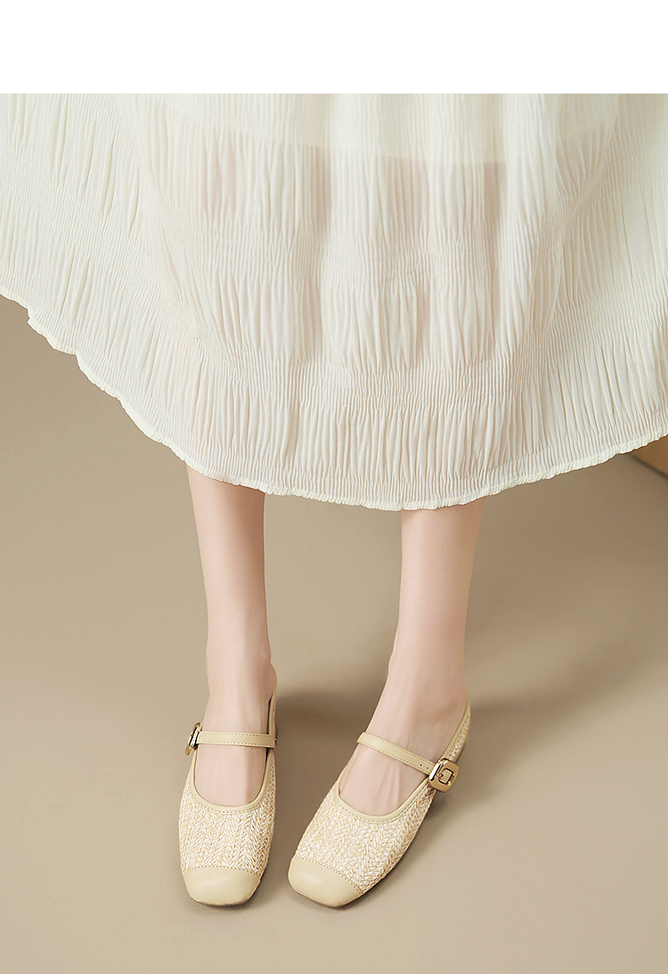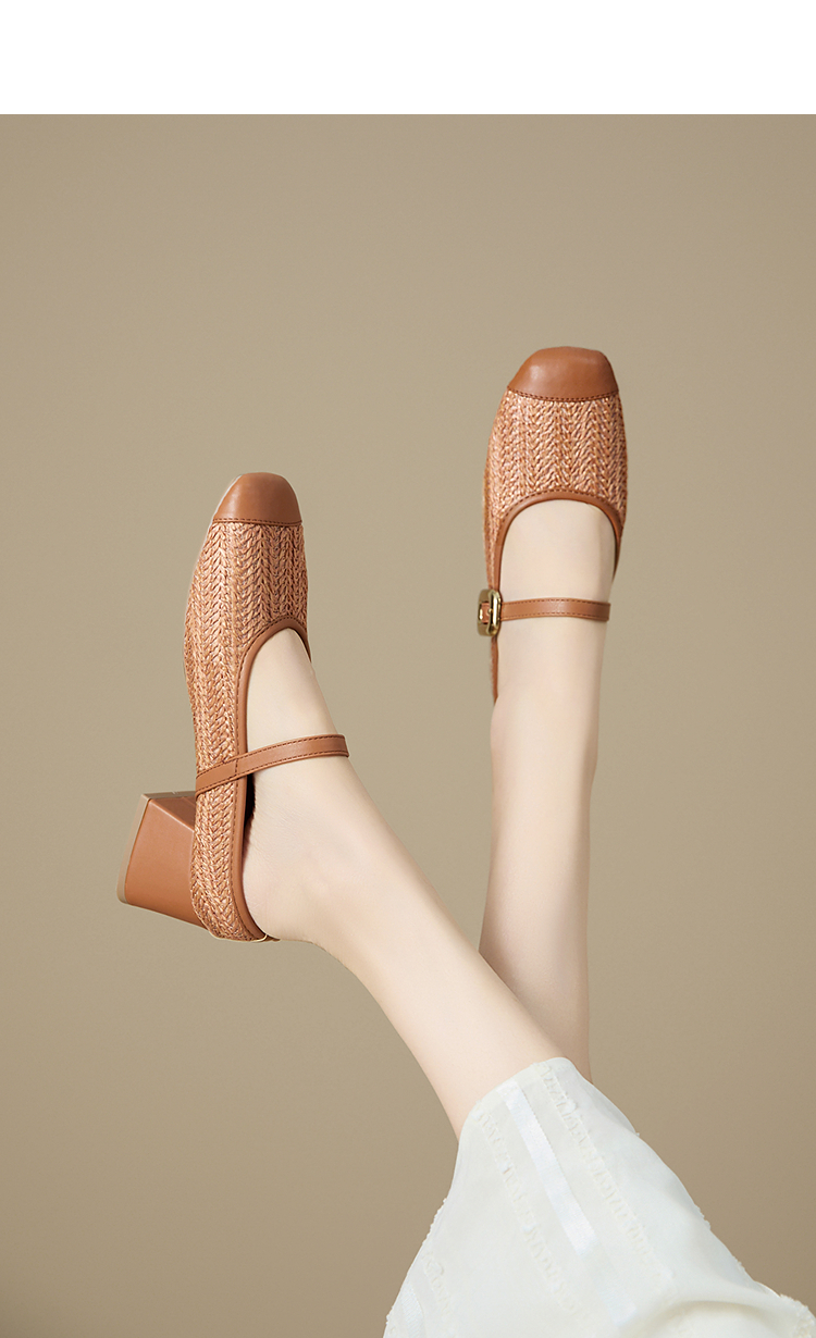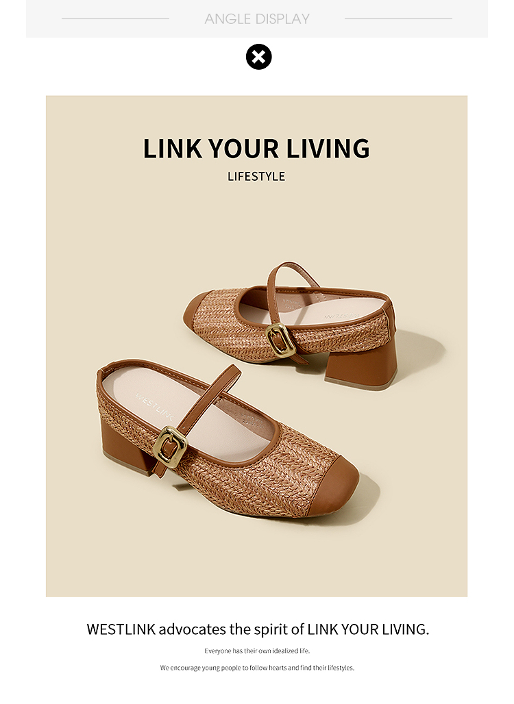 西遇半拖鞋女外穿新款秋季法式编织一字带内增高方头粗跟单鞋V1757003