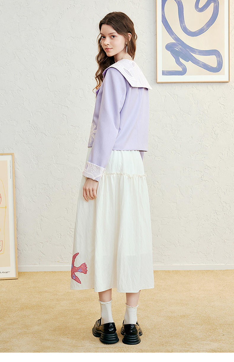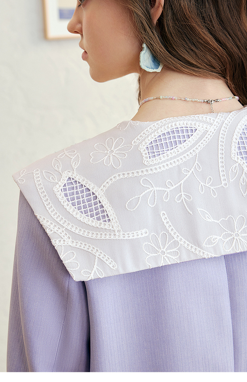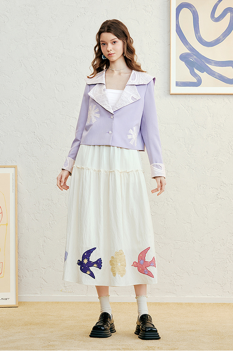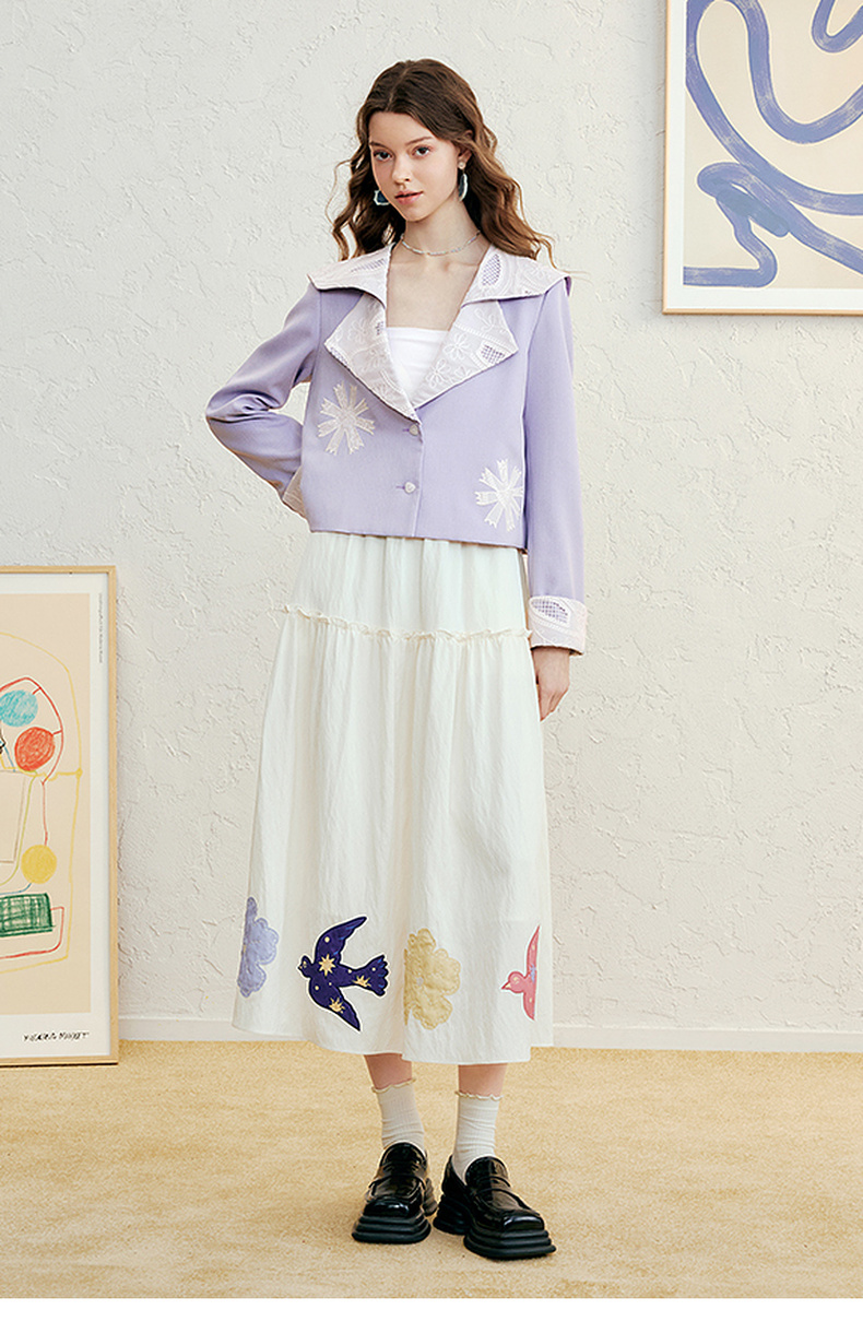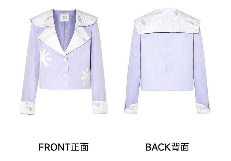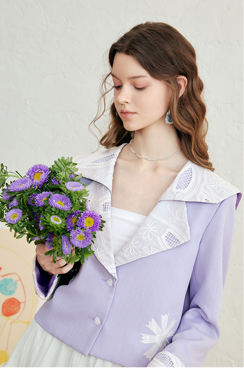 两三事 轻描生趣 2025春季新款小清新蕾丝拼接西装外套女短款