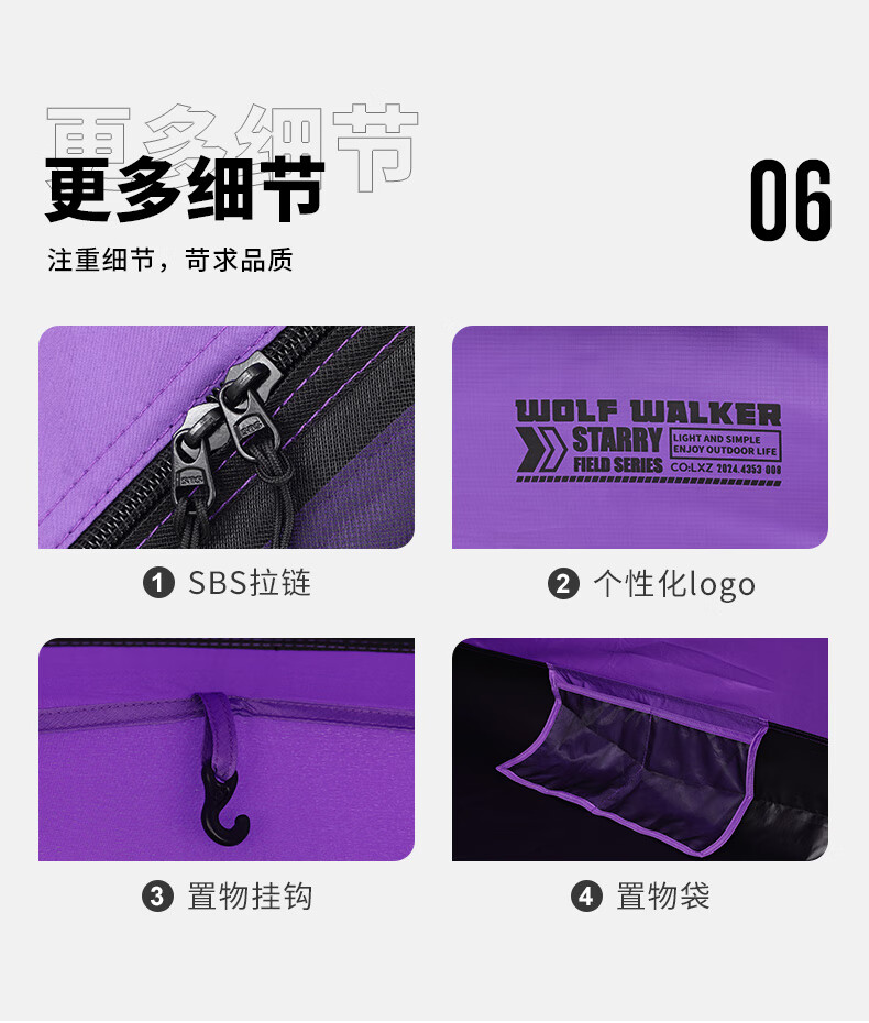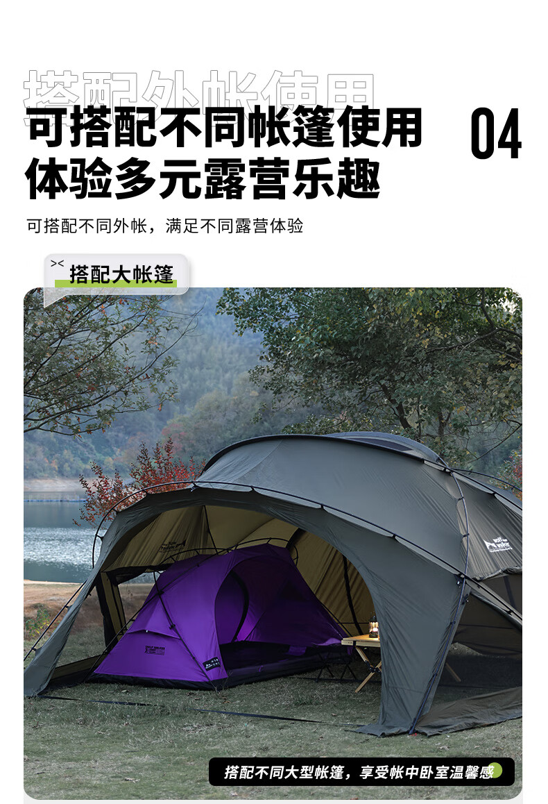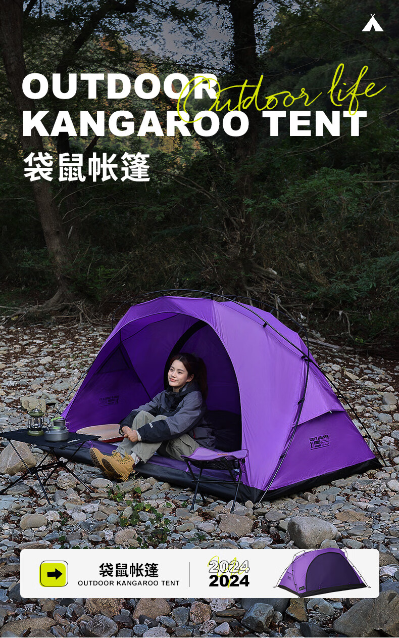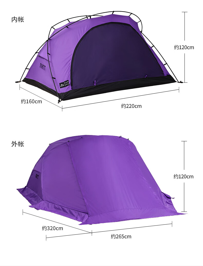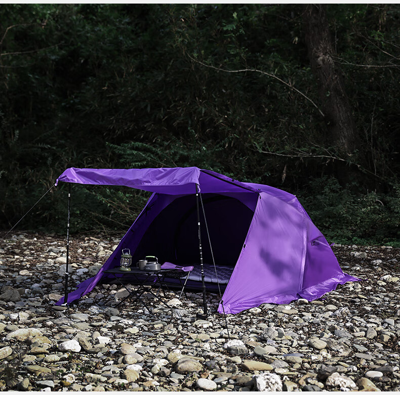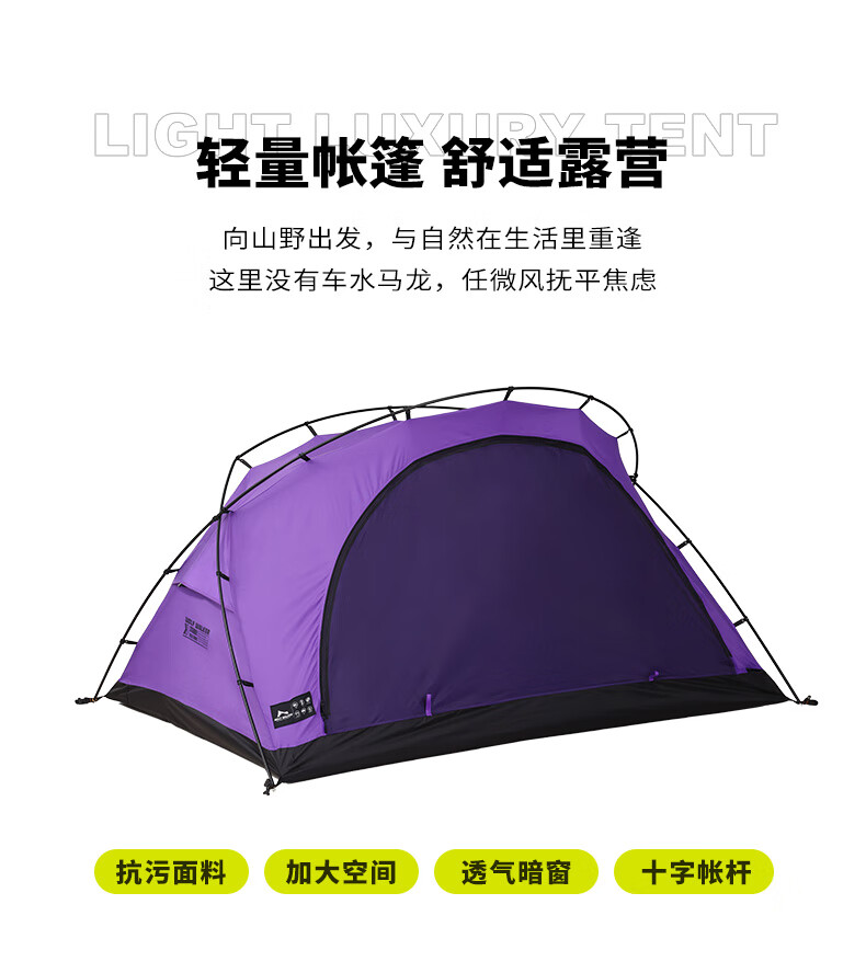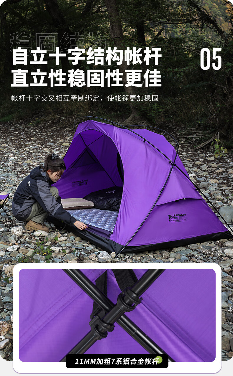狼行者袋鼠双人双层帐蓬户外徒步庇护所特氟龙格子布铝杆帐篷睡帐 紫色