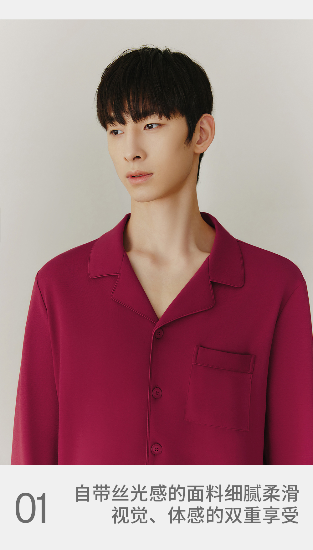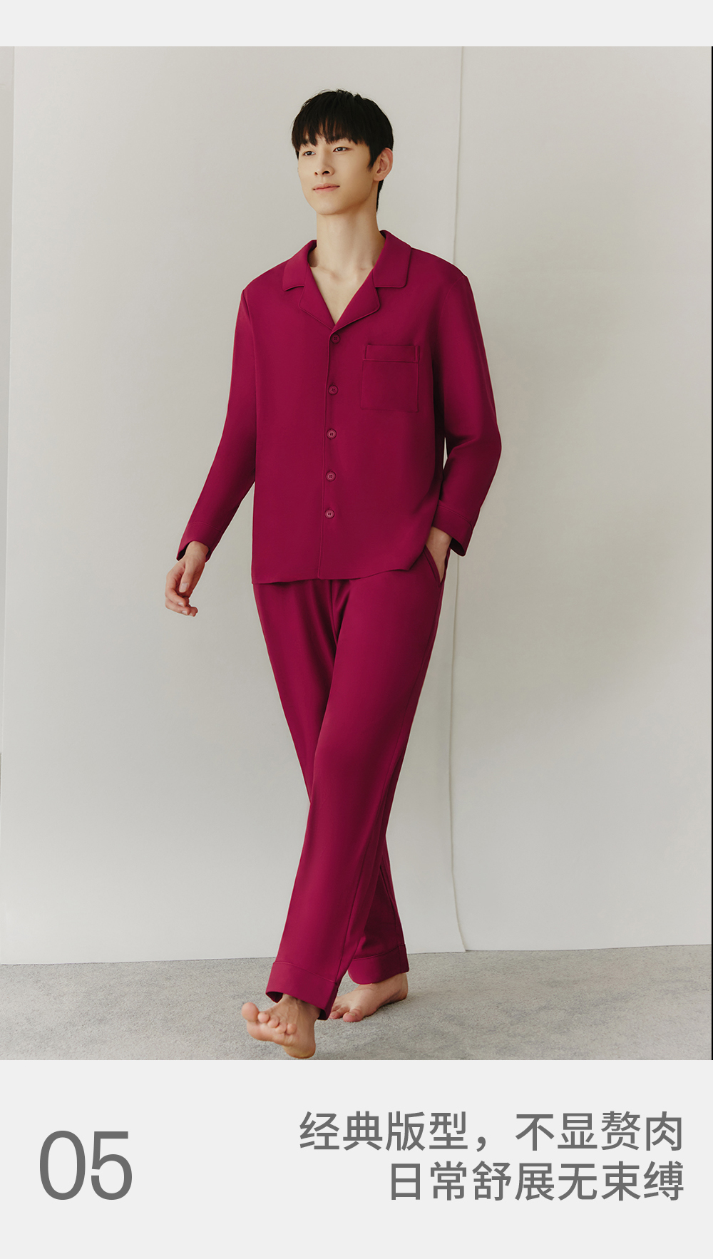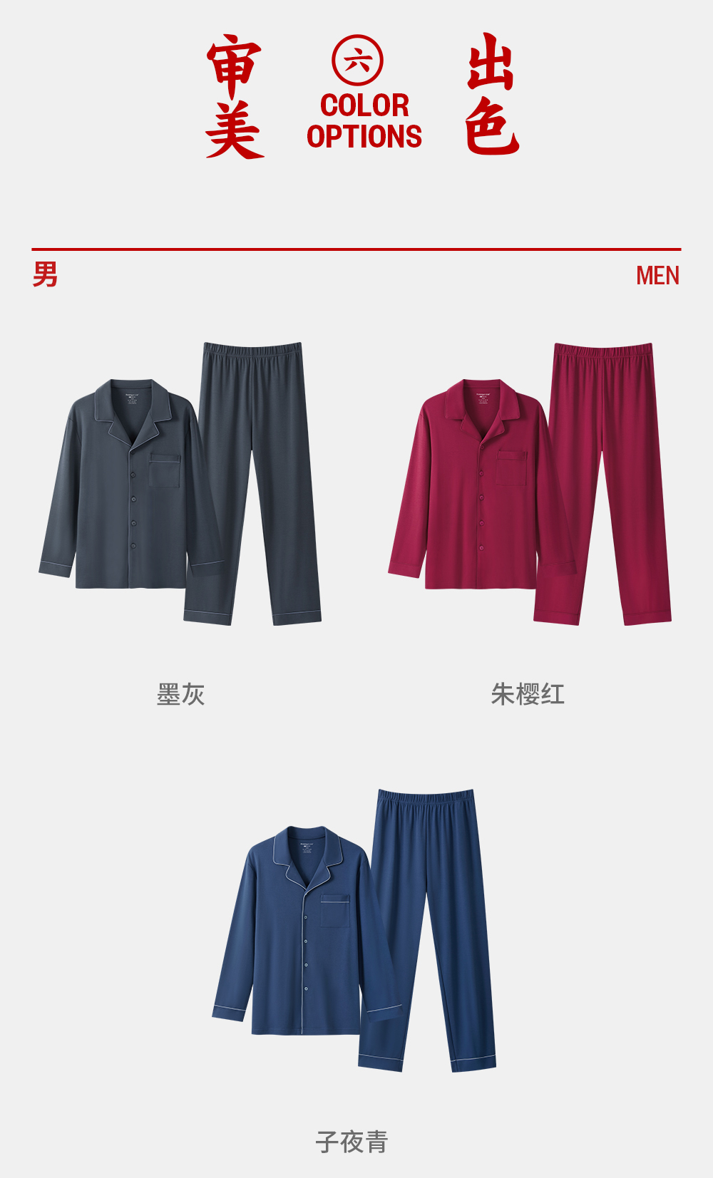 Threegun三枪 【丝感棉】翻领开襟长袖长裤男士家居套家居服-82219D011