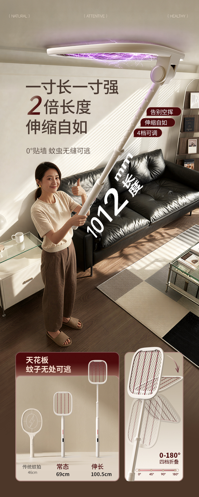 预售7天发货,急单勿拍【去蚊好物丨大宇加长折叠紫光电蚊拍】采用铝制电网,瞬间释放3500V电压,灭蚊快准恨不落空,5颗395-405nm的波段灯珠,可覆盖200-300平方范围,335-395全波段诱