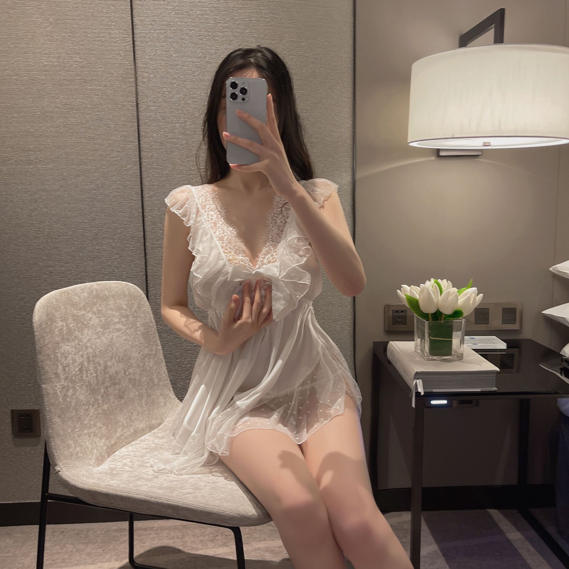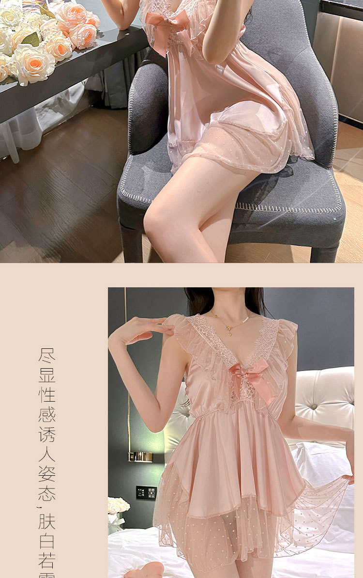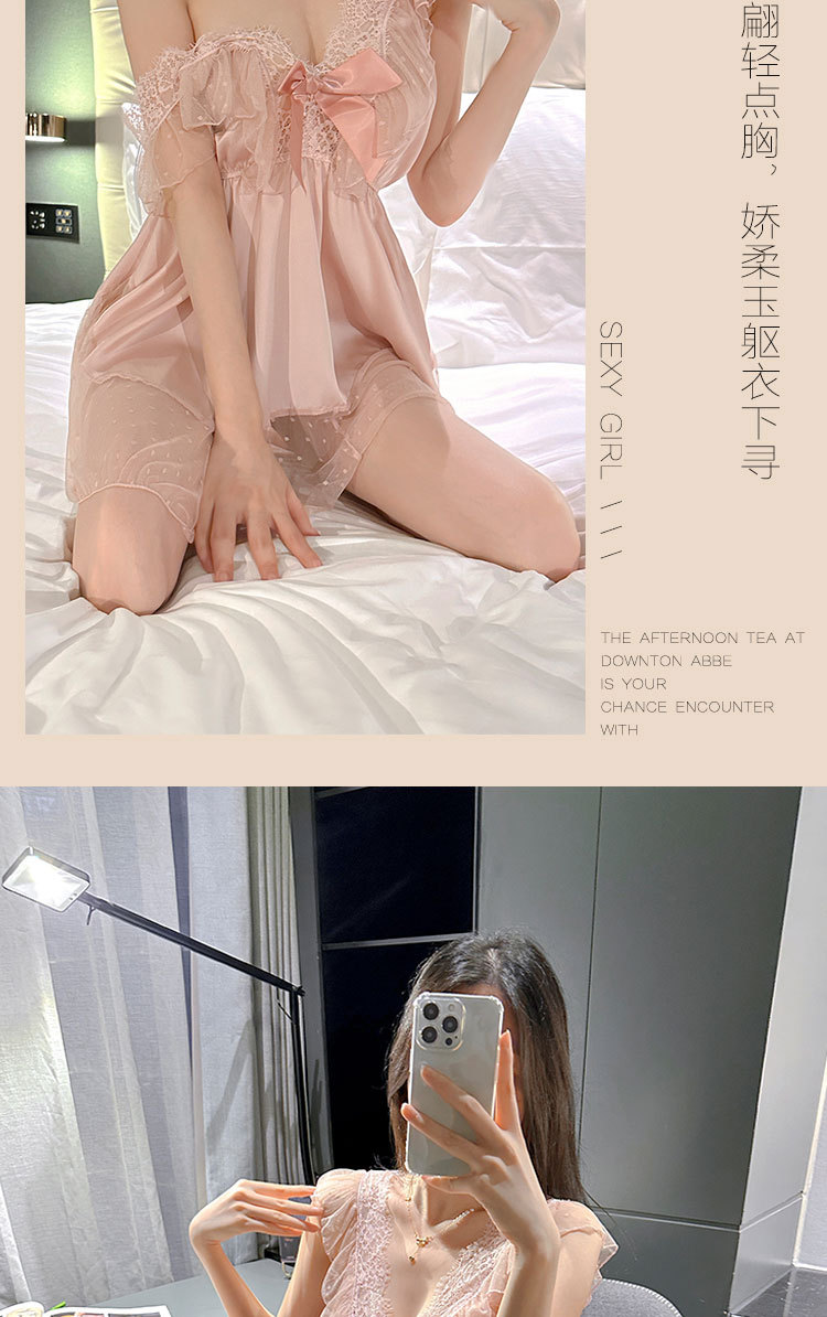 【情趣睡衣】感网纱蕾丝纯欲风家居服 法式内衣女吊带睡裙 情人节