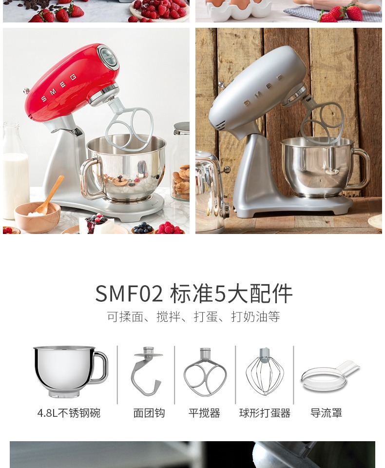 SMEG/斯麦格 SMF02 厨师机 家用台式多功能发酵揉面(不支持七天无理由退换)[福利品]