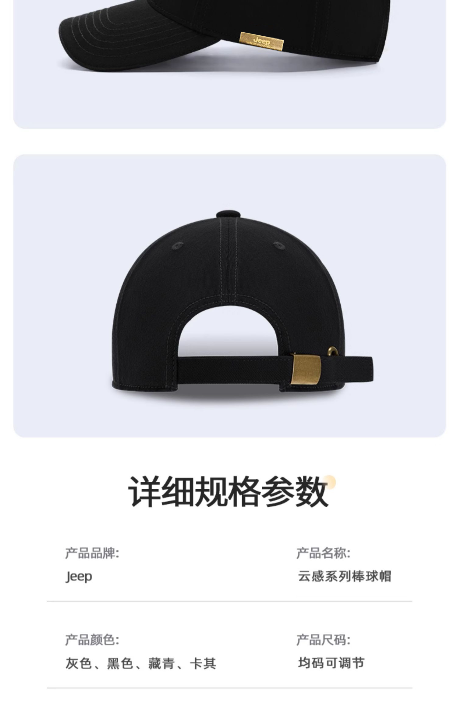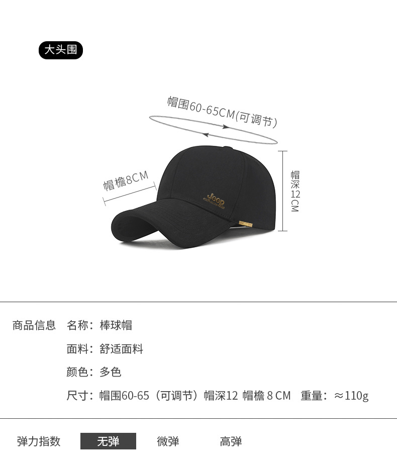 JEEP户外休闲四季百搭男女遮阳帽运动大头围鸭舌帽运动透气亲肤棒球帽JS310