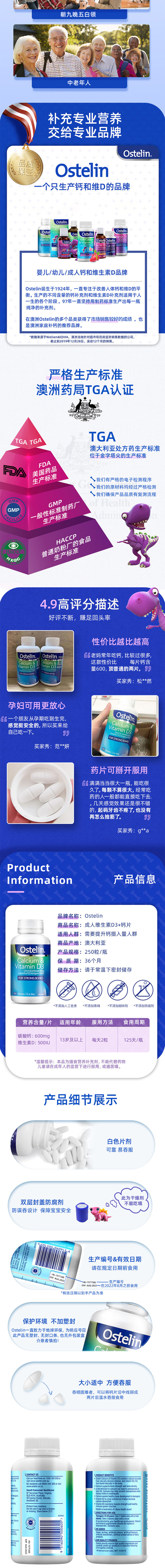奥斯特林Ostelin孕妇老人D3补钙250粒