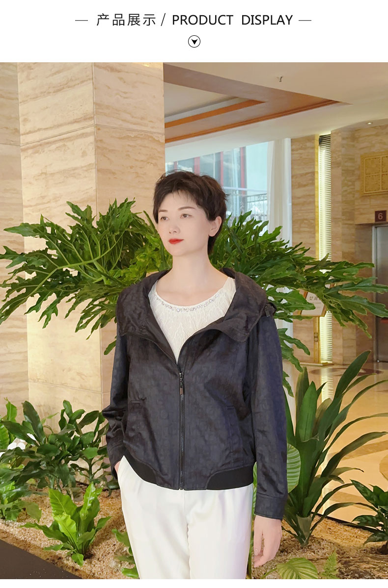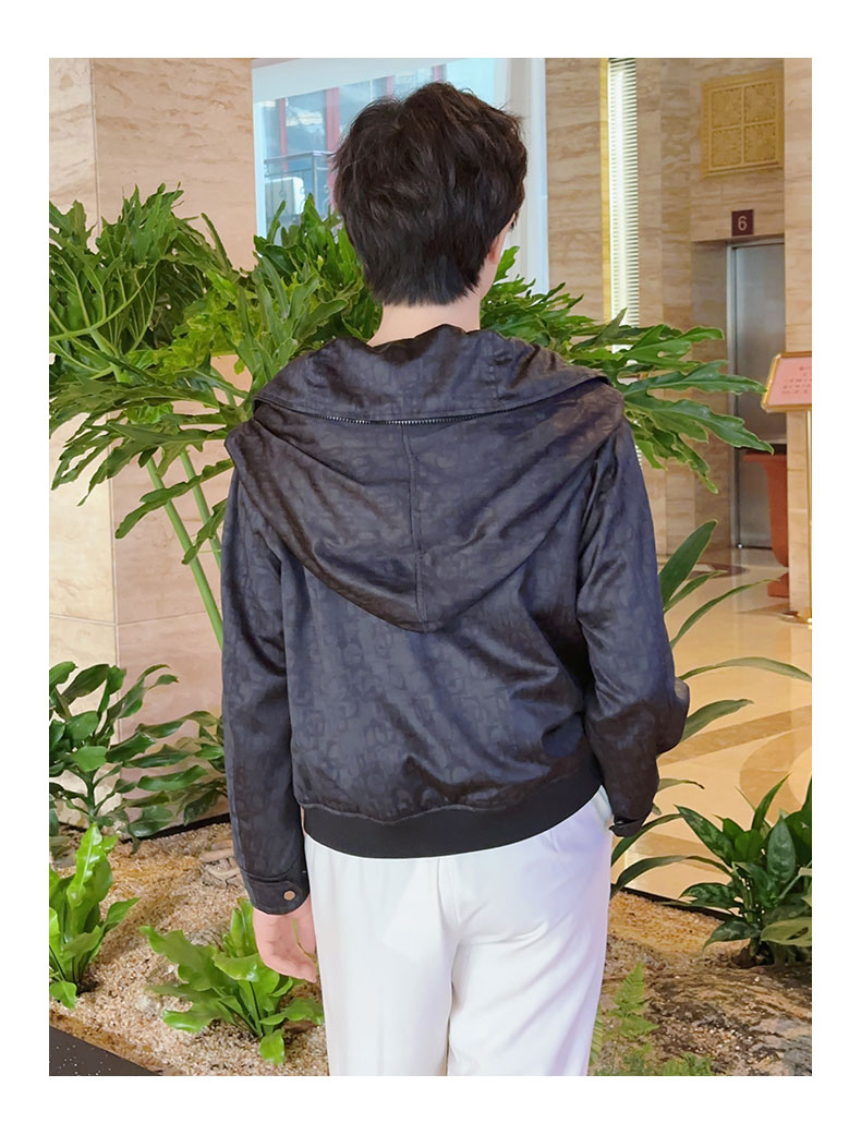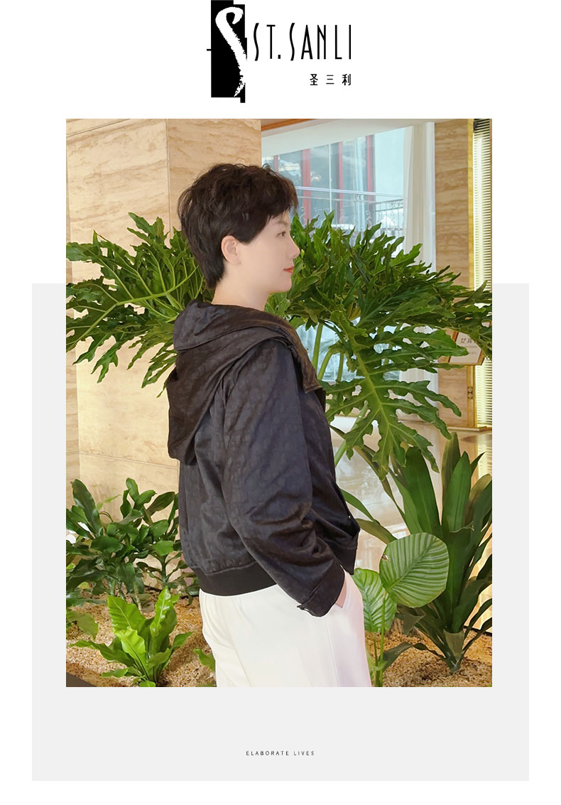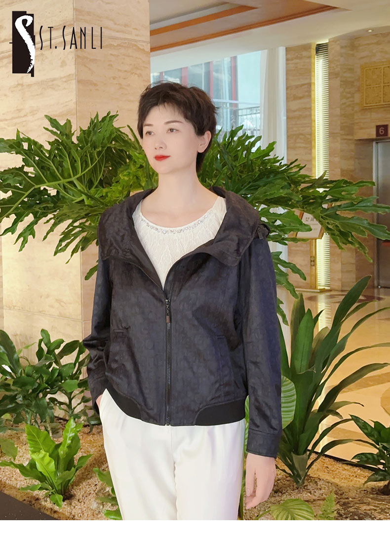 圣三利女装 轻松休闲暗纹字母连帽外套SL2032141
